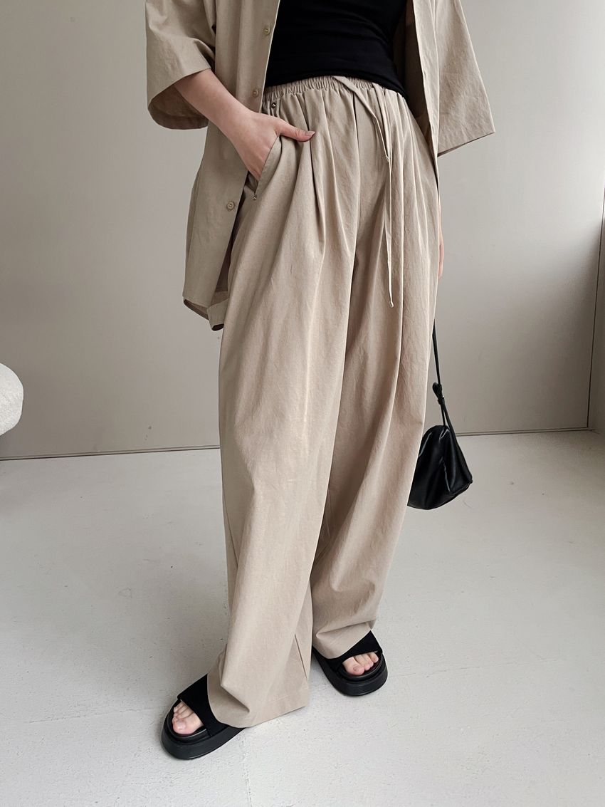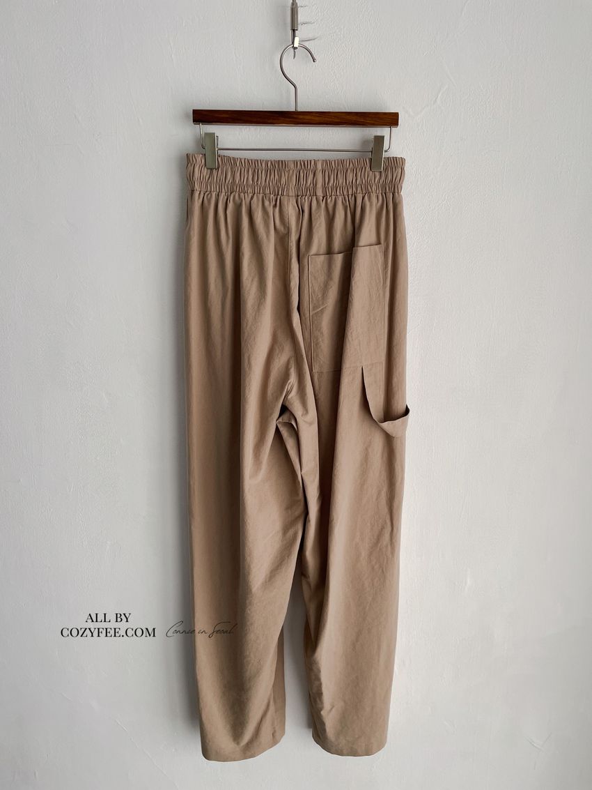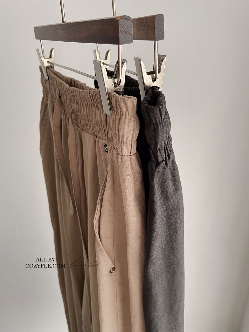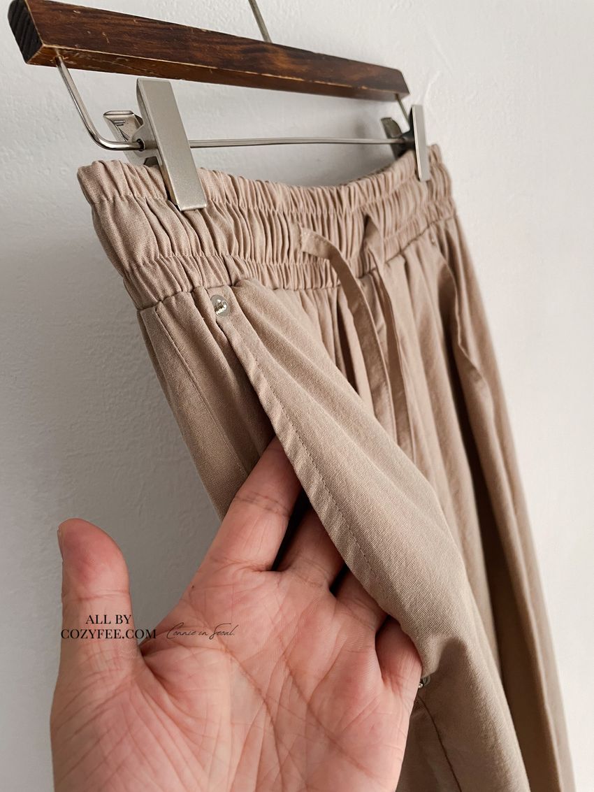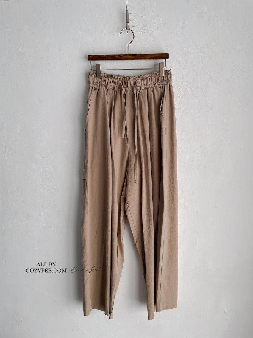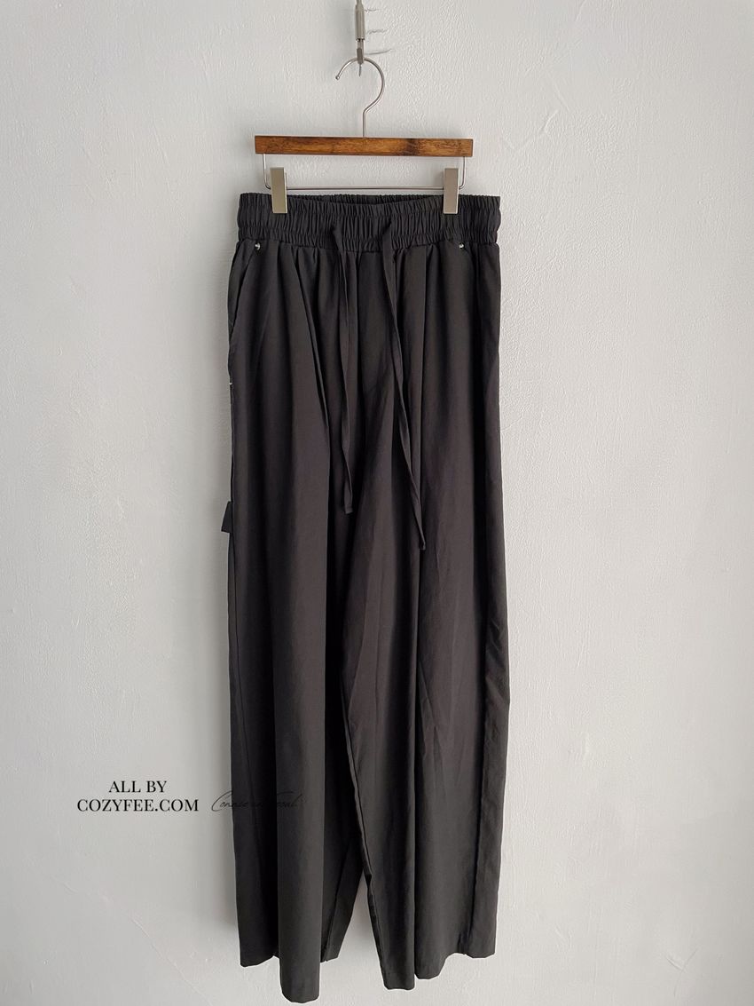 > 釘釦鬆緊腰落地寬褲(特)