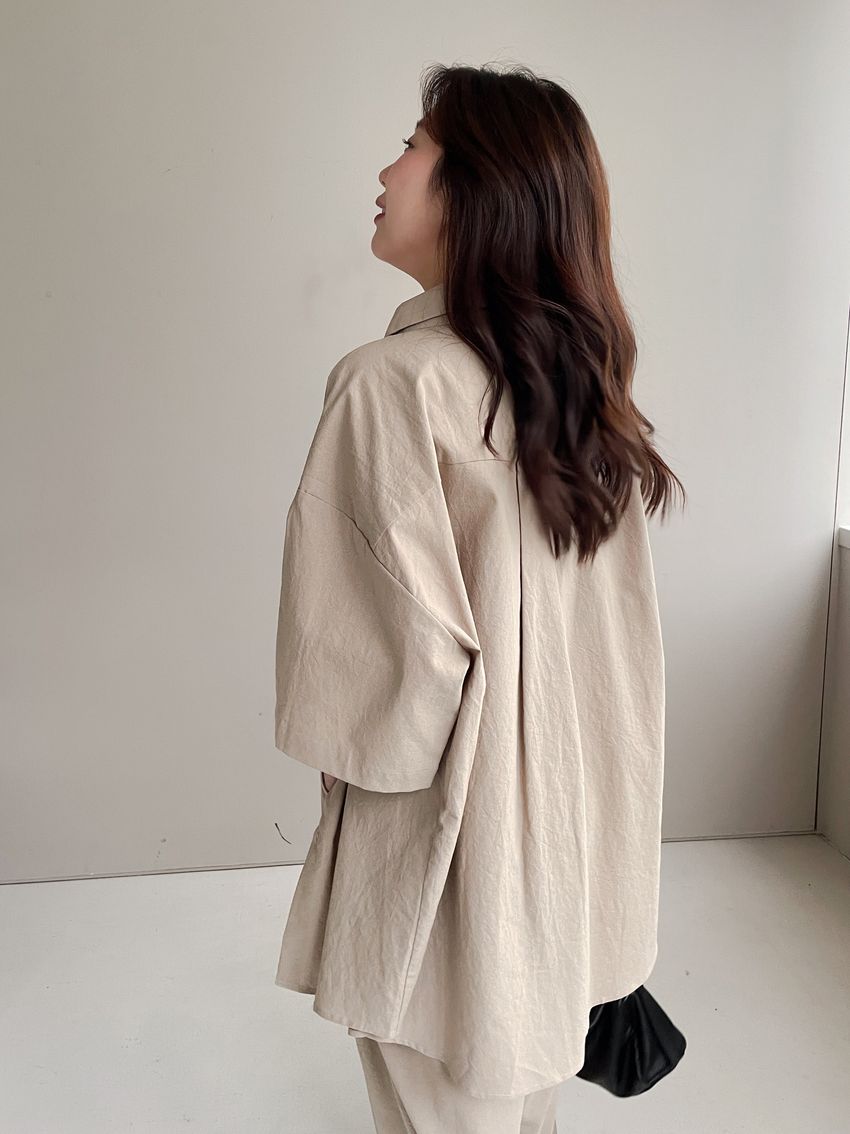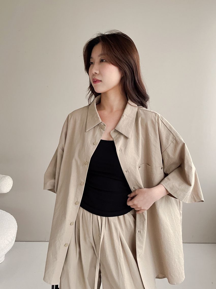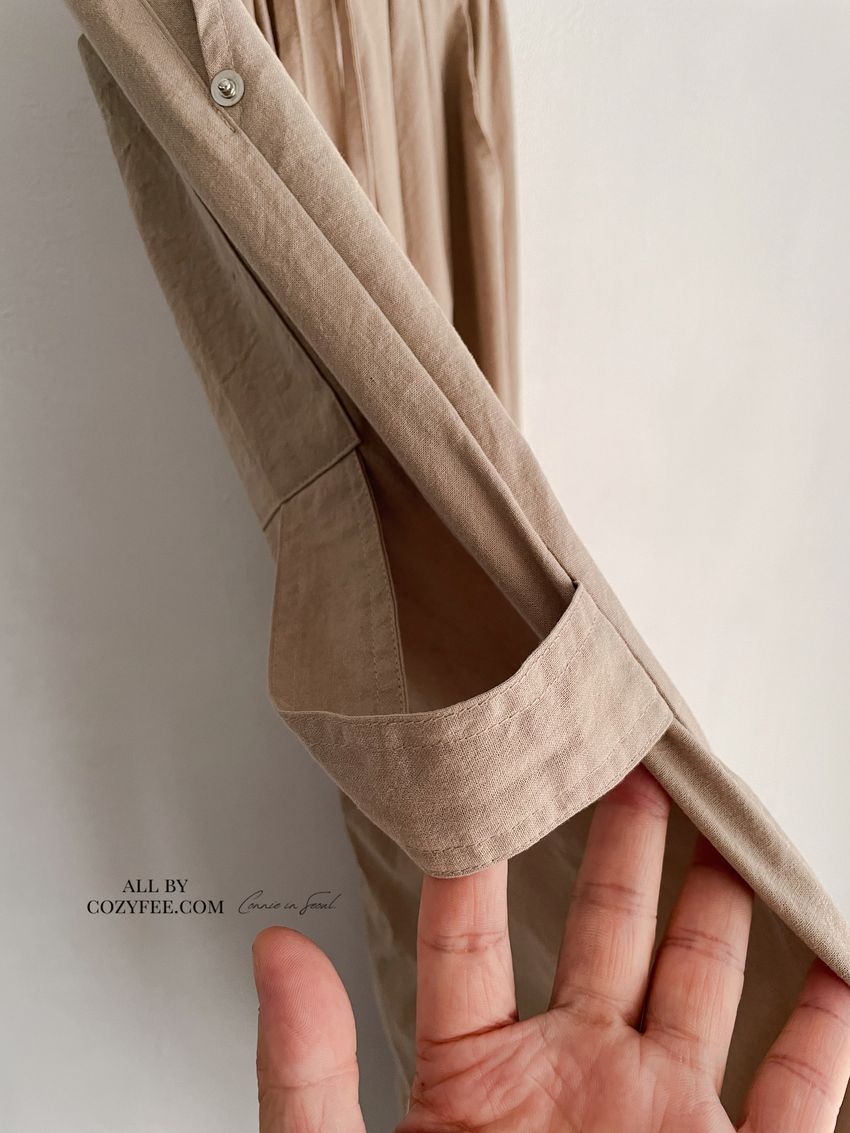 釘釦鬆緊腰落地寬褲(特)