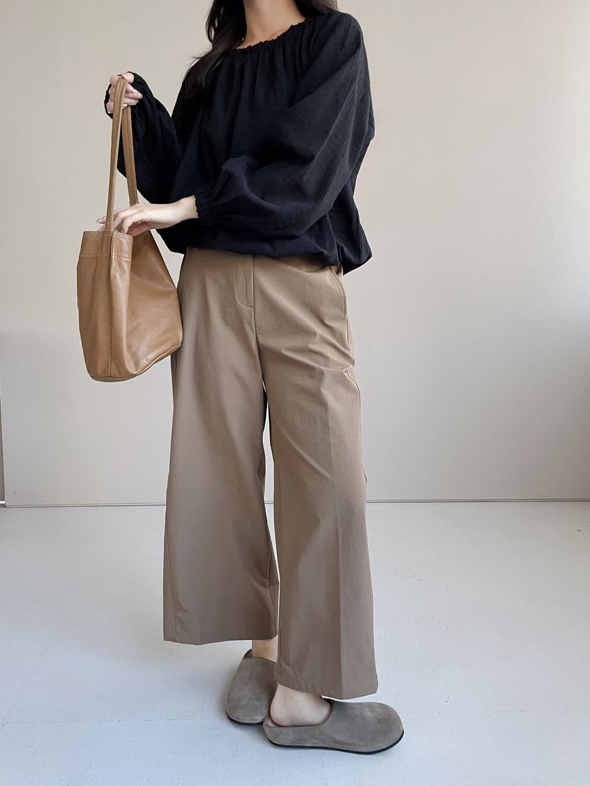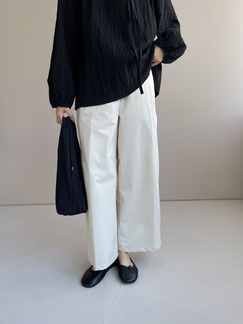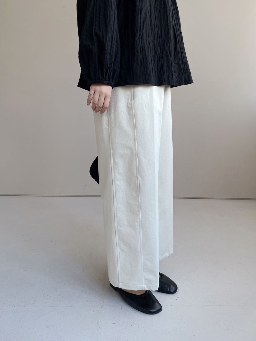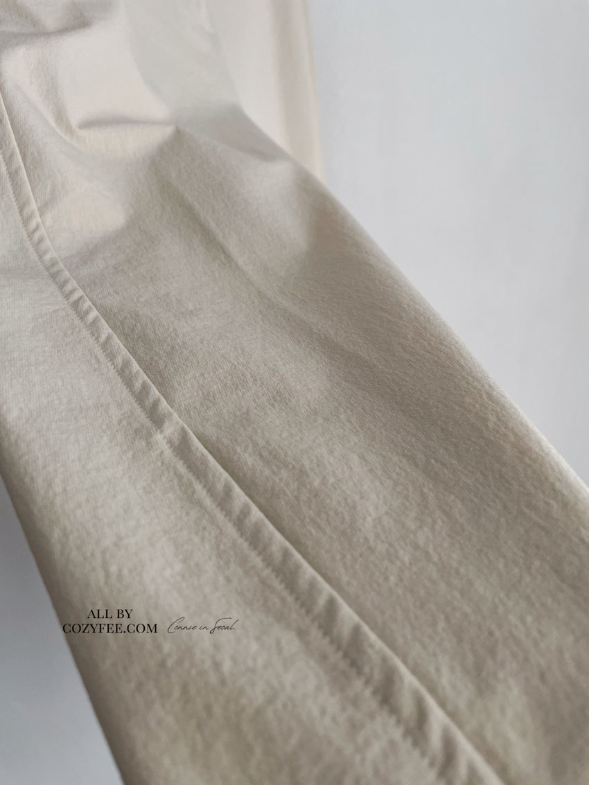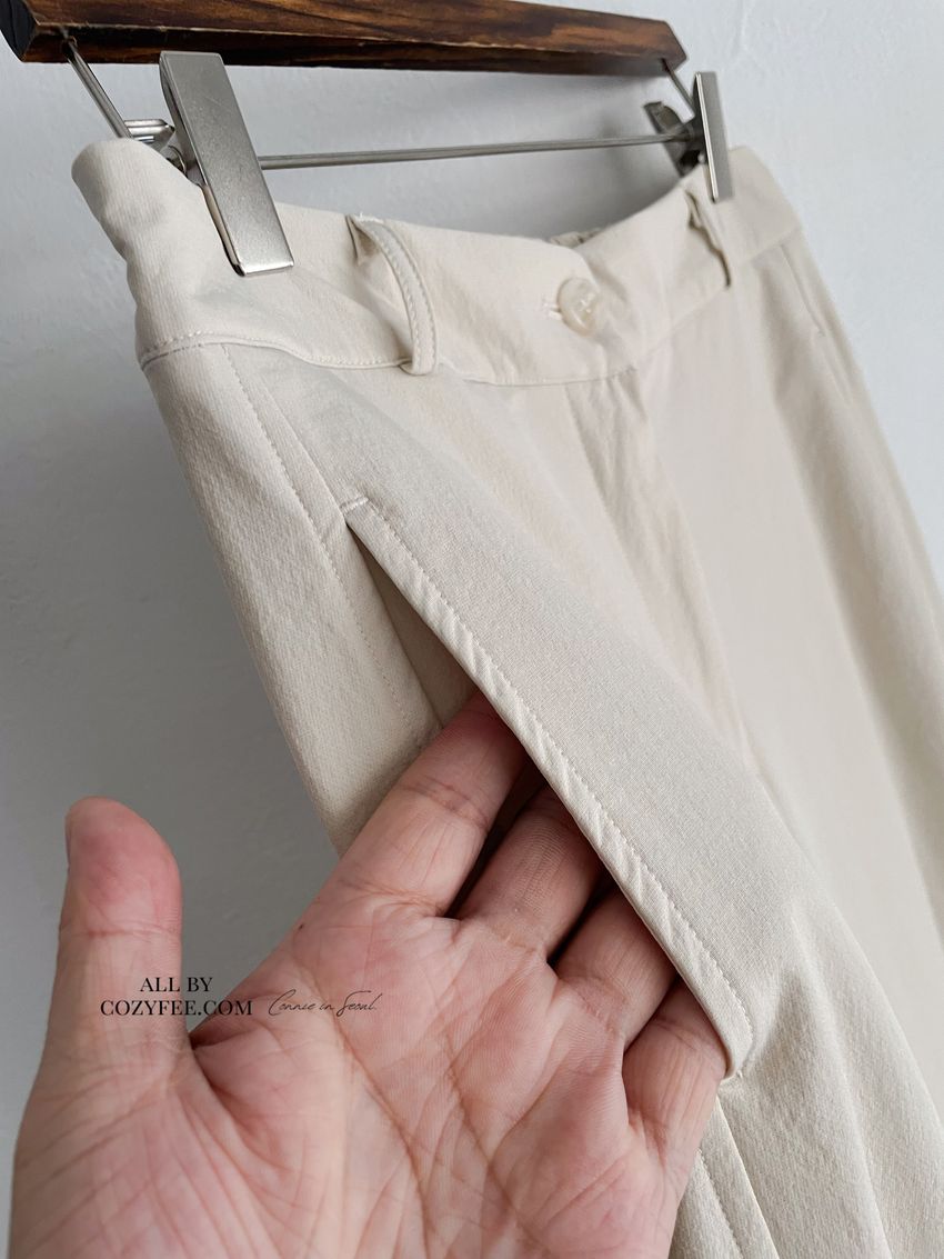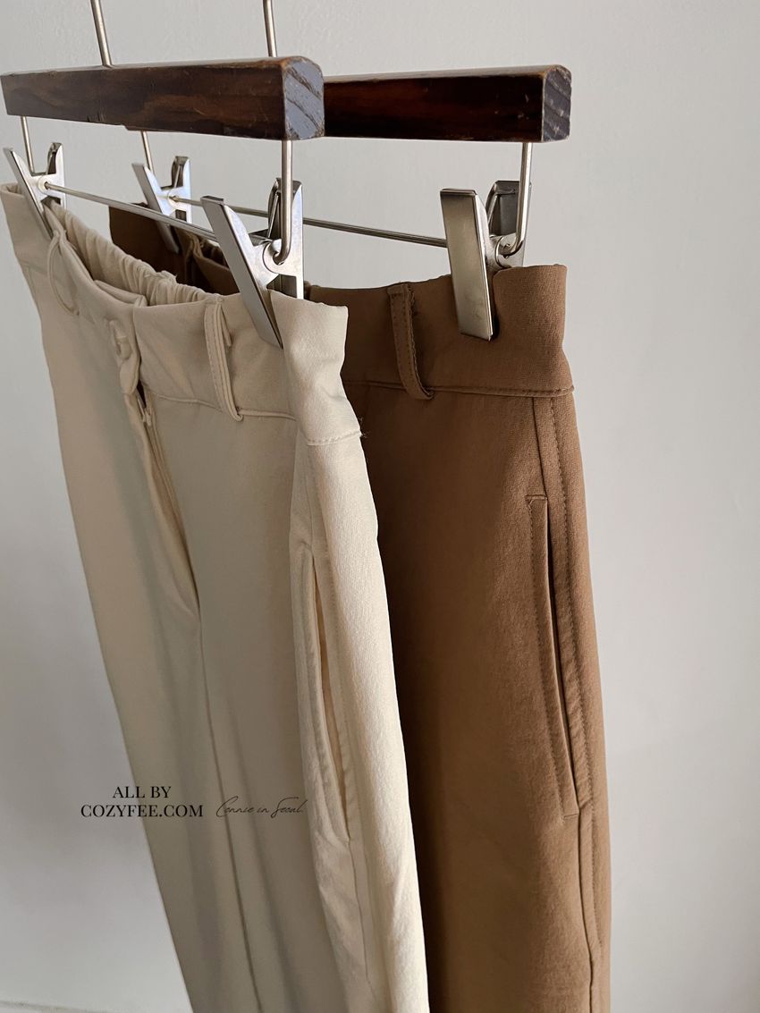 90%nylon 10%span有挺度的滑布材質有挺度但不會硬邦邦的 拉長直腿的效果很好內層為柔軟的觸感 穿起來真的很舒服布料彈性滿分5分這件4分後腰鬆緊咖啡色 / 米白色單一尺寸 建議S號~小L號身型適合model / Yen - 159cm / 44kg 腰24 臀34