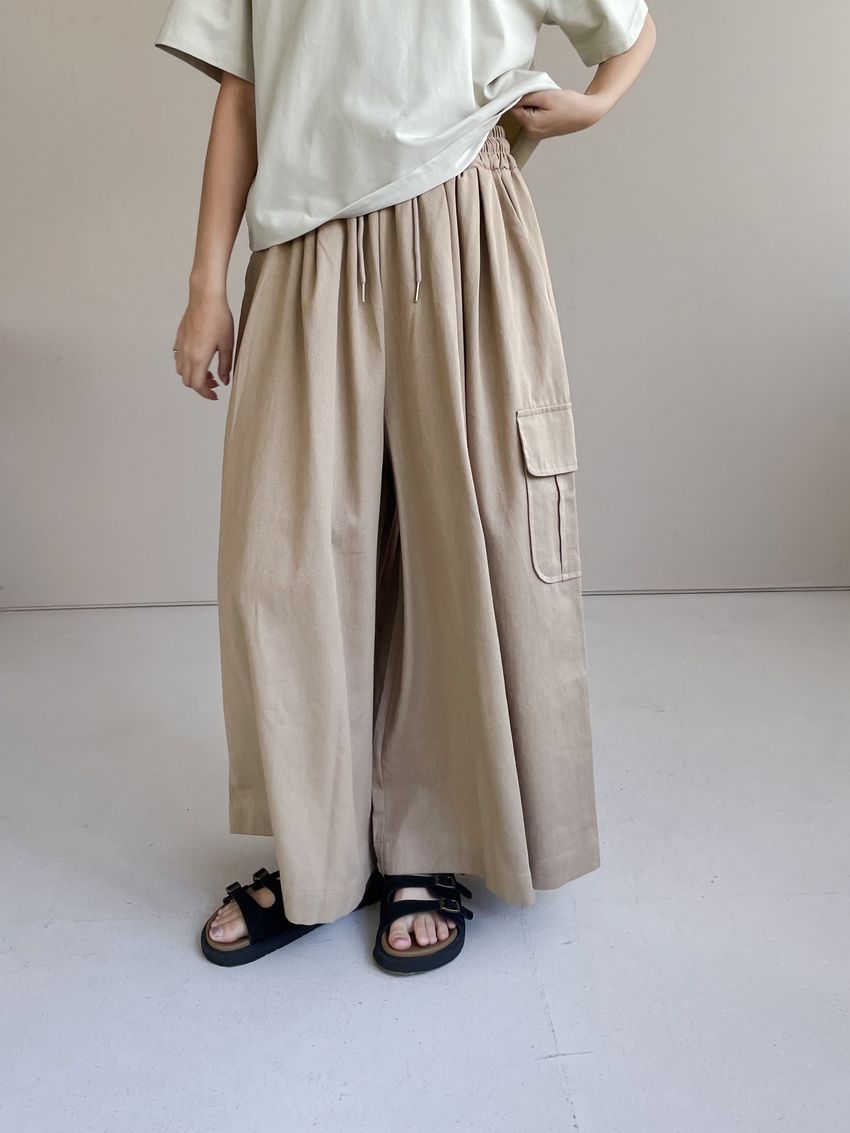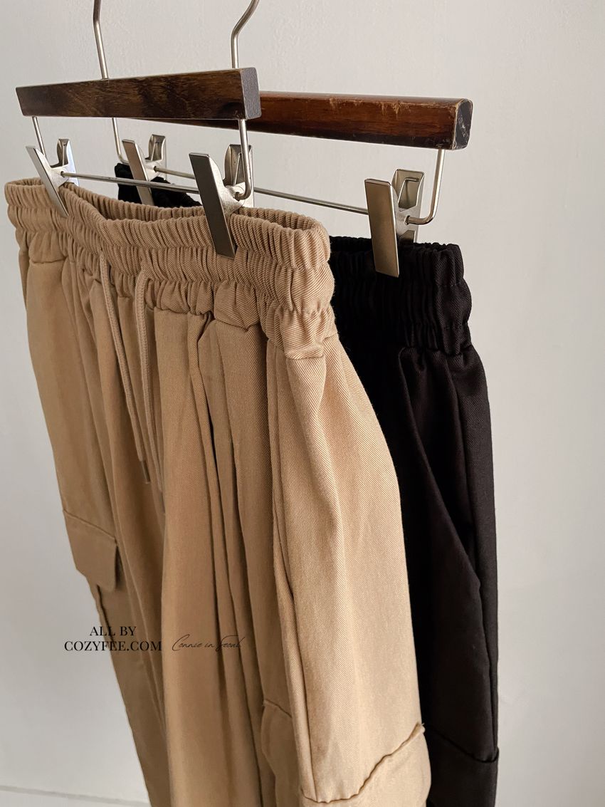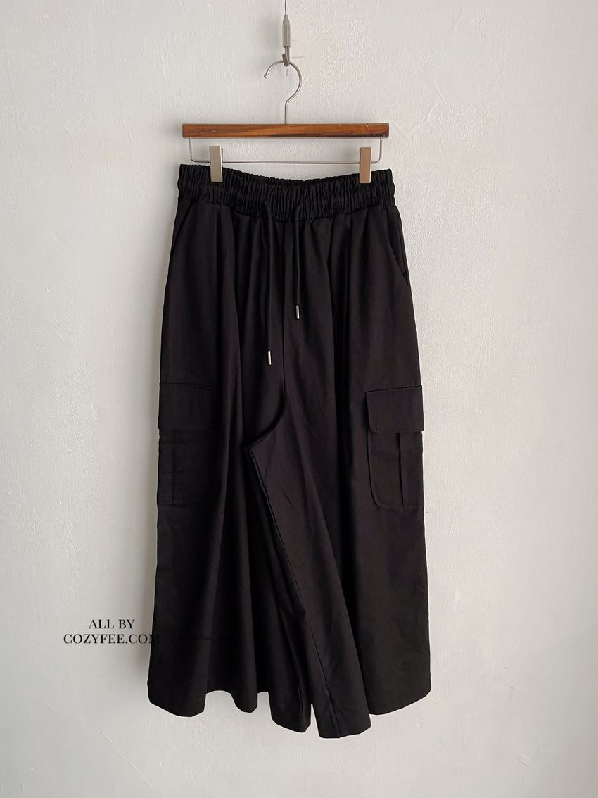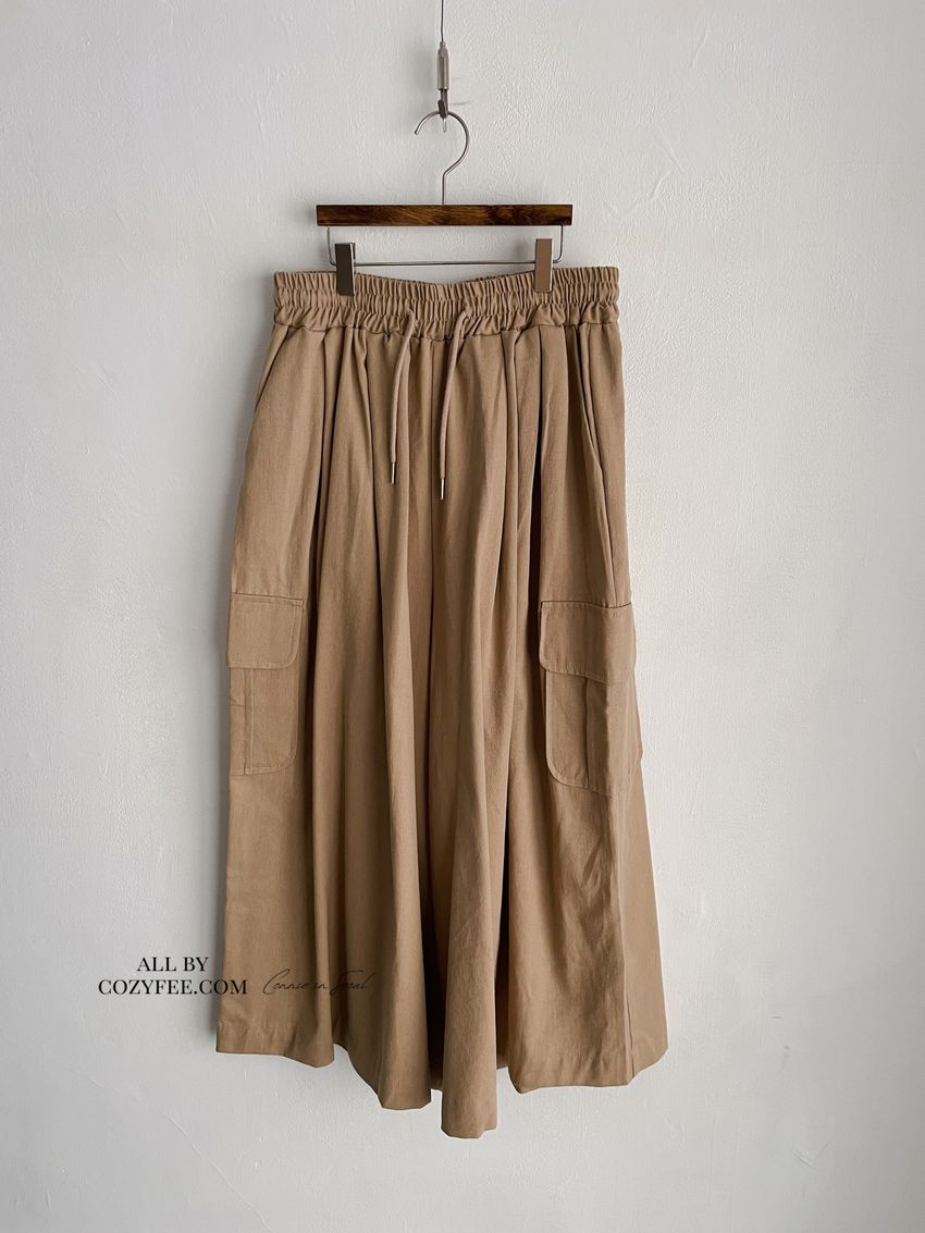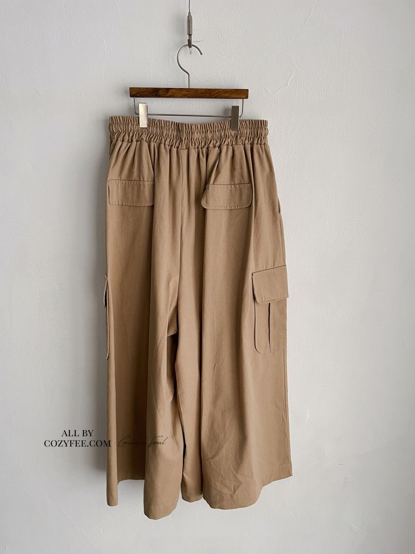 > 翻蓋口袋鬆緊大寬褲(直播款)