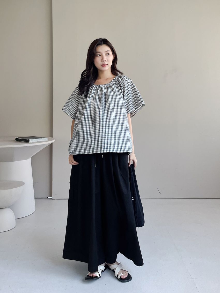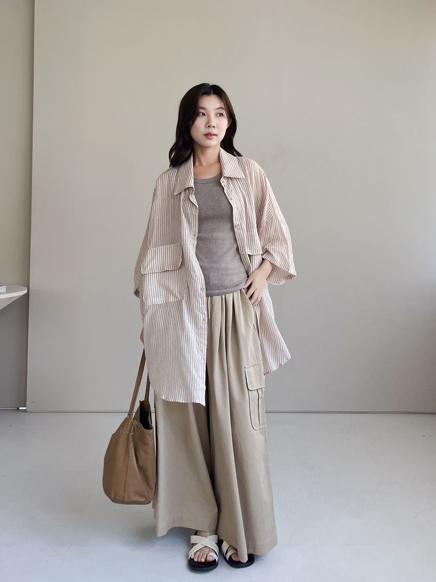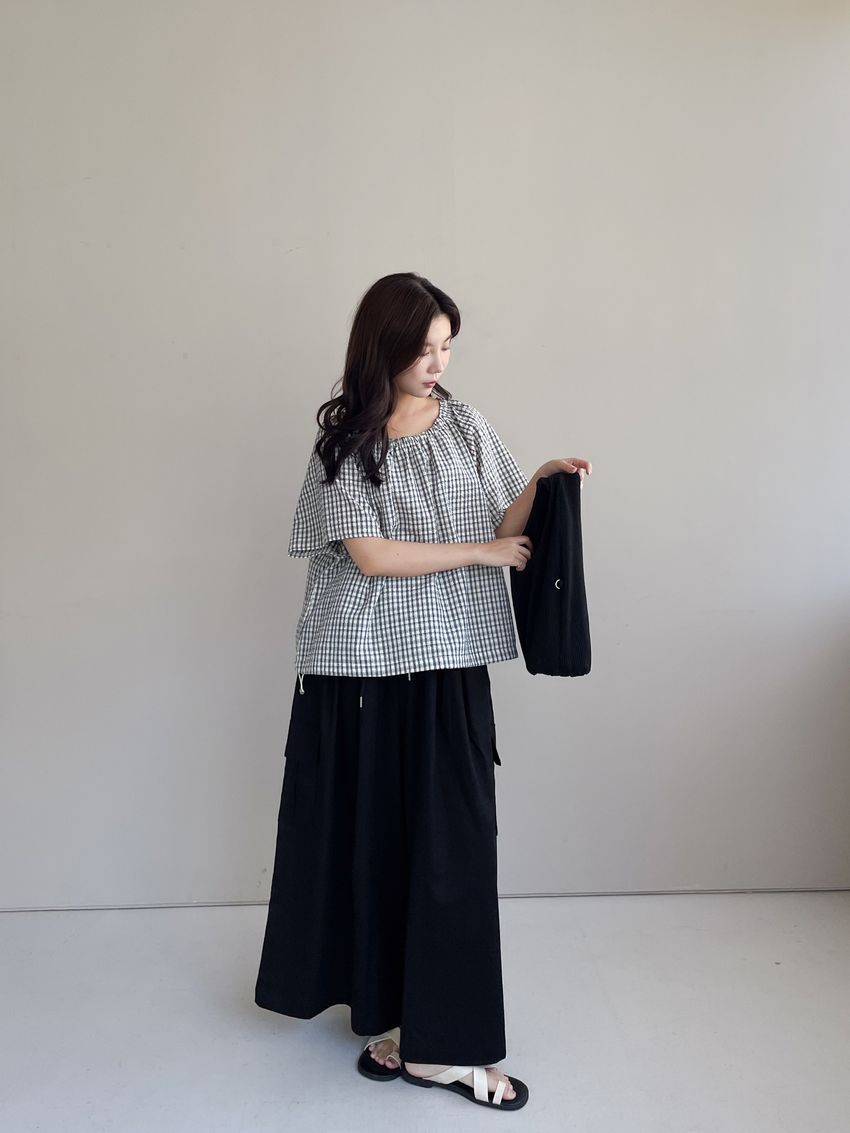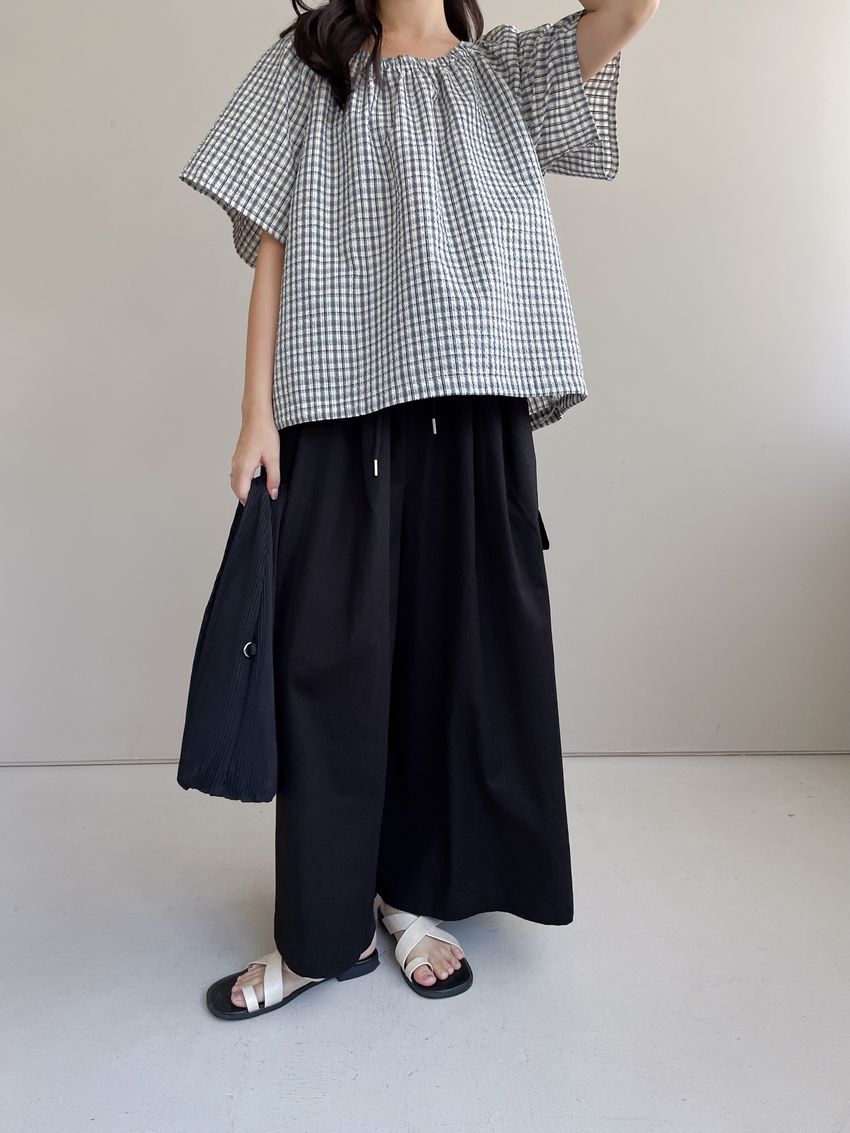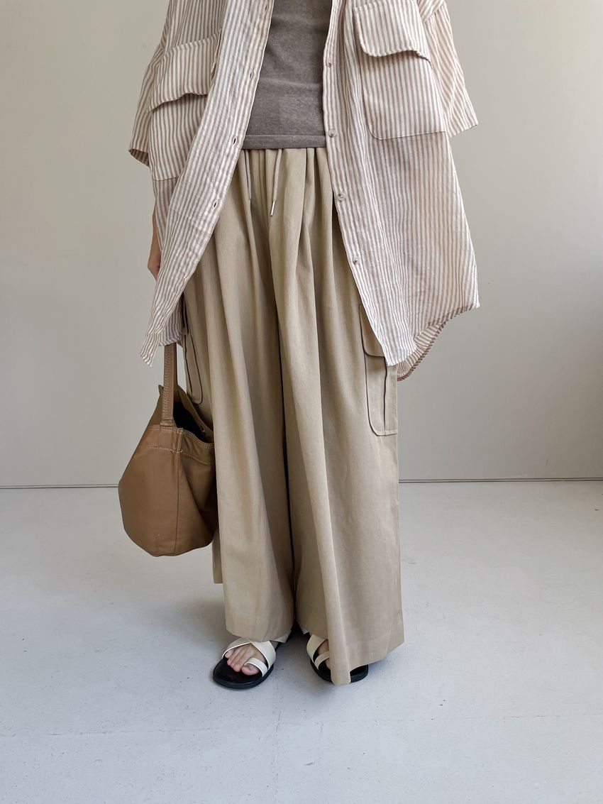 > 翻蓋口袋鬆緊大寬褲(直播款)