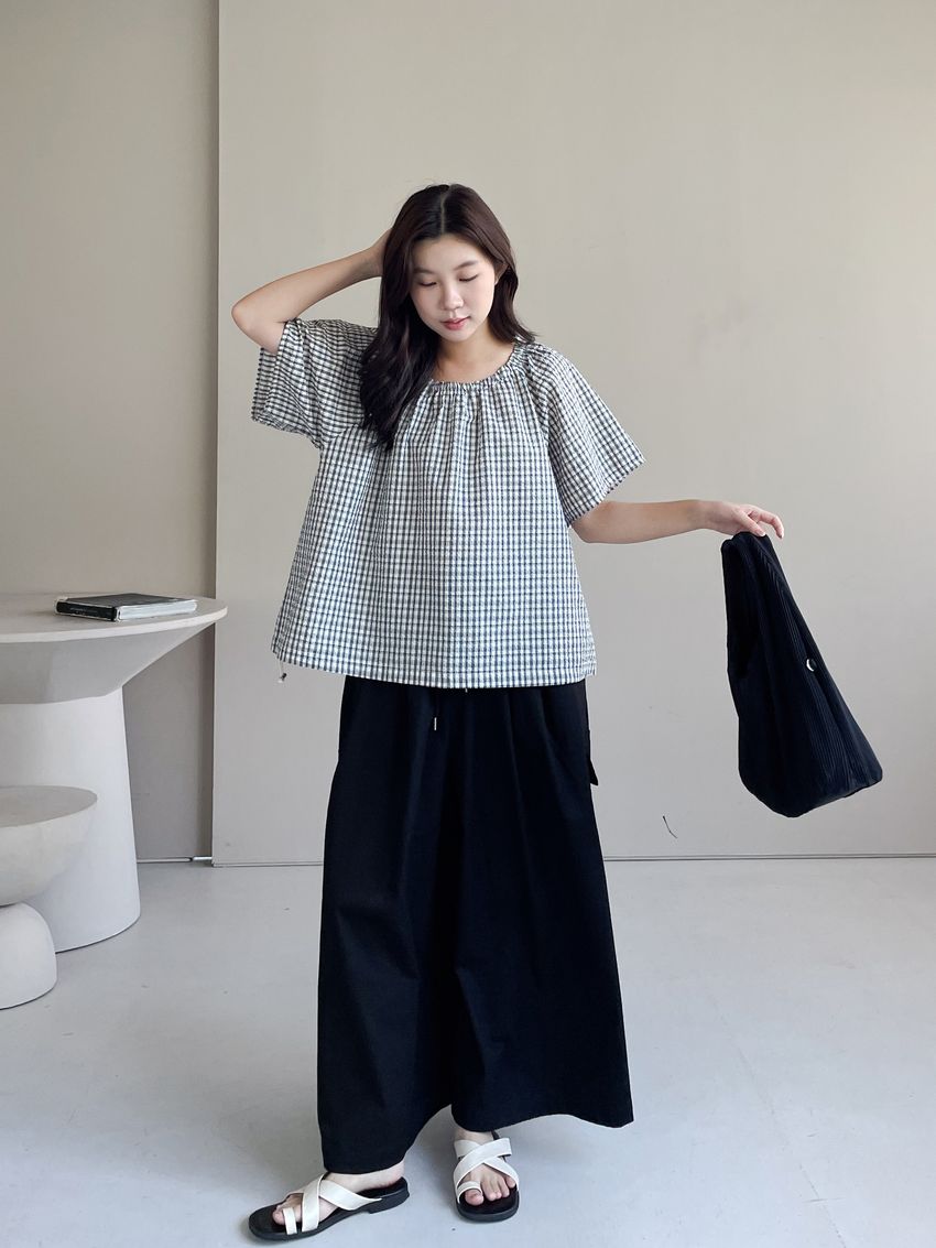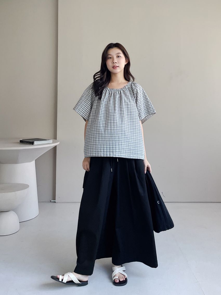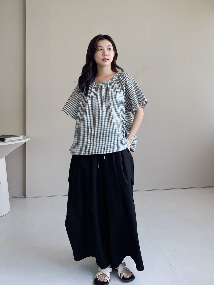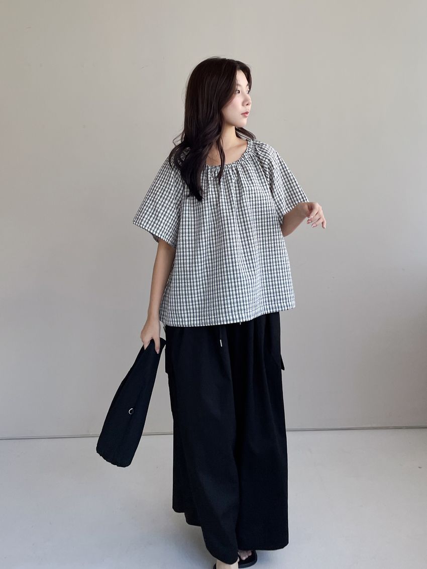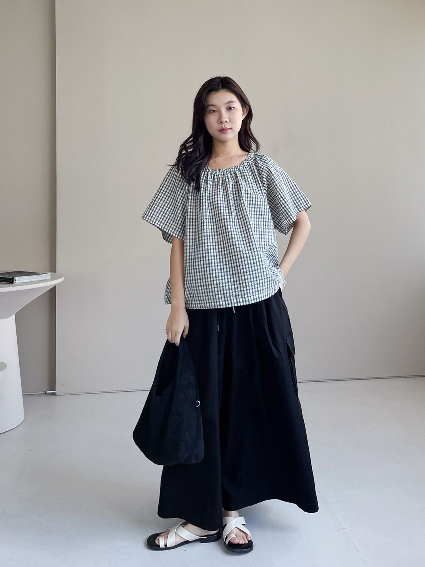 > 翻蓋口袋鬆緊大寬褲(直播款)