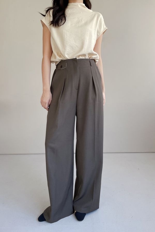 > 隱藏釦小口袋西裝寬褲(直播款)