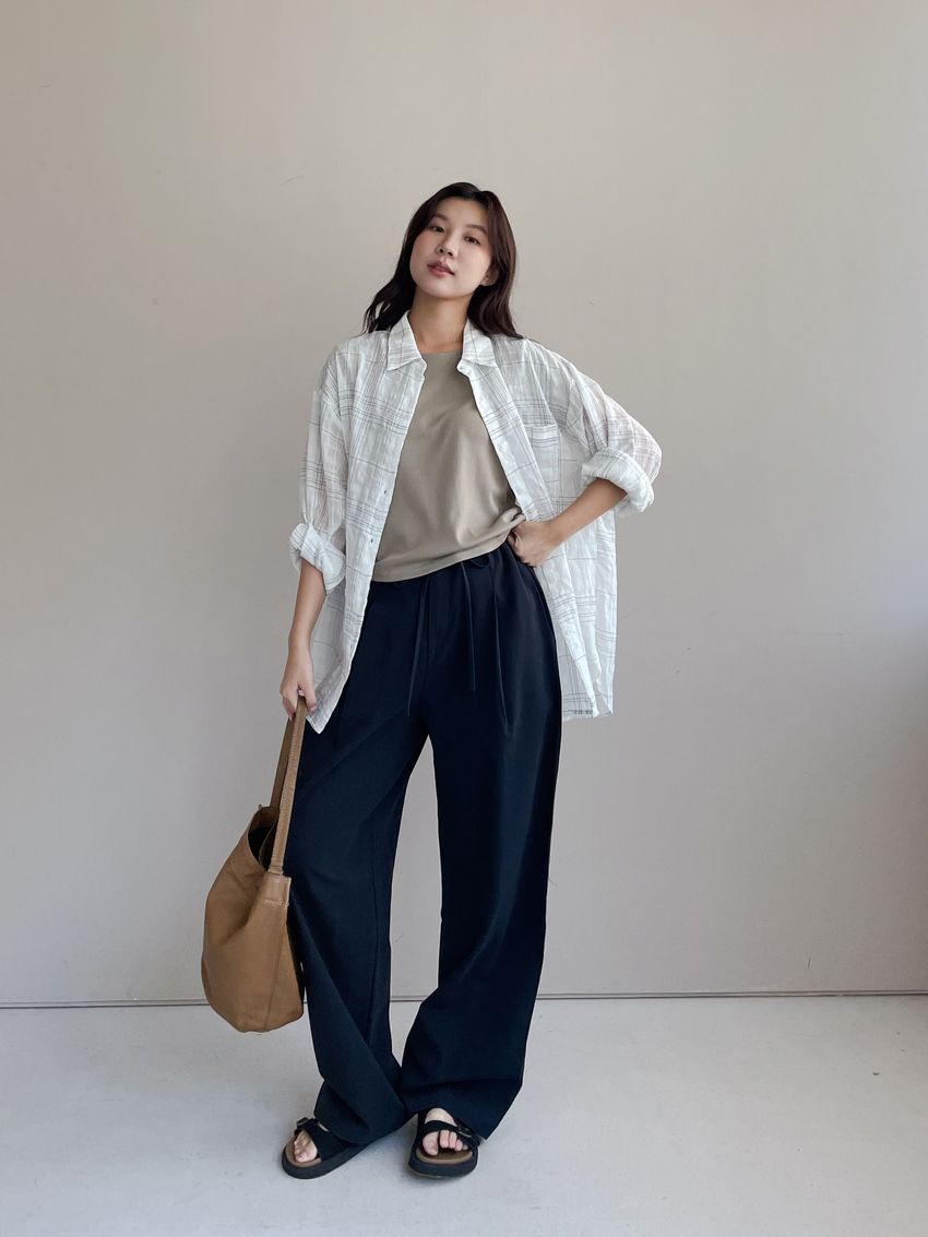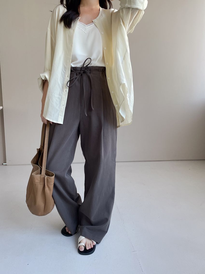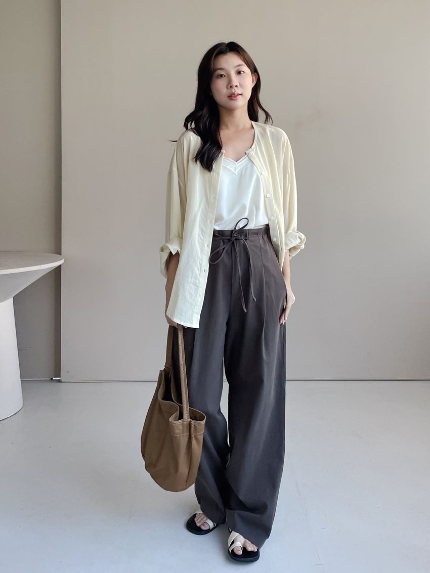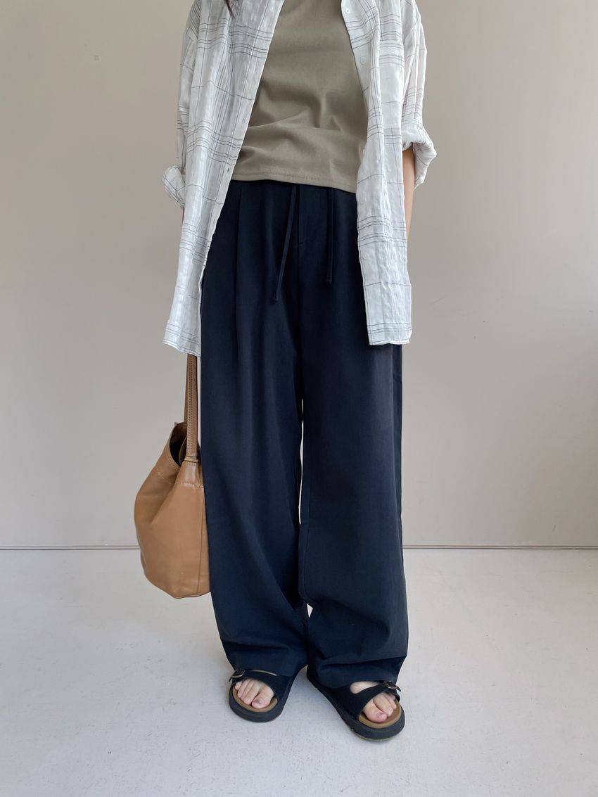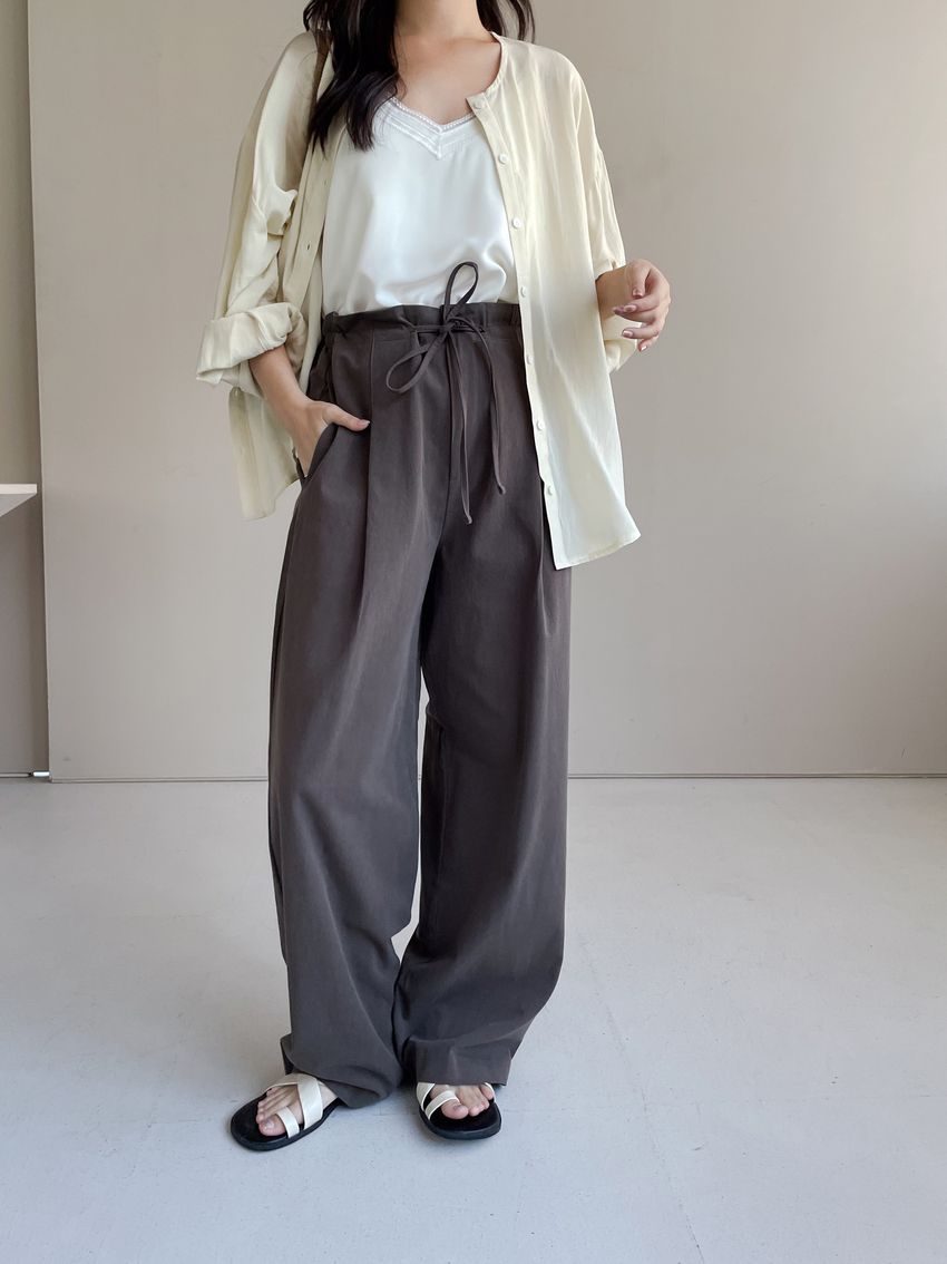 > 單摺綁帶落地寬褲(直播款)