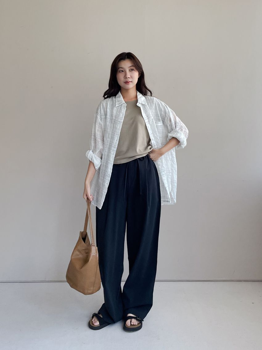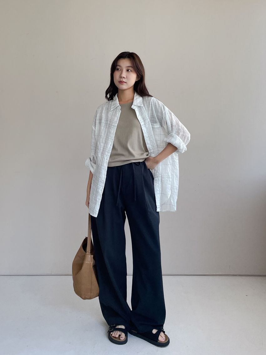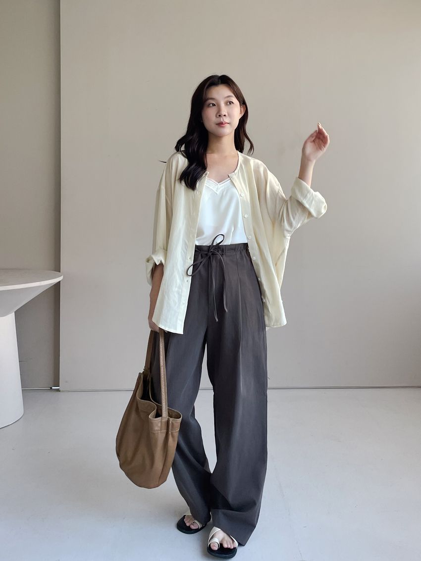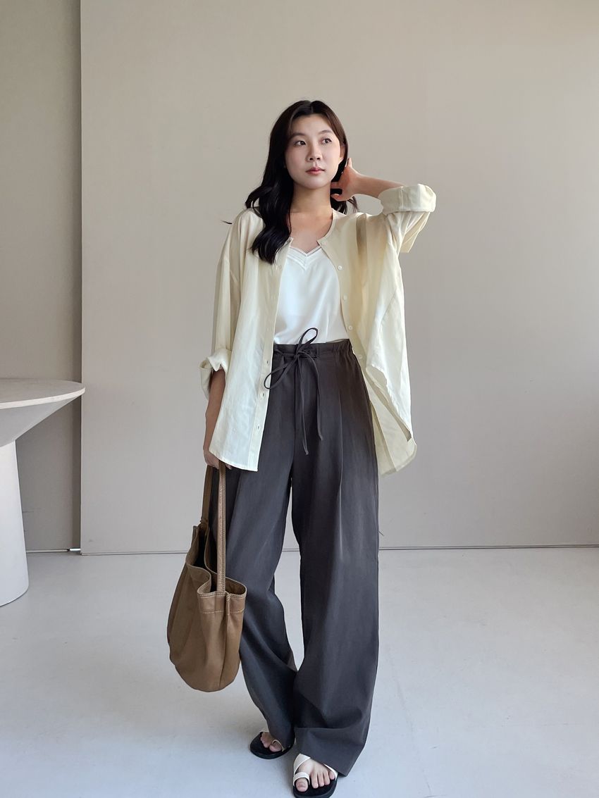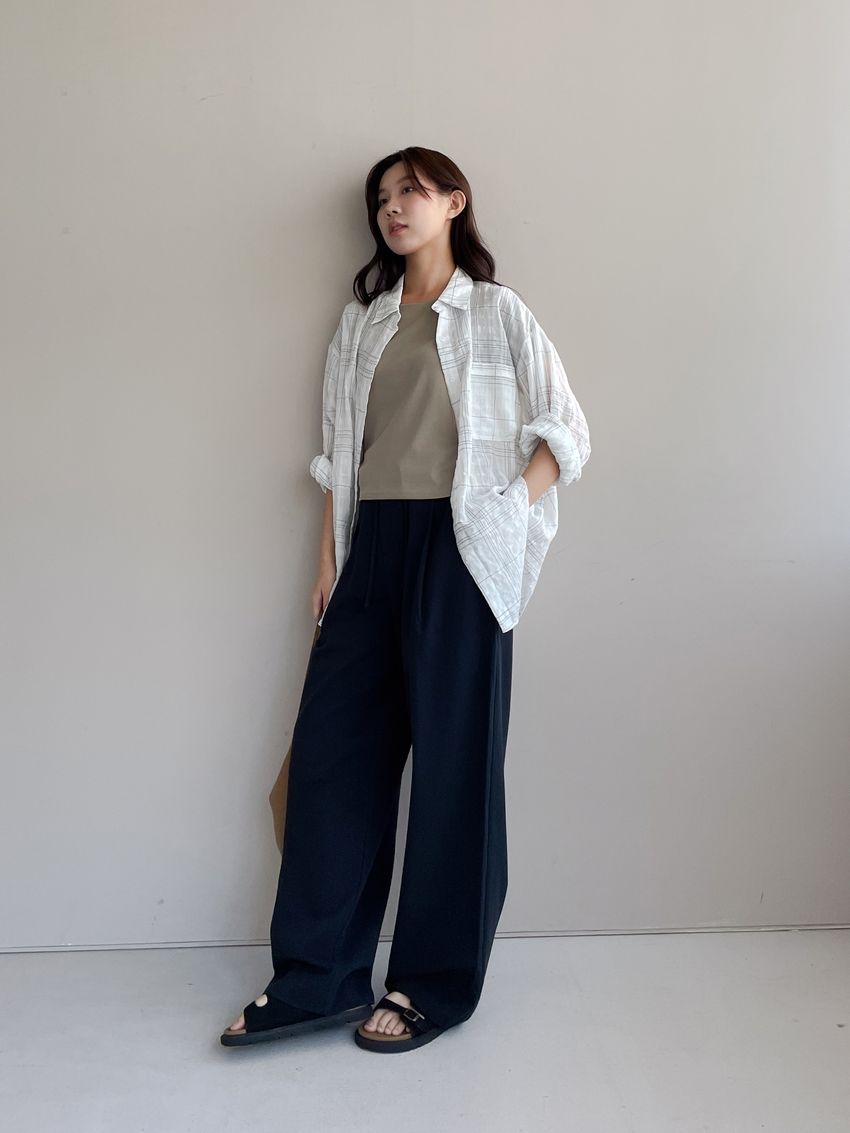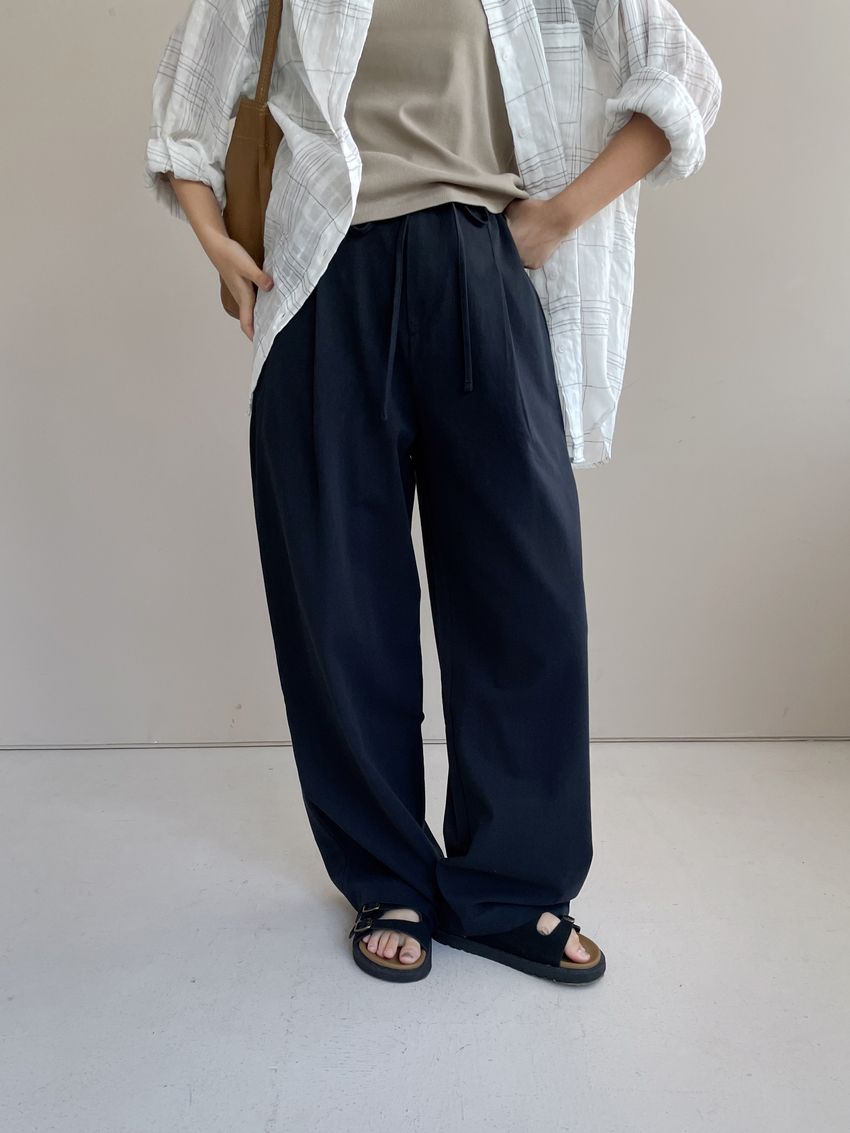 > 單摺綁帶落地寬褲(直播款)