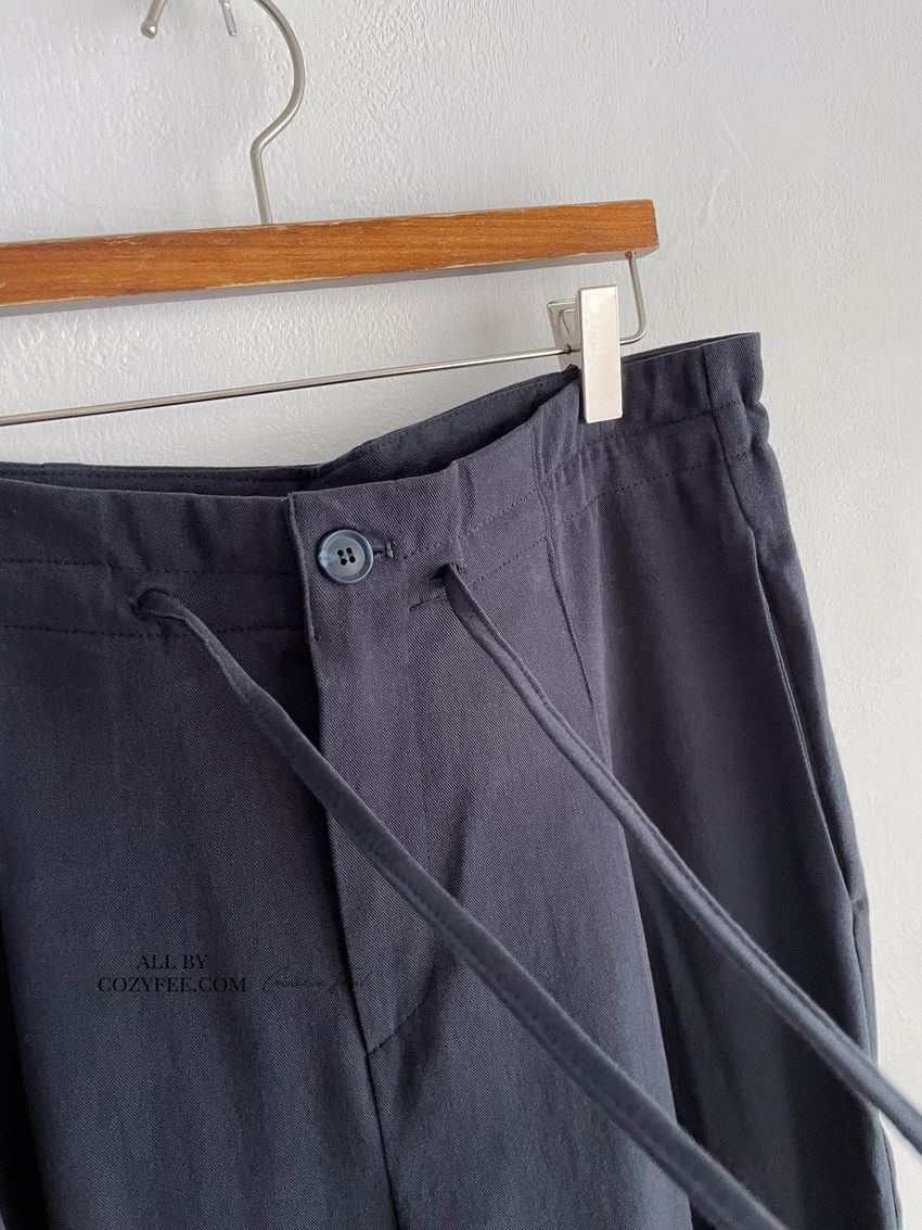 腰圍無鬆緊彈性 利用綁繩調整腰圍尺寸