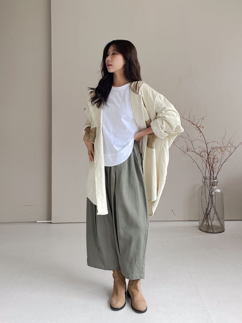 > 內收摺釘釦南瓜褲