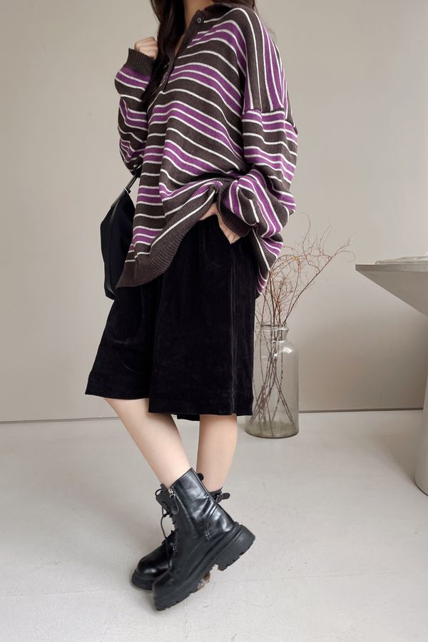 > Connie推薦款!個性黑燈芯絨六分寬褲