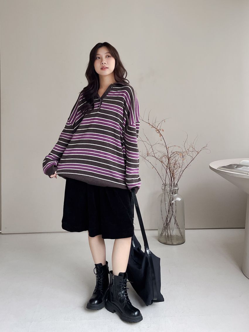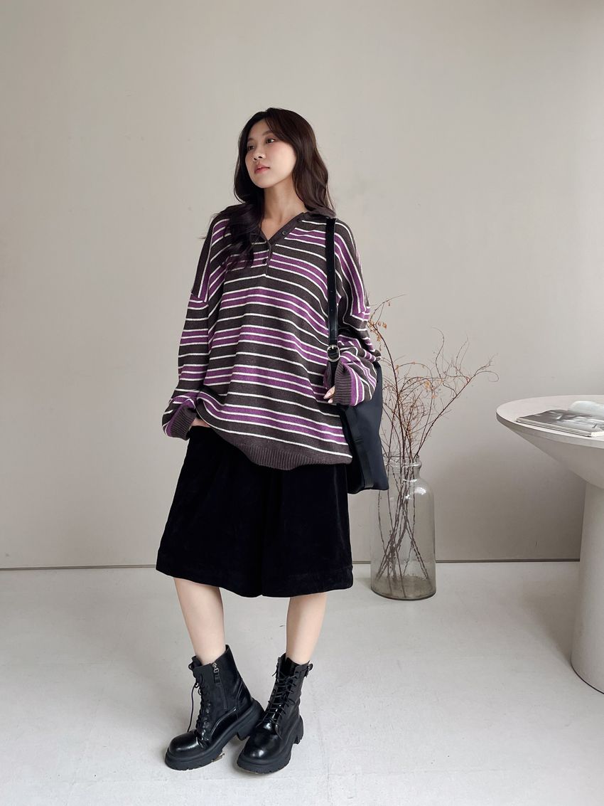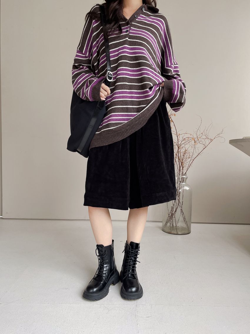 Connie推薦款!個性黑燈芯絨六分寬褲
