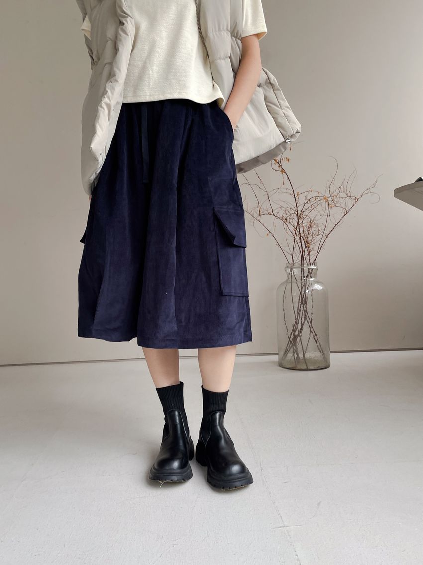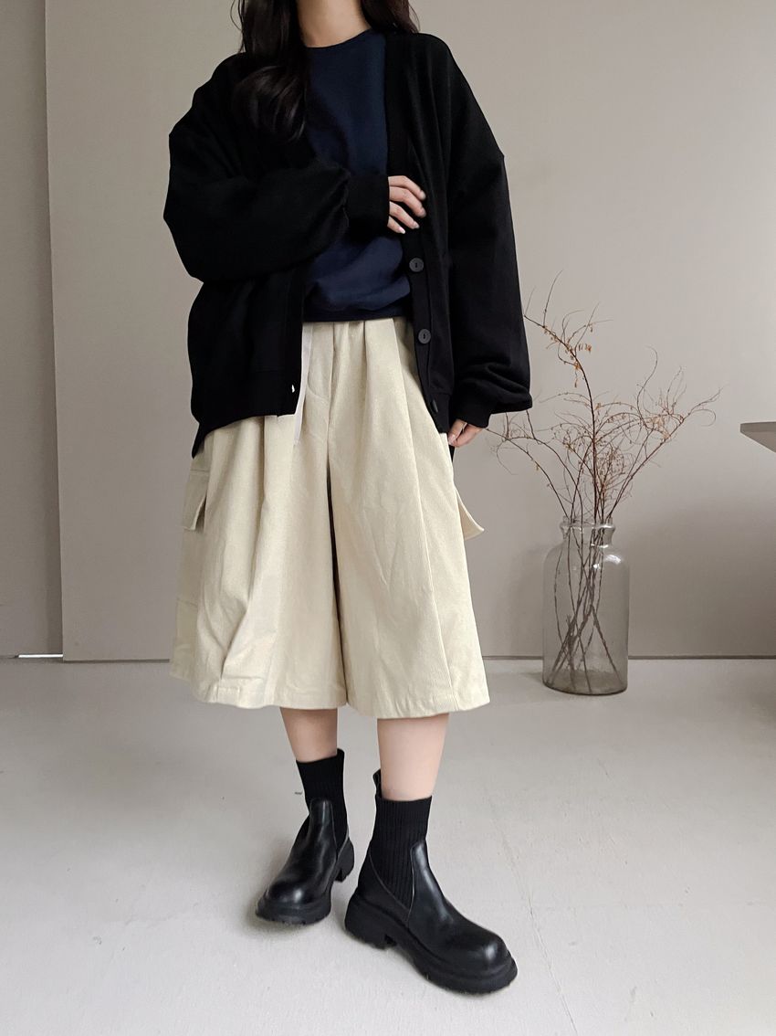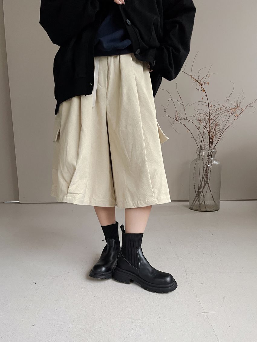 Connie推薦款!隱藏綁帶翻蓋口袋六分寬褲