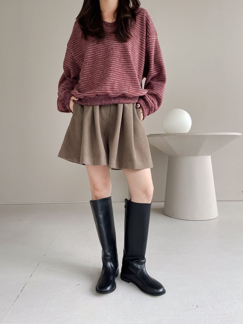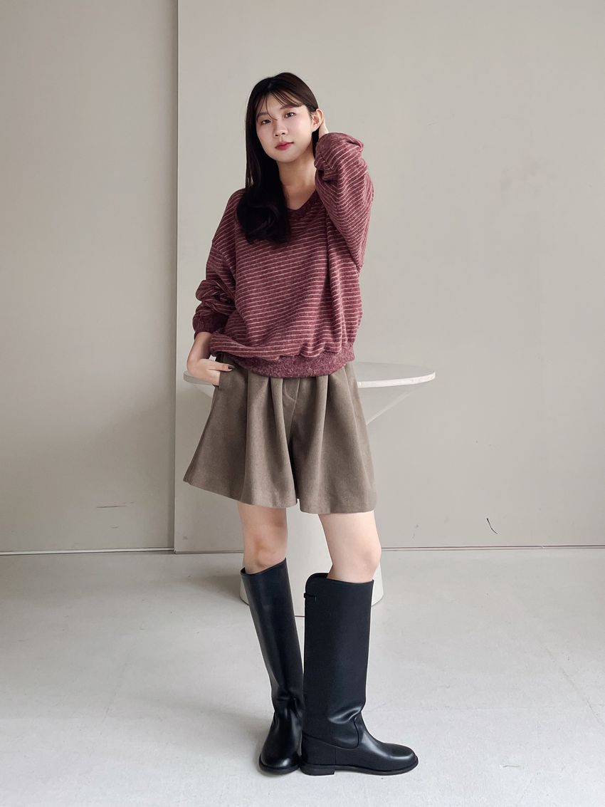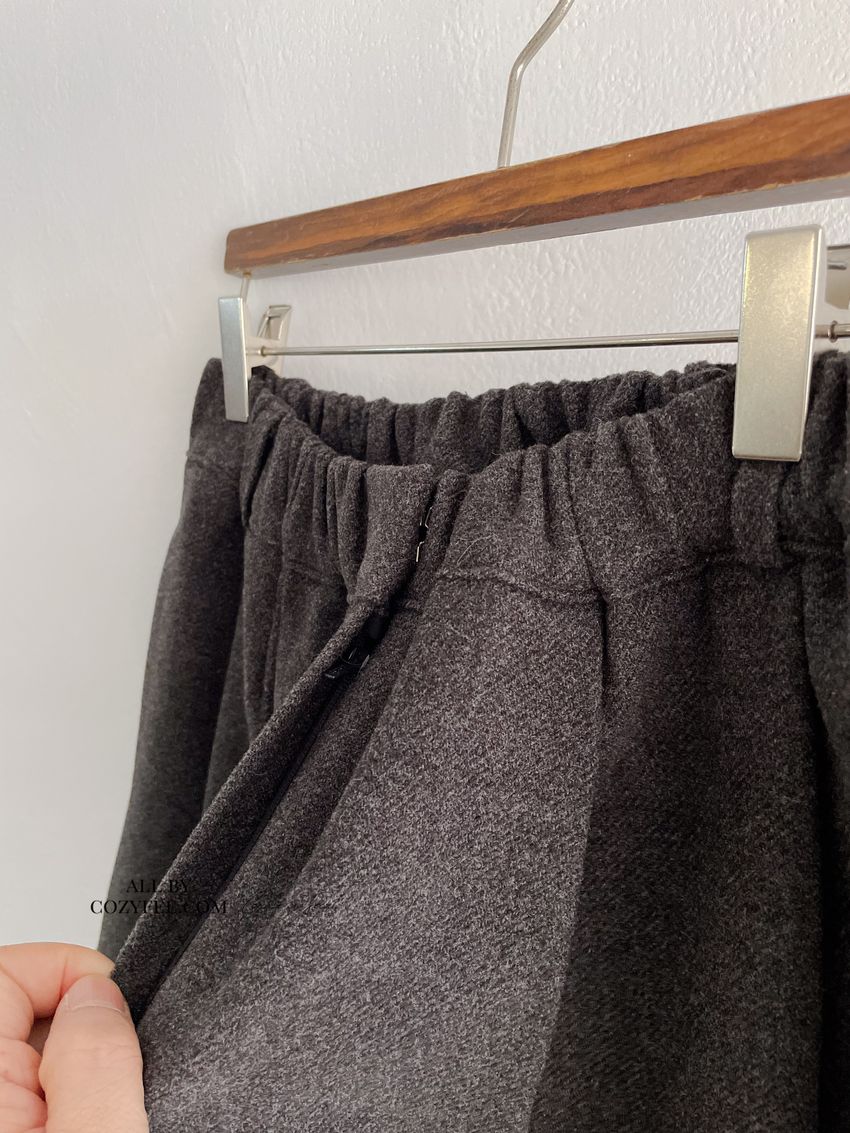 56%wool 22%poly 22%rayon腰圍整圈鬆緊彈性無內裡布料無彈性深灰色 / 可可色單一尺寸 建議S號~L號 以內 身型適合model / Yen - 159cm / 44kg 腰24 臀34