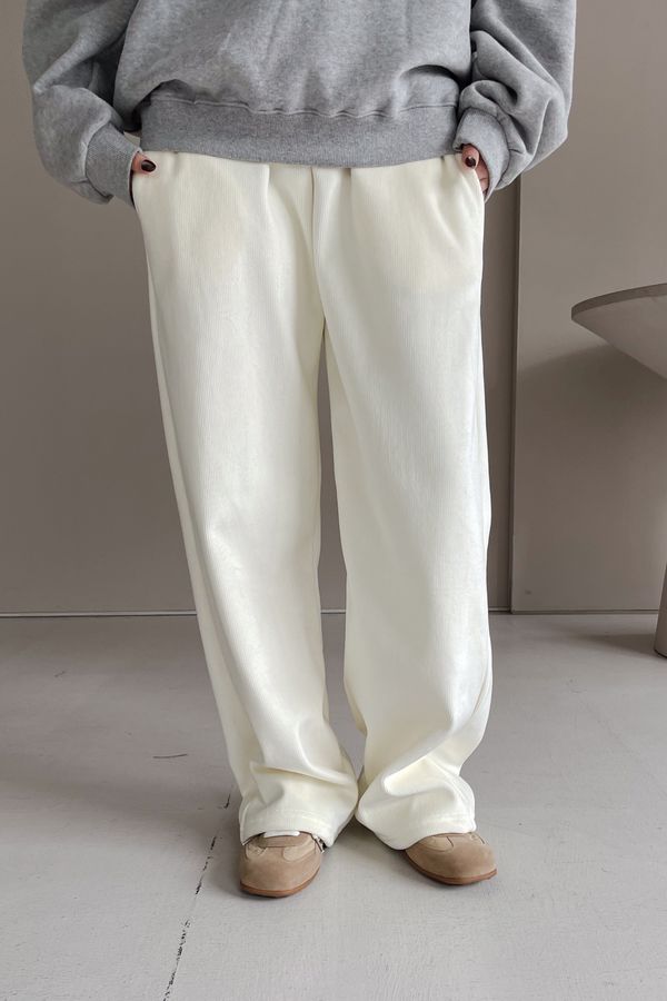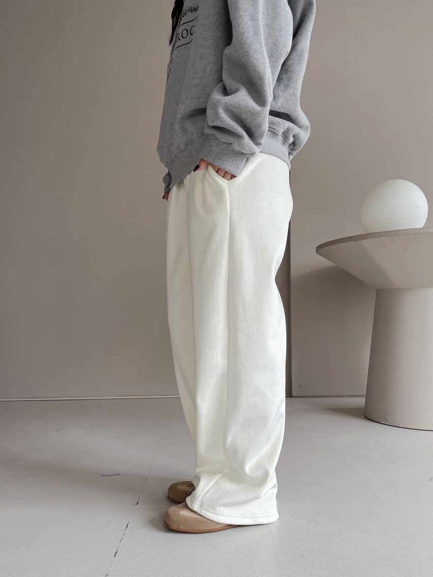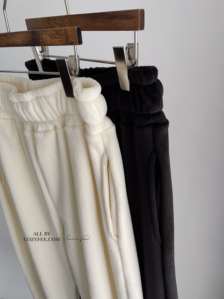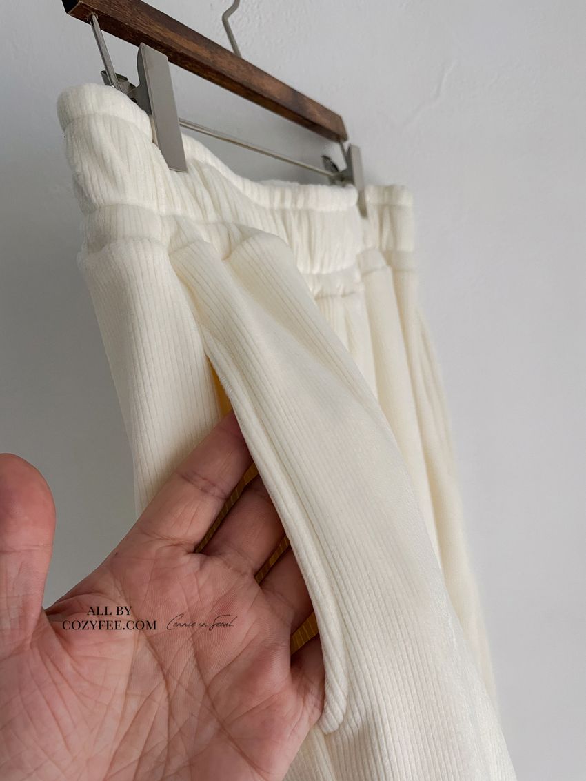 95%poly 5%span內外都是絨面刷毛 表布坑紋紋理腰圍整圈鬆緊彈性布料有彈性 滿分5分約4分黑色 / 白色單一尺寸 建議S號~L號 臀圍38吋以內 身型適合model / Yen - 159cm / 44kg 腰24 臀34