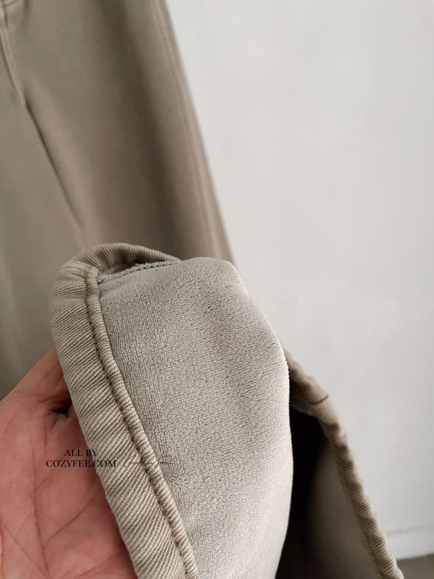78%cotton 17%poly 3%rayon 2%span內層超柔軟溫暖厚刷毛斜紋丹寧布料布料無彈性灰杏色 / 黑色分S M L三個尺寸model / Yen - 159cm / 44kg 腰24 臀34 穿S號Connie - 160cm /61kg 腰29臀40 可以穿L號