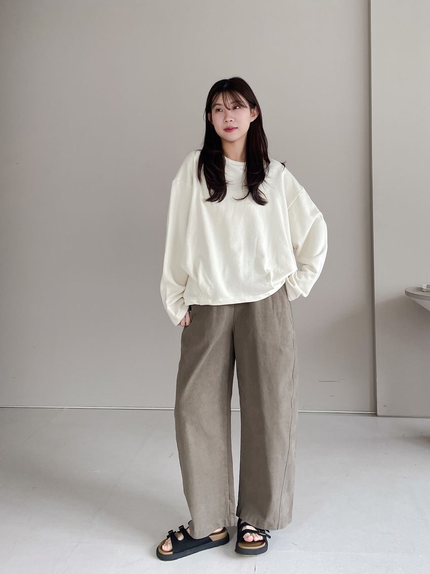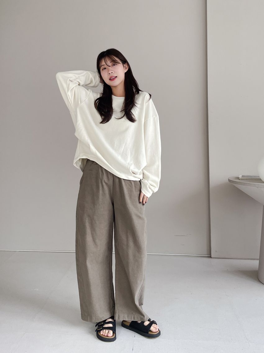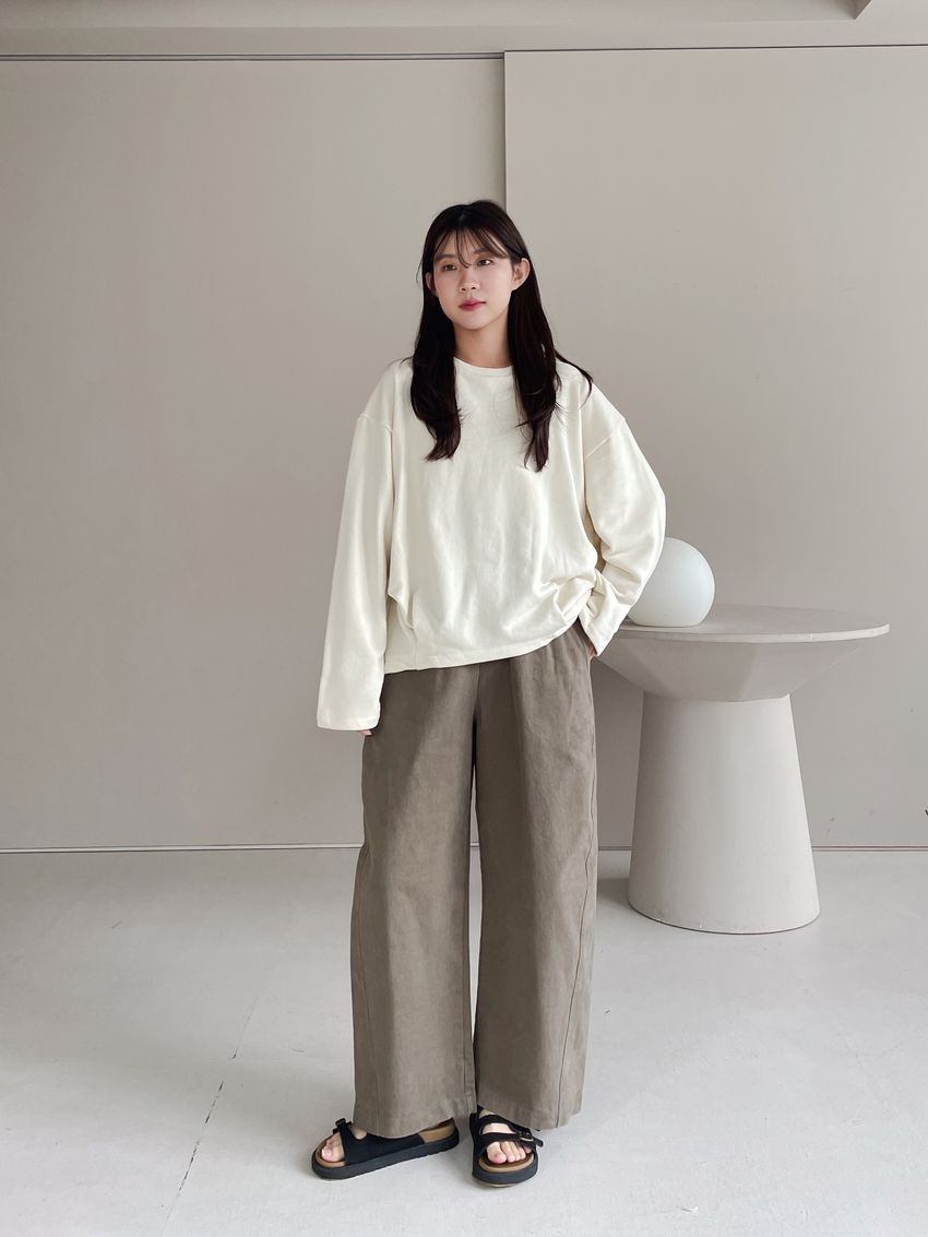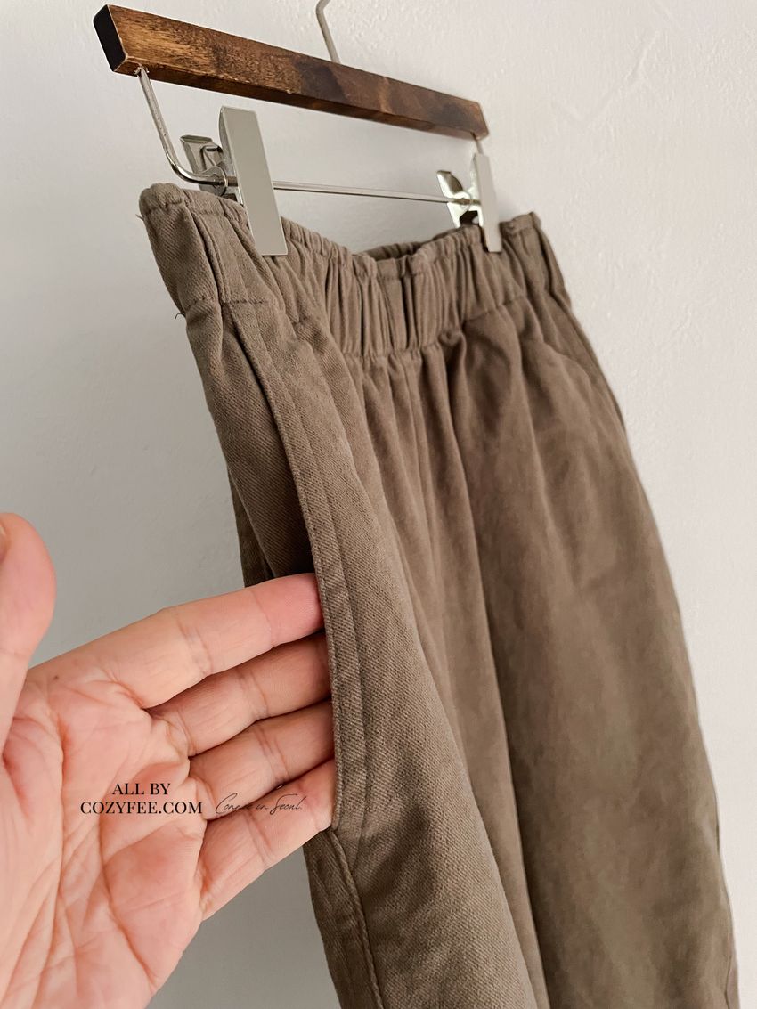95%cotton 5%span斜紋卡其布料 內層薄磨毛腰圍整圈鬆緊布料有彈性 滿分5分約4分摩卡綠色 / 灰色單一尺寸 建議S號~小L號 以內 身型適合model / Yen - 159cm / 44kg 腰24 臀34