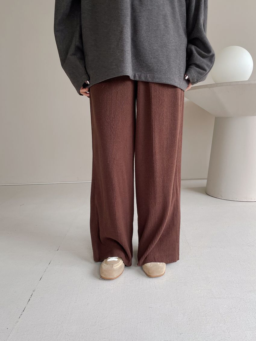 73%poly 21%rayon 6%span很有垂墜感的 柔軟坑紋表面磨毛 柔軟舒服腰圍整圈鬆緊布料有彈性 滿分5分約4分咖啡色 / 米杏色 / 黑色單一尺寸 建議S號~L號 以內 身型適合model / Yen - 159cm / 44kg 腰24 臀34