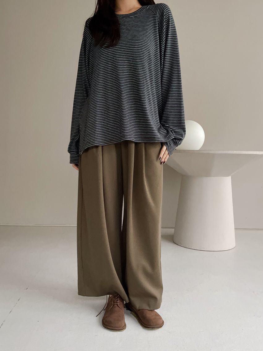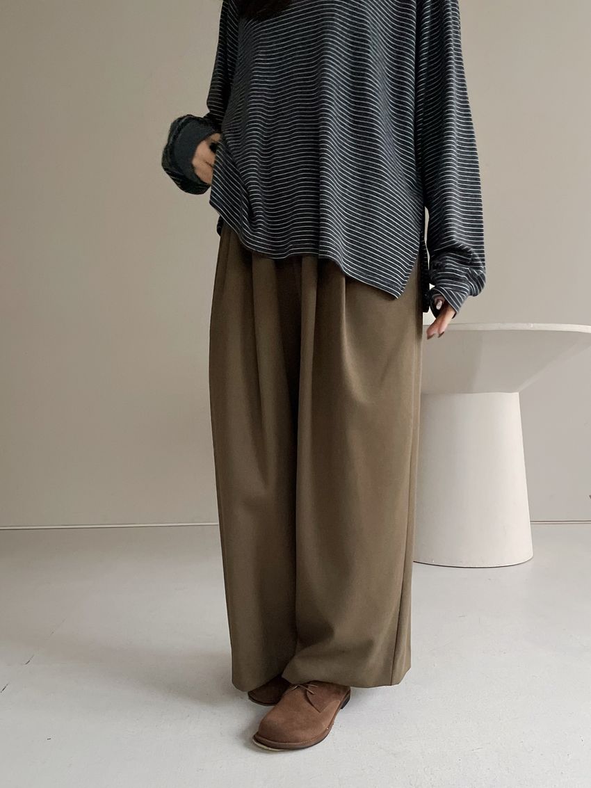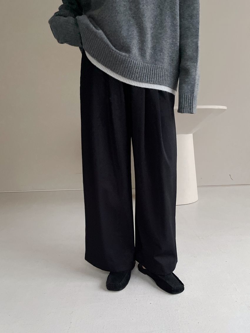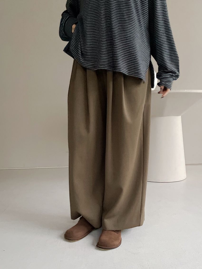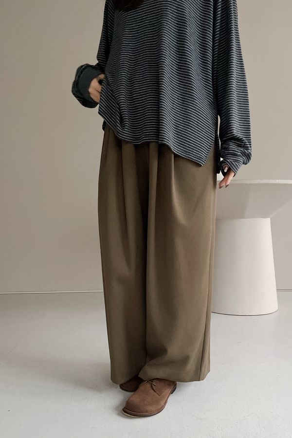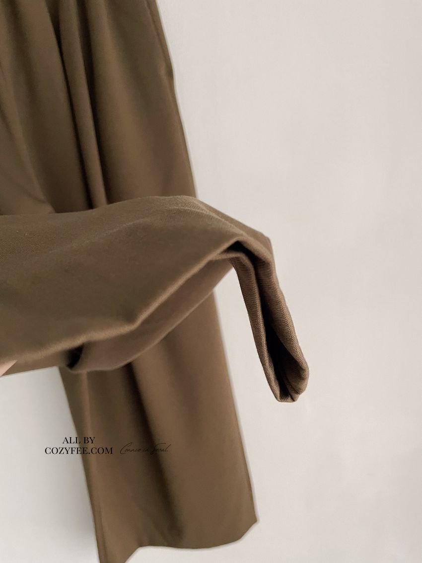 5%wool 20%rayon 5%tencel 65%poly 5%span遮肉修飾感很好基本老爺褲版型褲型線條簡單 搭配度非常好柔軟中帶挺度的厚雪紡腰圍整圈鬆緊彈性布料微微彈性 滿分5分約1分黑色 / 咖綠色單一尺寸 建議S號~L號 以內 身型適合model / Yen - 159cm / 44kg 腰24 臀34