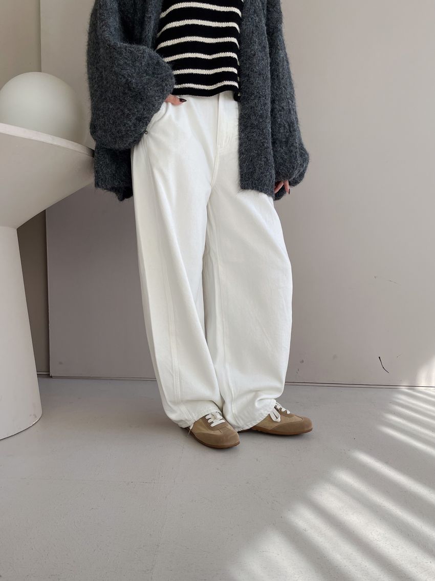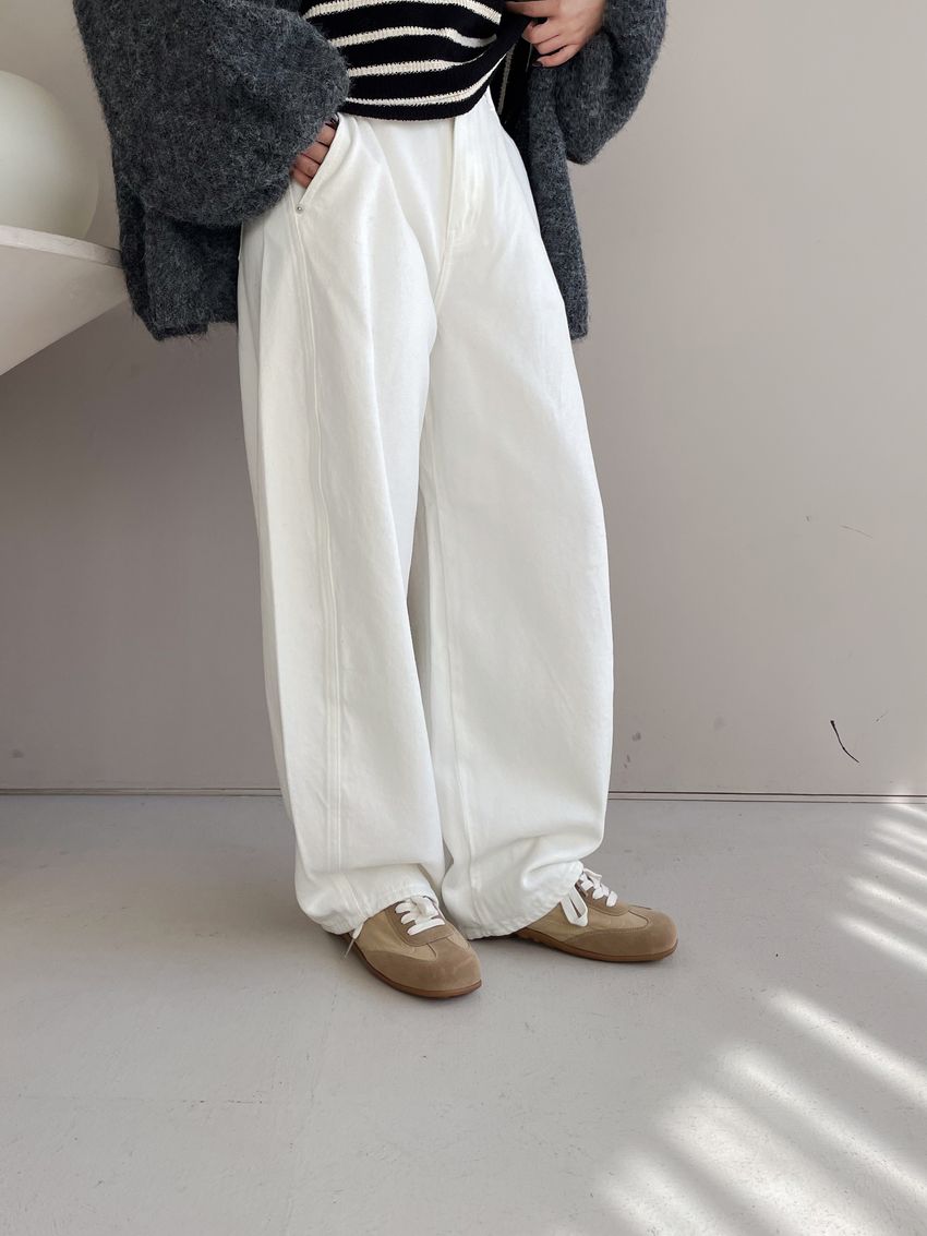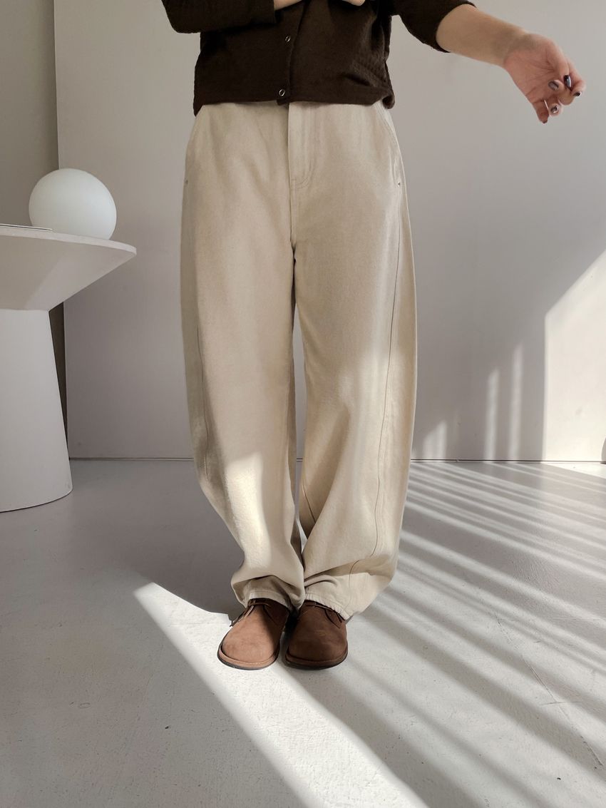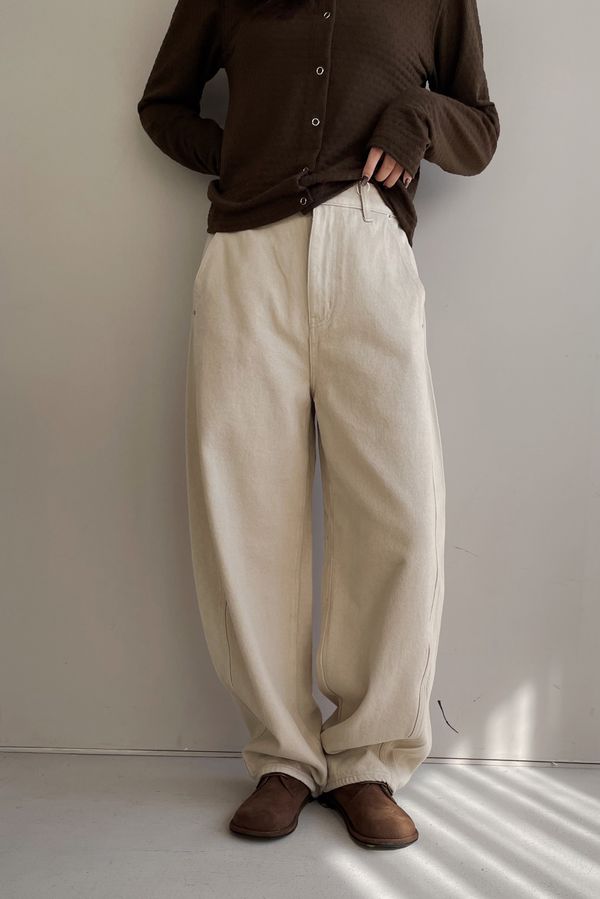 弧形縫線設計 彎月上寬下窄氣球褲版型