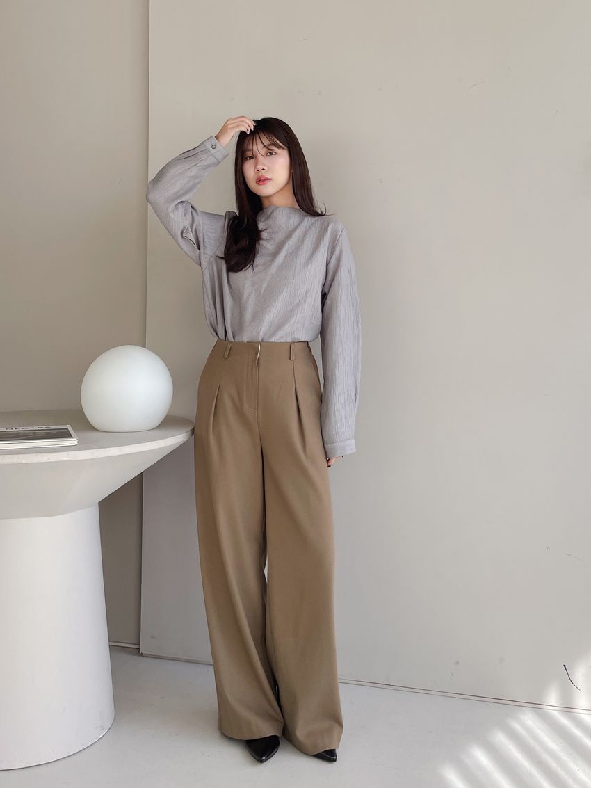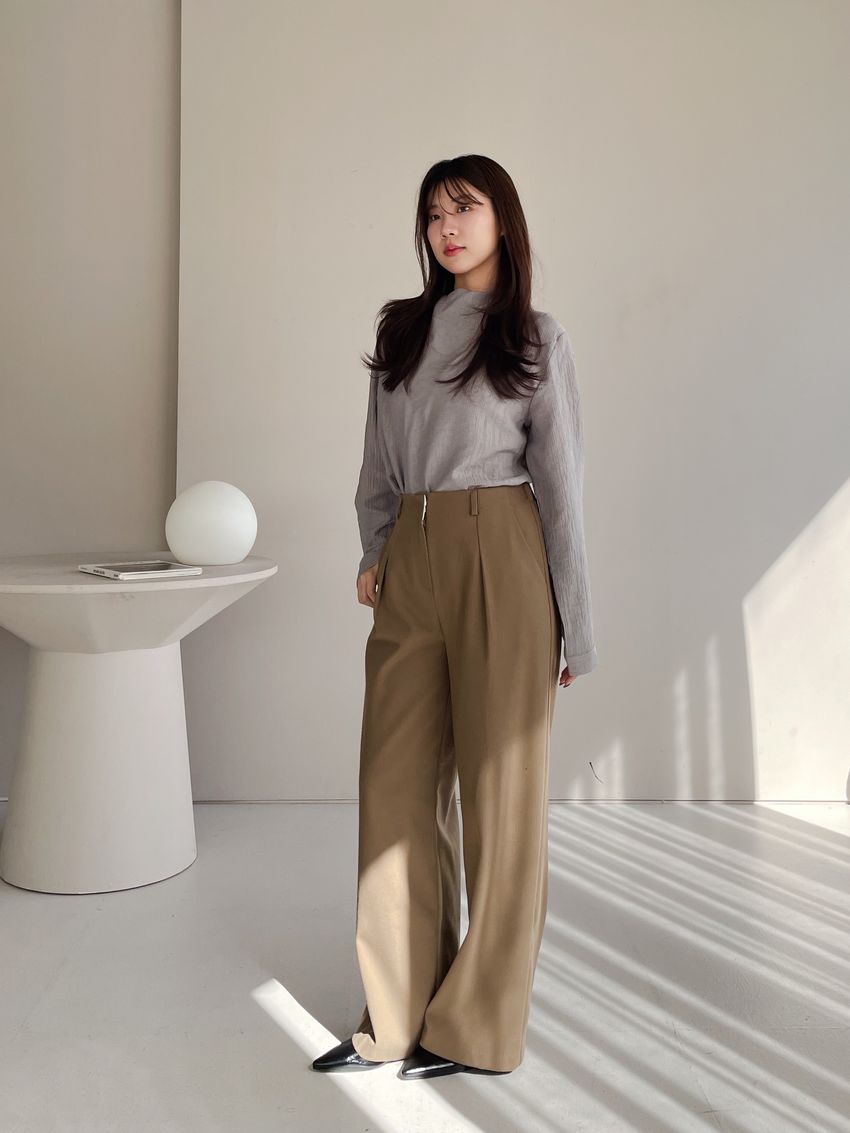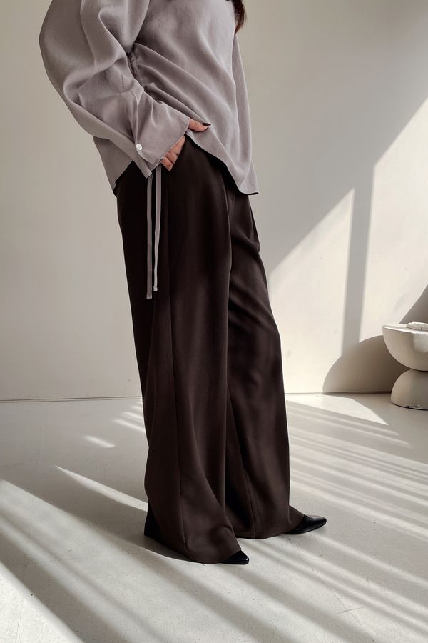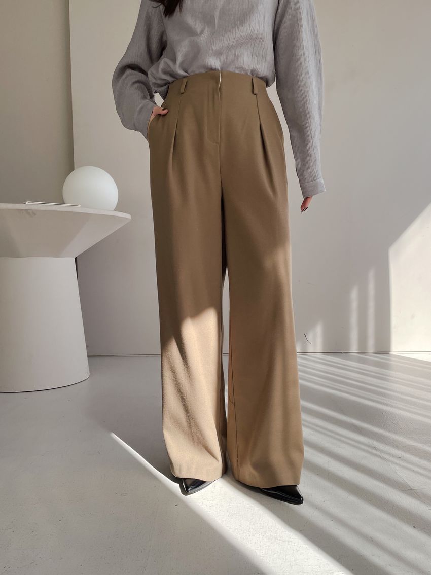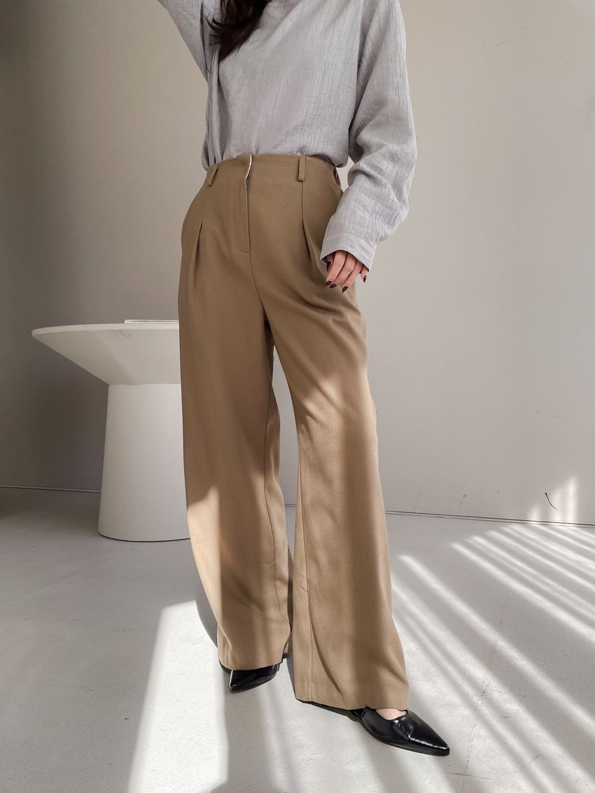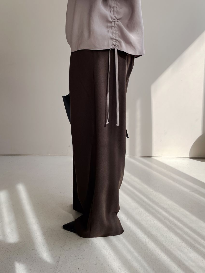 76%tencel 22%rayon 2%span隱藏無褲頭 褲頭為勾釦設計後腰鬆緊 落地西裝寬褲版型布料有微微彈性 滿分5分約1分奶茶棕色 / 深咖啡色單一尺寸 建議S號~M號 以內 身型適合model / Yen - 159cm / 44kg 腰24 臀34