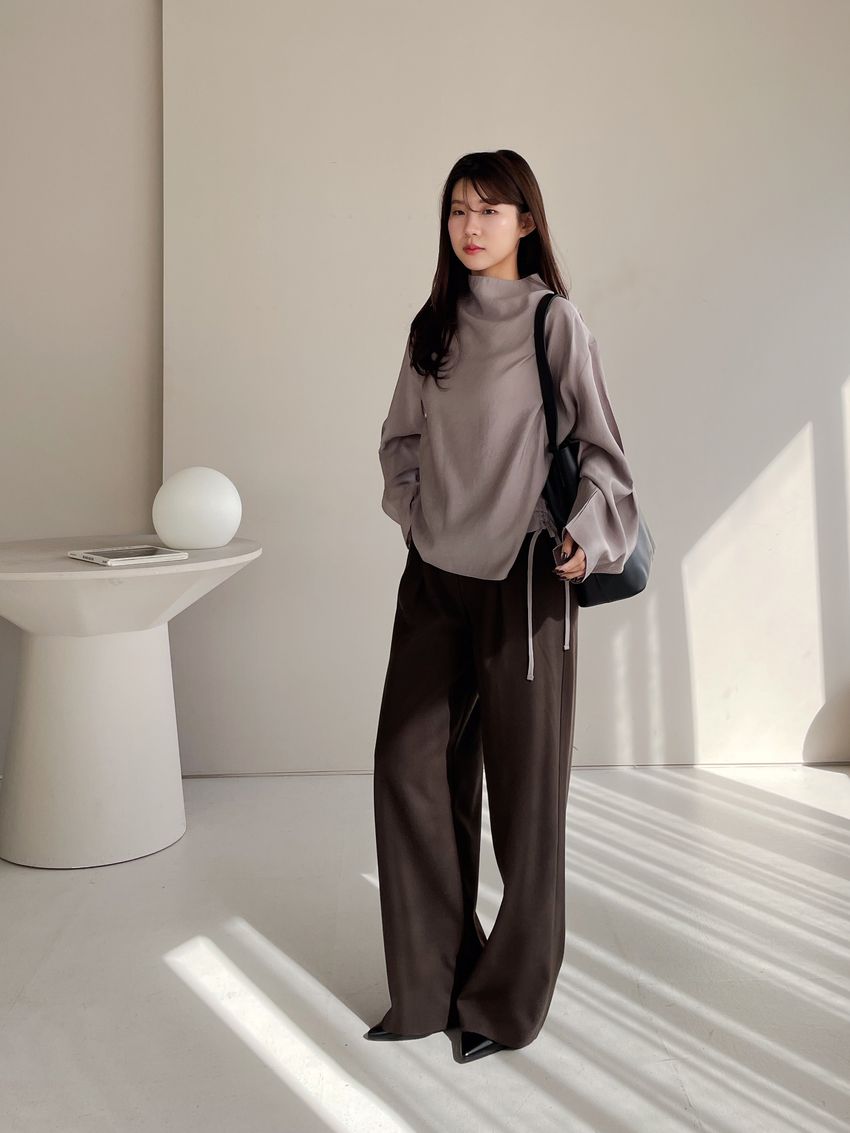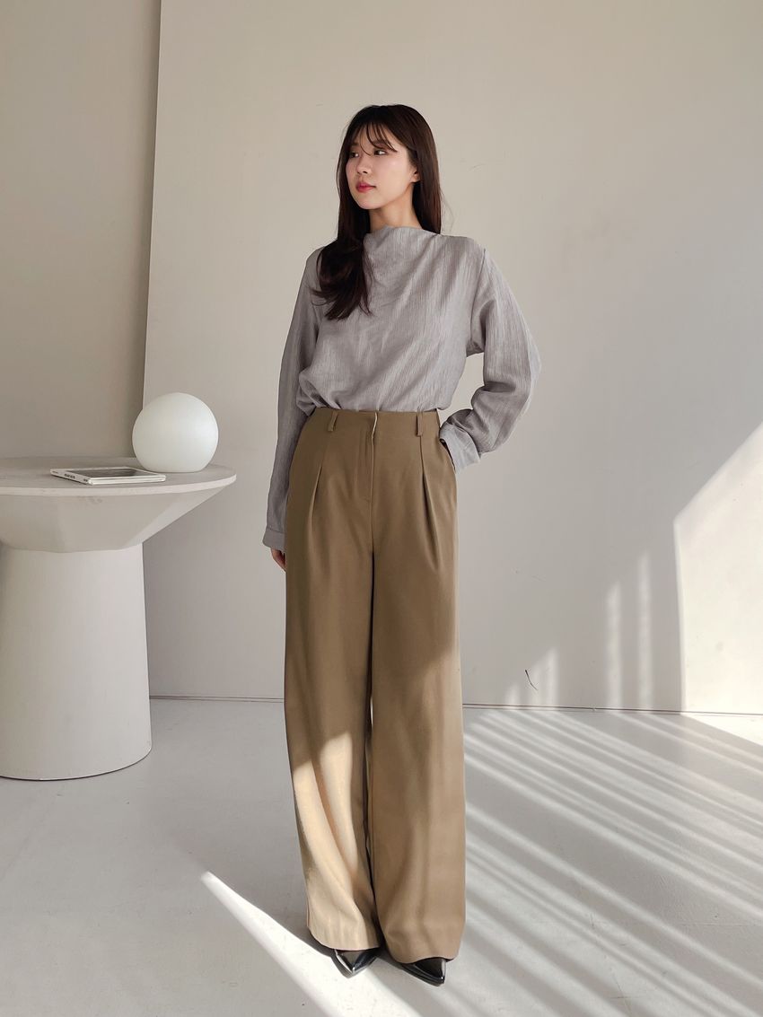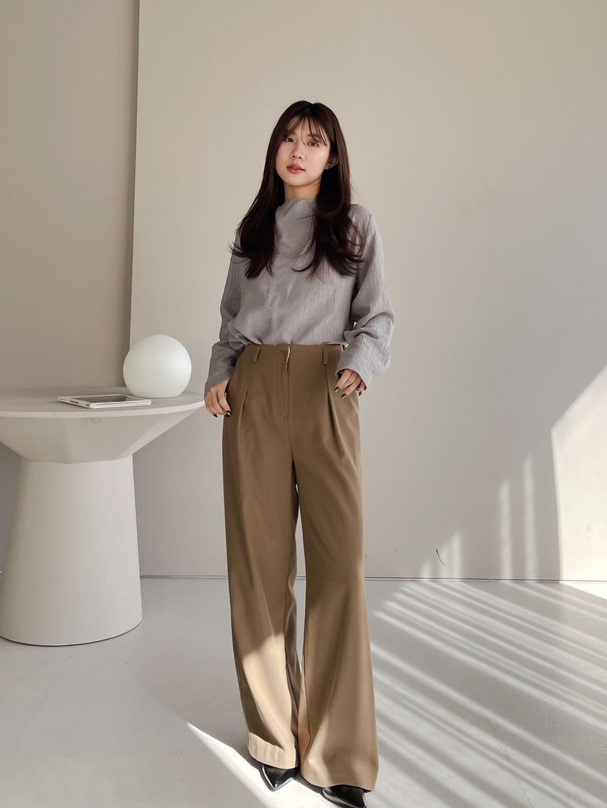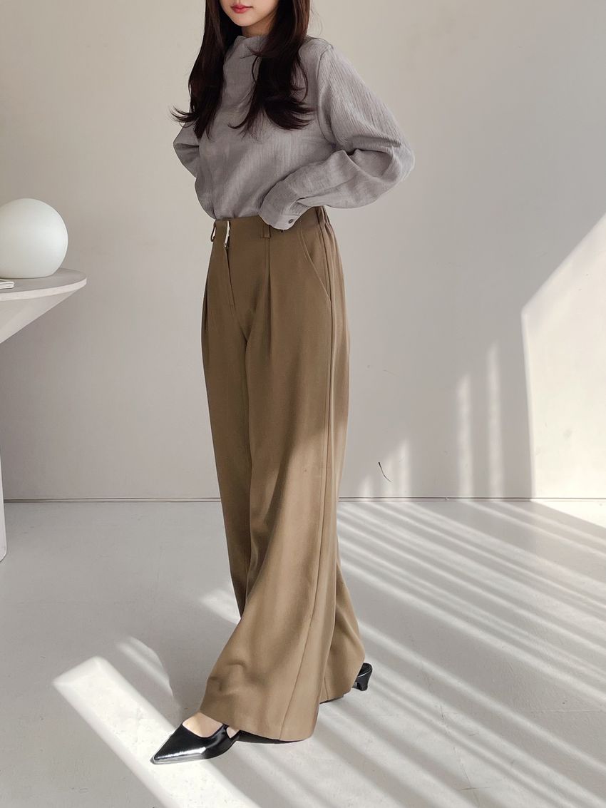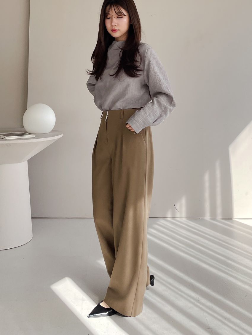 76%tencel 22%rayon 2%span隱藏無褲頭 褲頭為勾釦設計後腰鬆緊 落地西裝寬褲版型布料有微微彈性 滿分5分約1分奶茶棕色 / 深咖啡色單一尺寸 建議S號~M號 以內 身型適合model / Yen - 159cm / 44kg 腰24 臀34