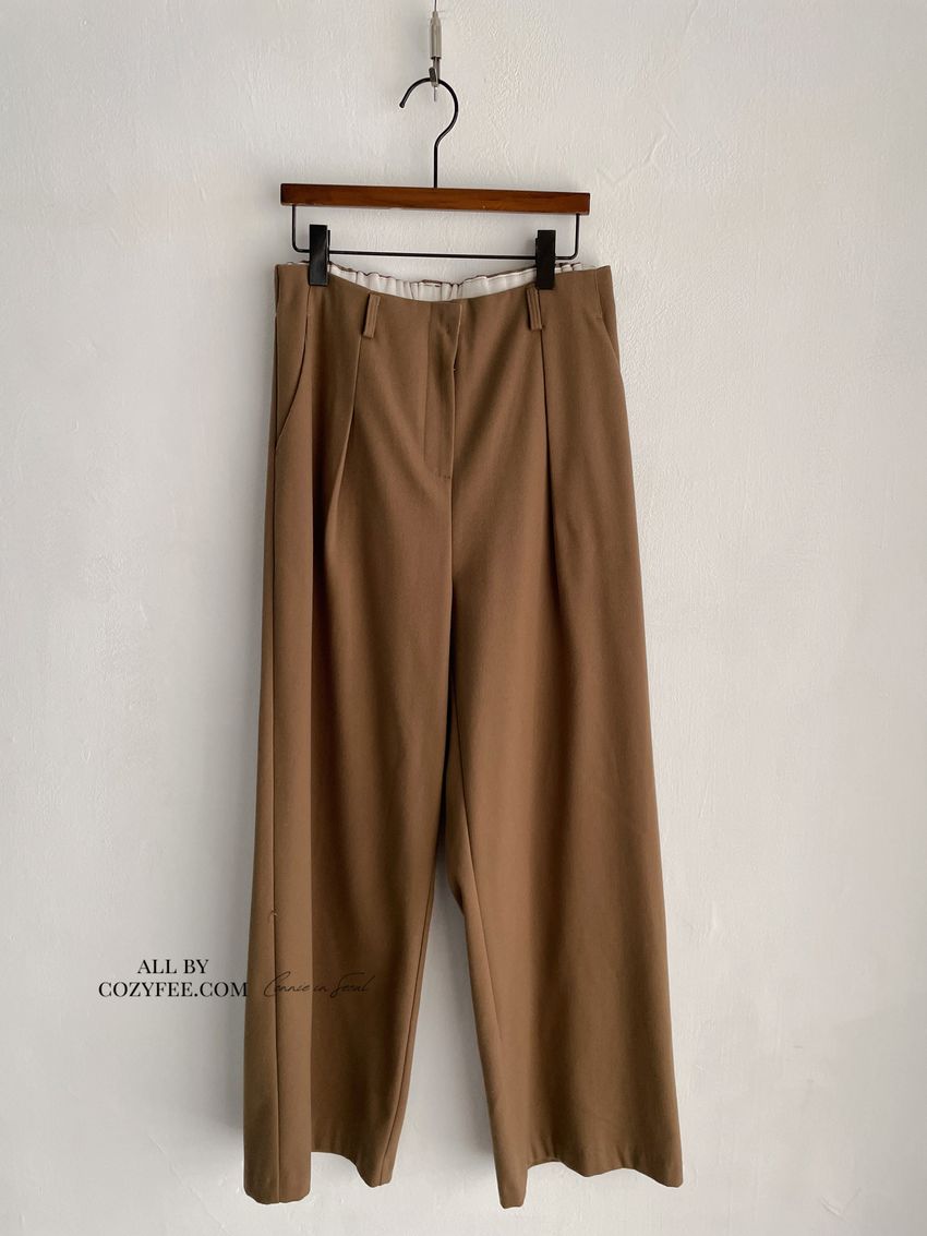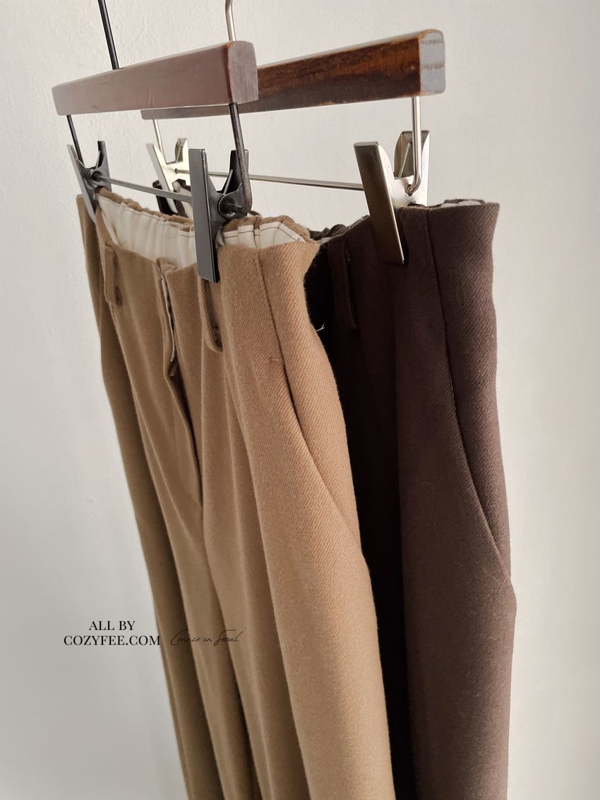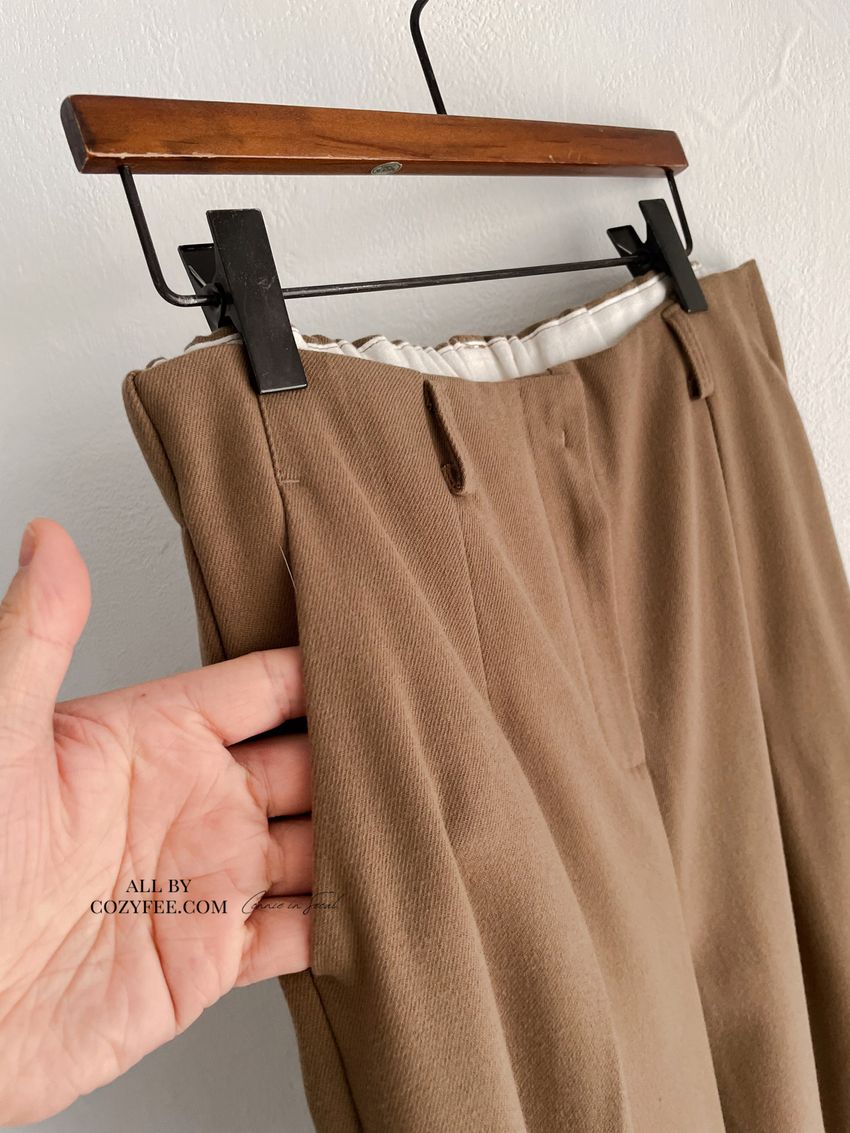 76%tencel 22%rayon 2%span隱藏無褲頭 褲頭為勾釦設計後腰鬆緊 落地西裝寬褲版型布料有微微彈性 滿分5分約1分奶茶棕色 / 深咖啡色單一尺寸 建議S號~M號 以內 身型適合model / Yen - 159cm / 44kg 腰24 臀34開始處31:58開始處1:41:13