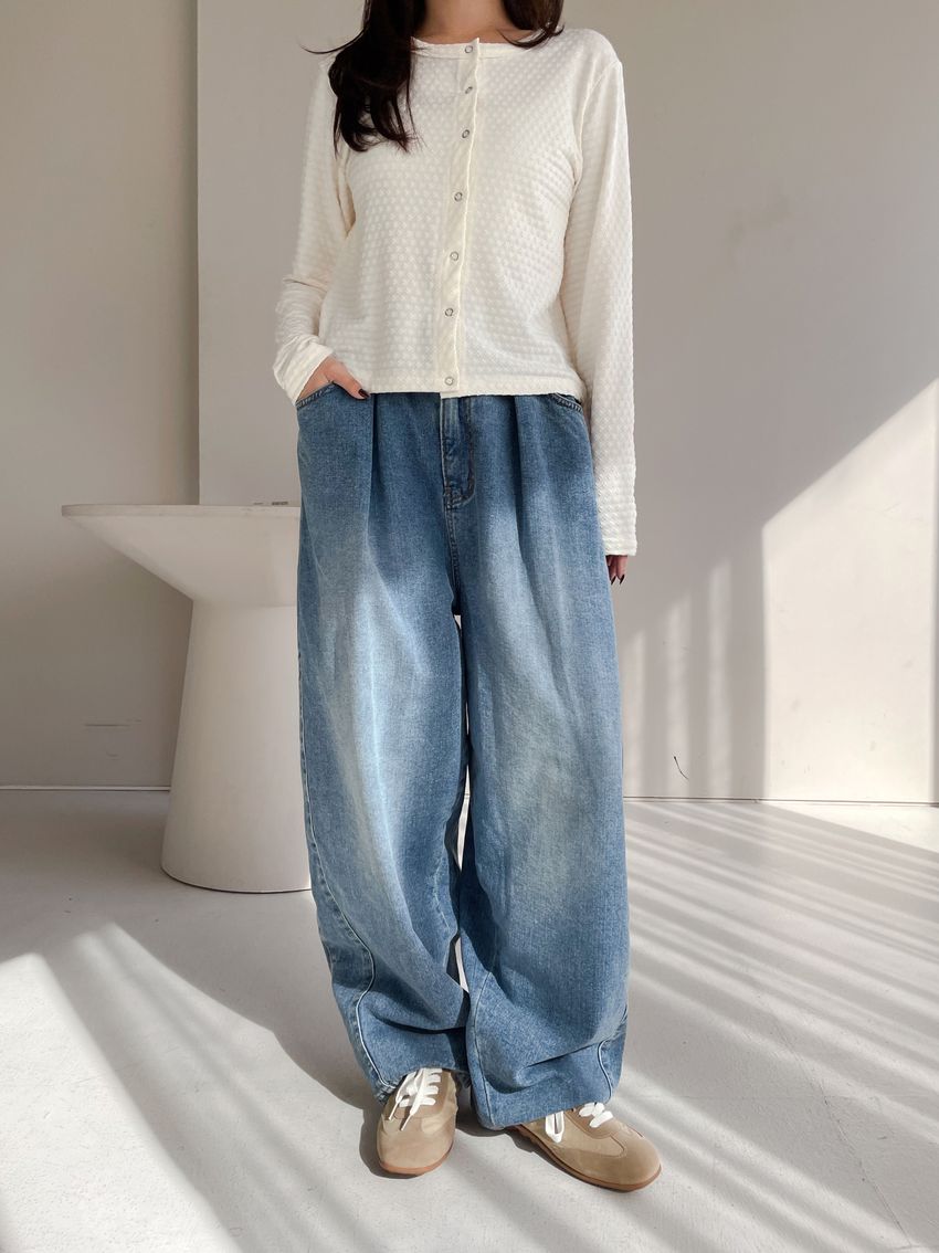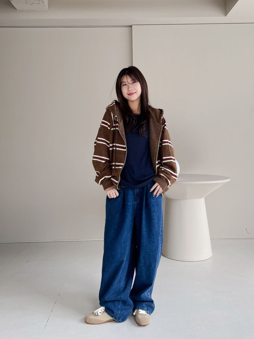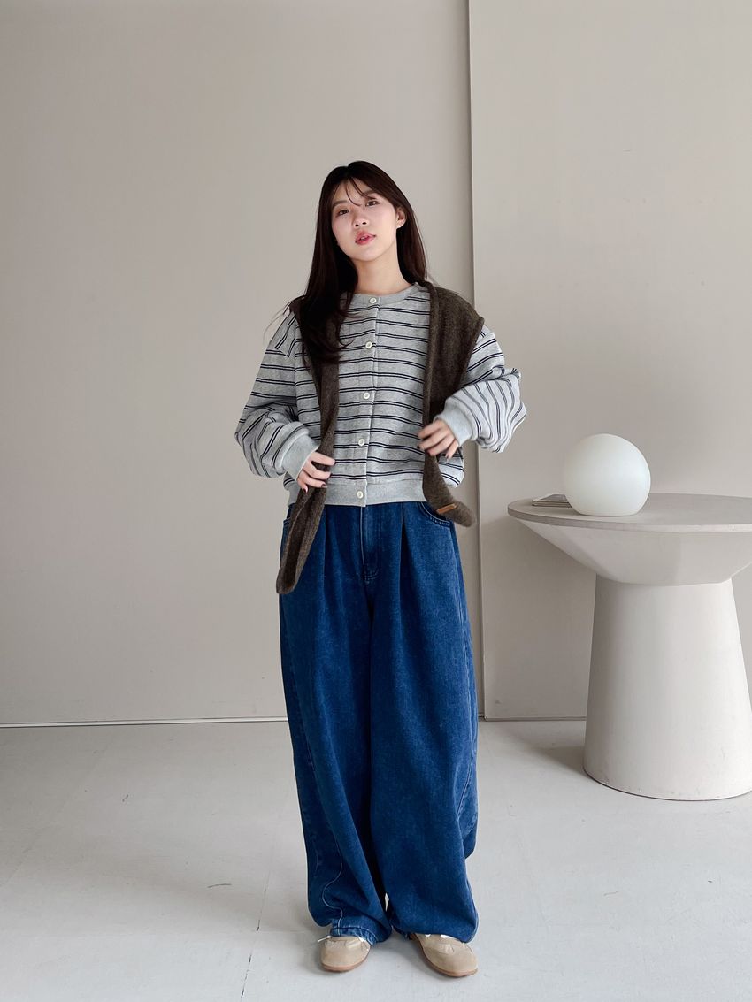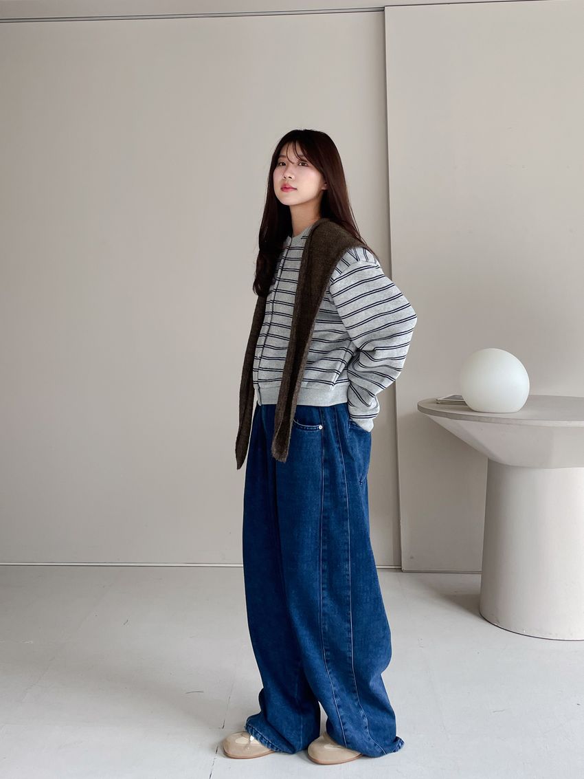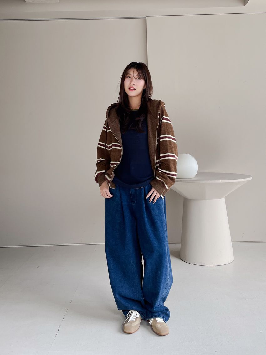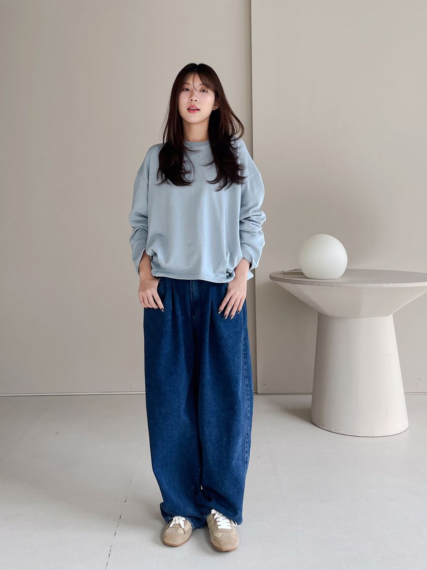 100%cotton寬鬆上寬下窄錐形褲型整體比較寬大鬆鬆的個性感後腰鬆緊 內層薄薄磨毛布料無彈性深藍色 / 淺藍色單一尺寸 建議S號~L號 以內 身型適合model / Yen - 159cm / 44kg 腰24 臀34