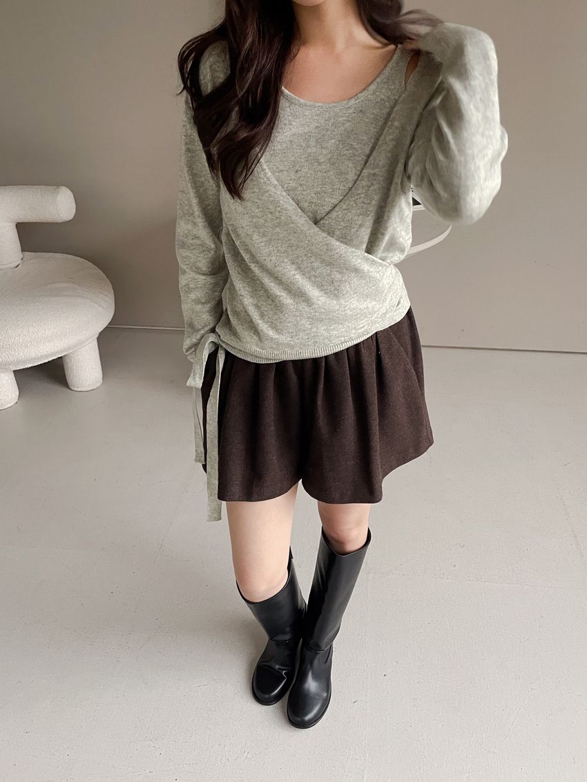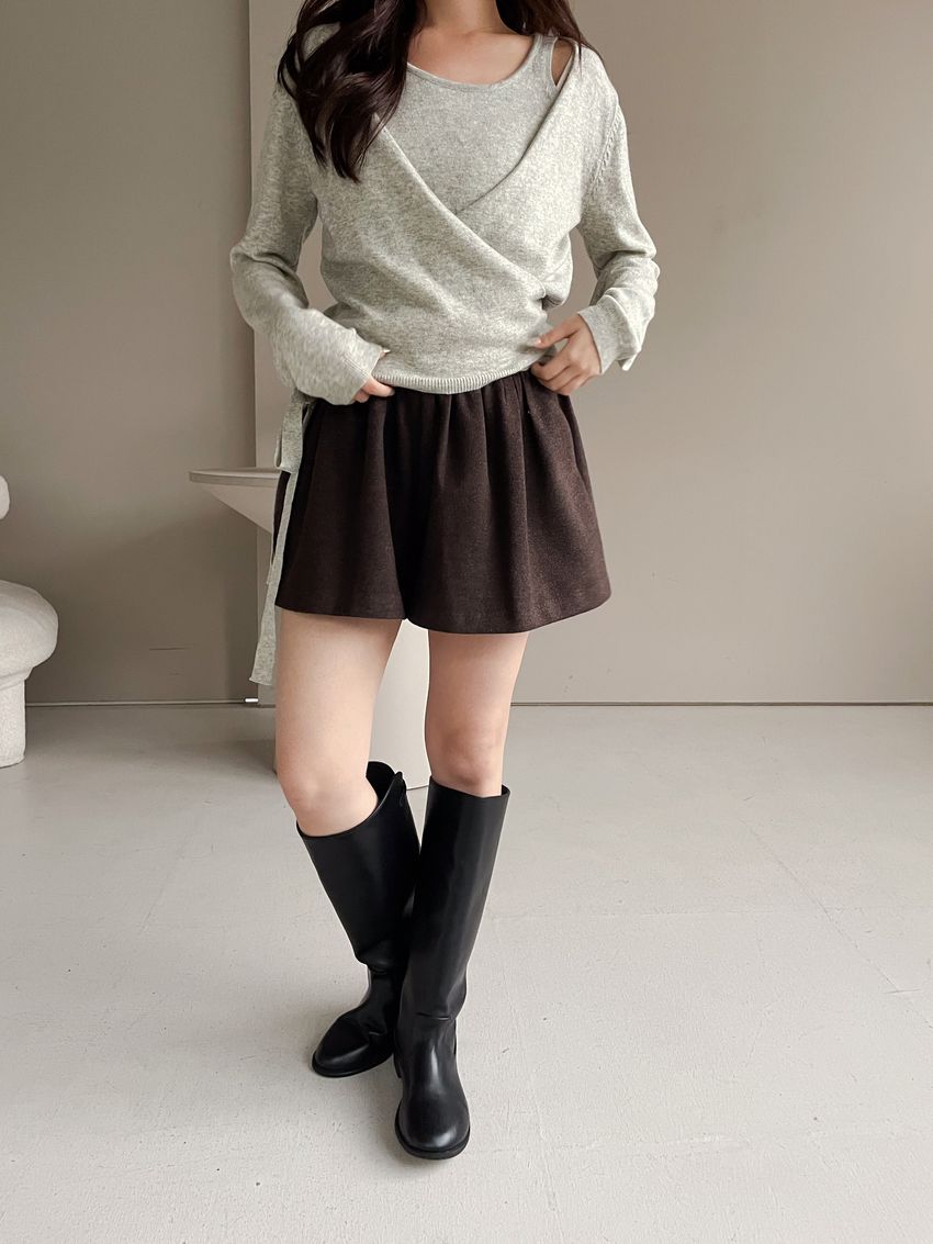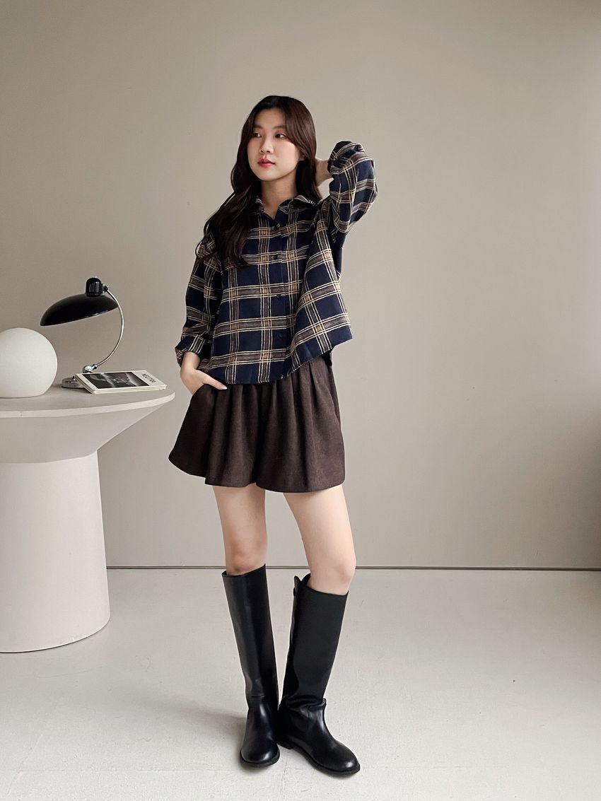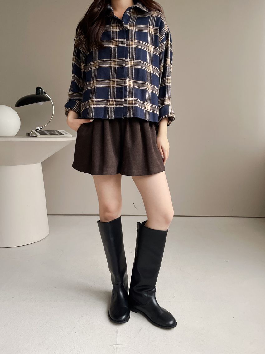> 細抓摺毛呢短褲