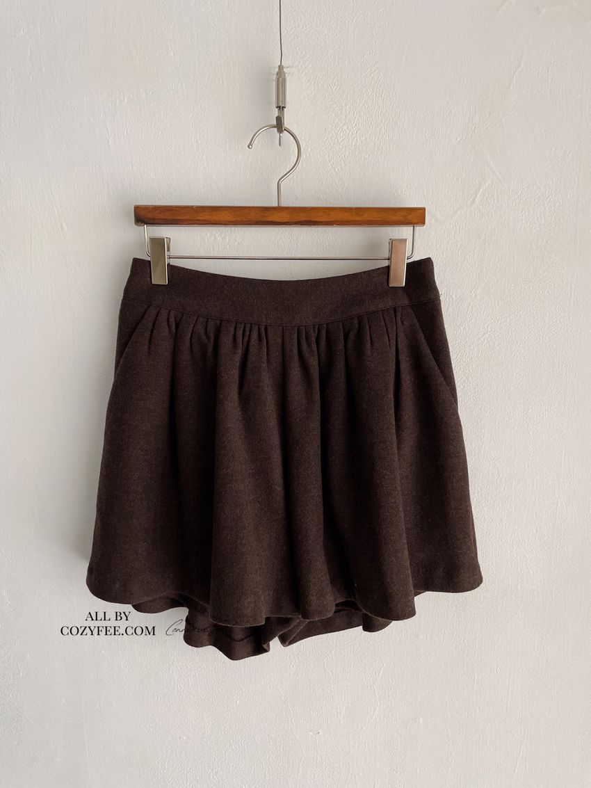 細抓摺毛呢短褲