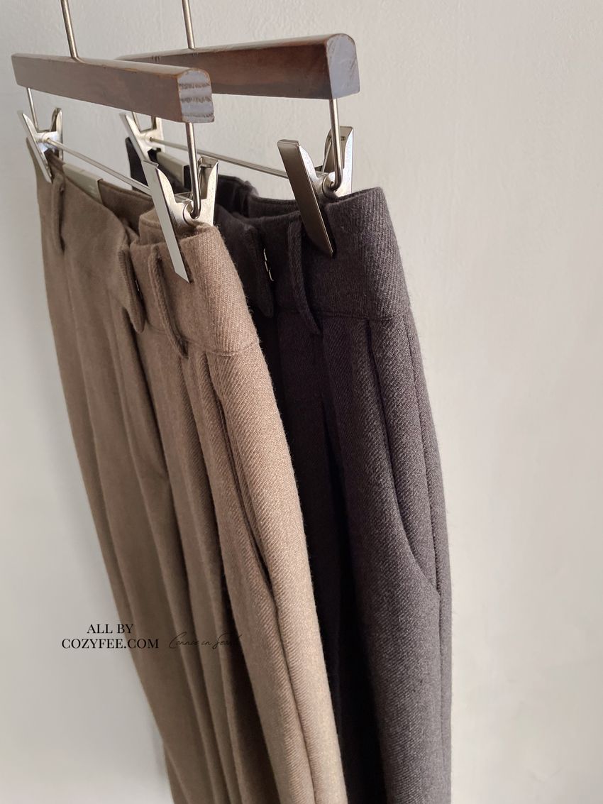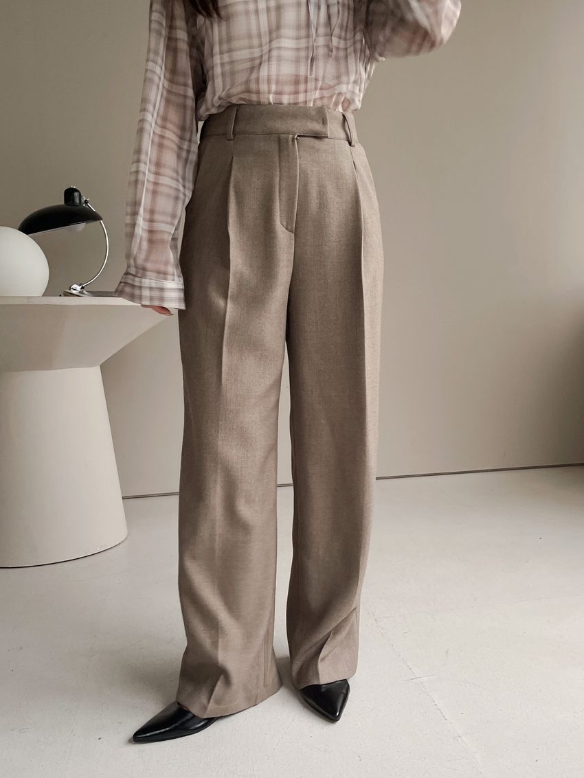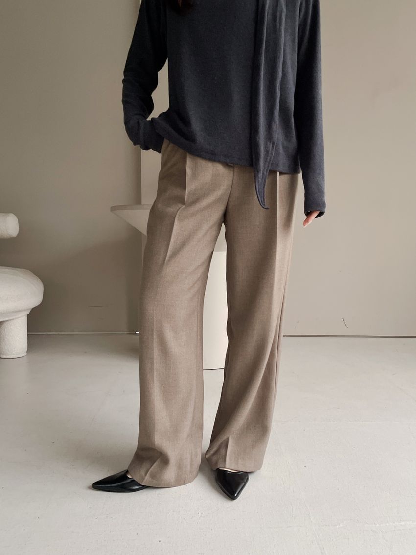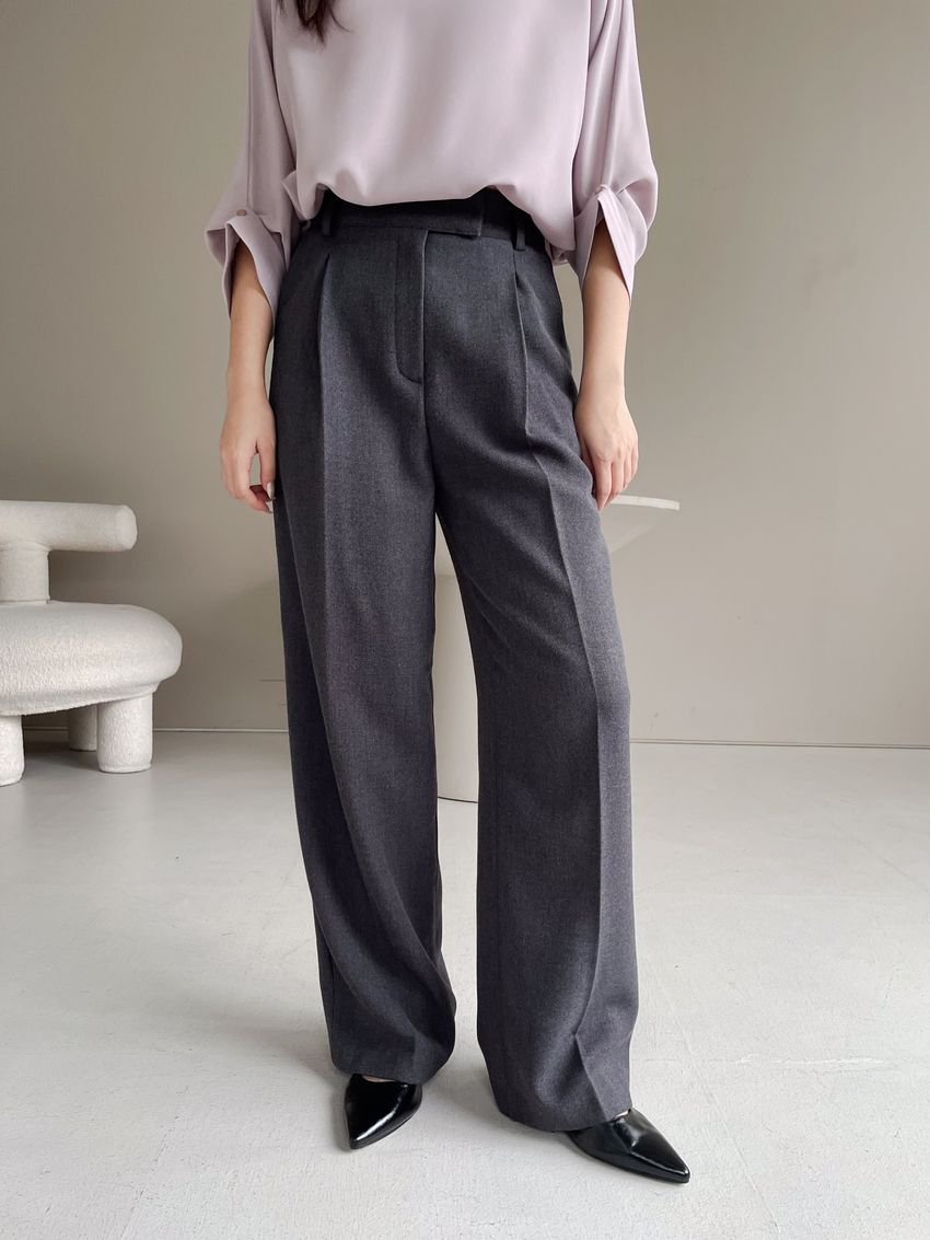 簡約乾淨單摺 直筒寬褲版型寬版褲頭 側隱藏暗釦