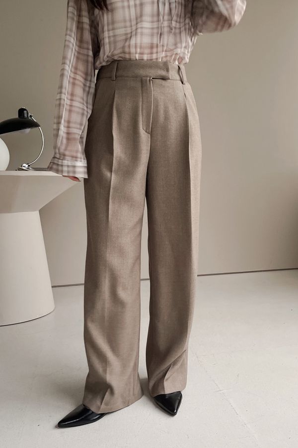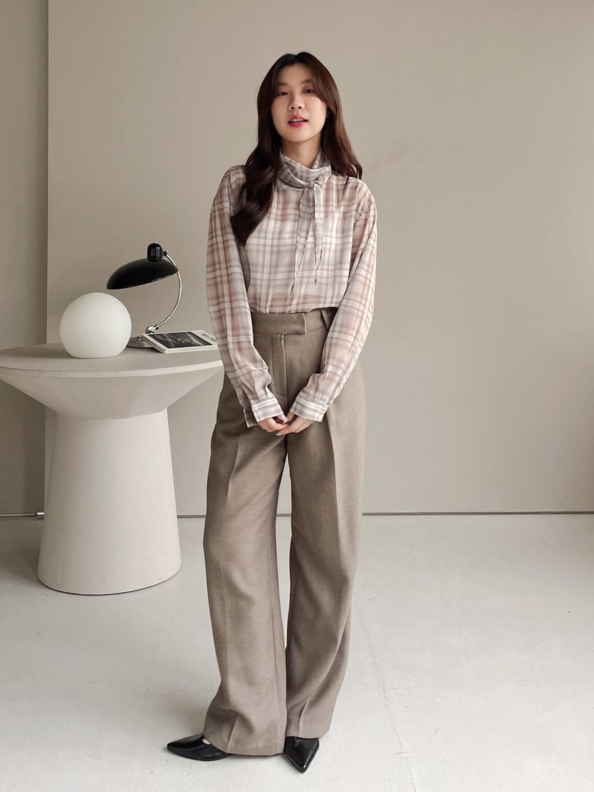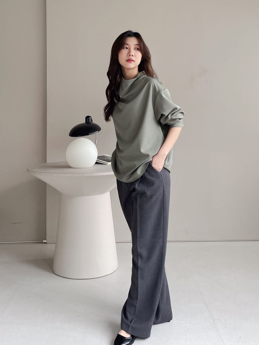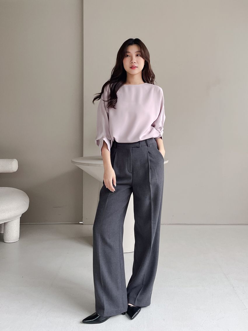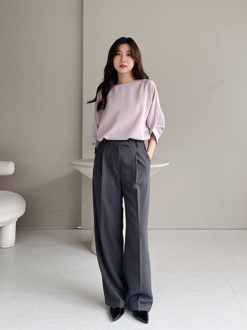 簡約乾淨單摺 直筒寬褲版型寬版褲頭 側隱藏暗釦