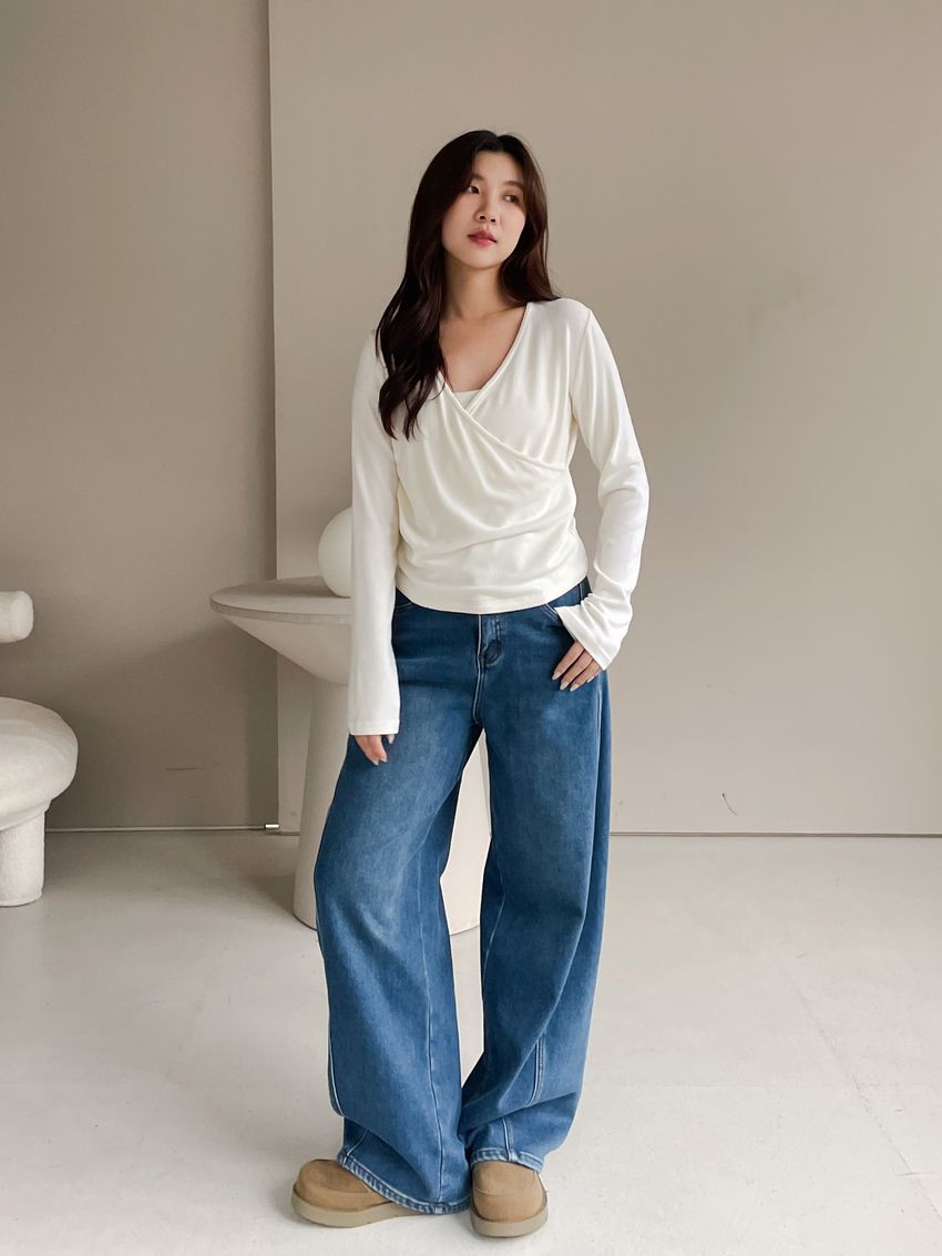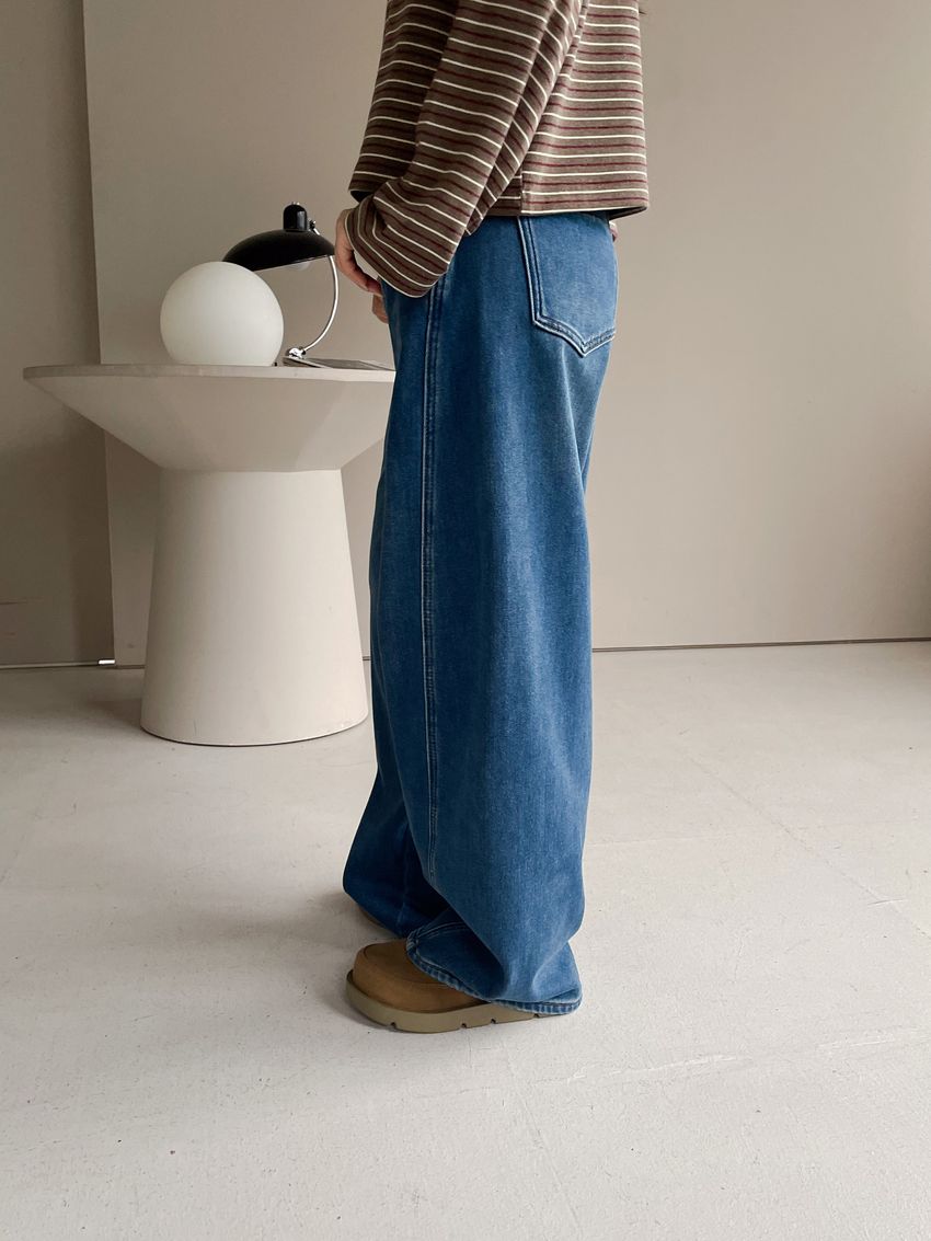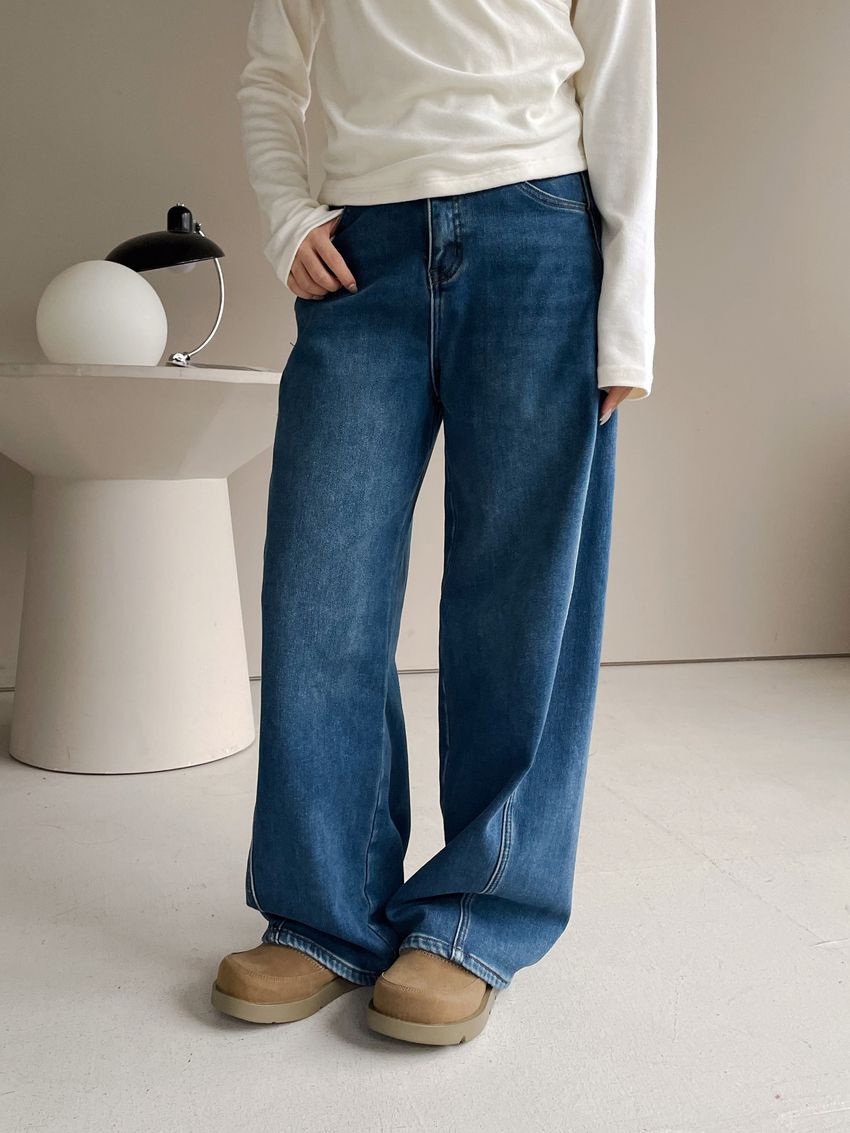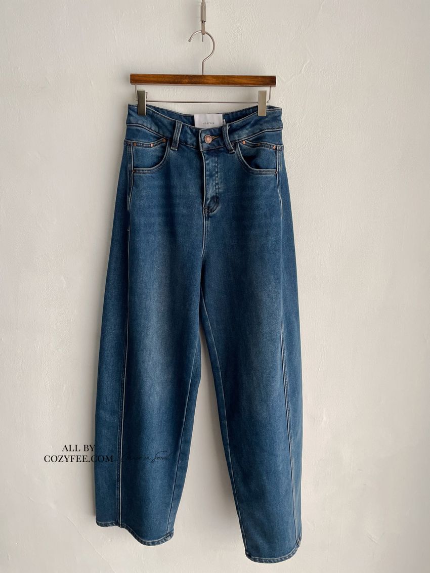 Connie推薦款!叮釦車線繭型廓腿丹寧褲