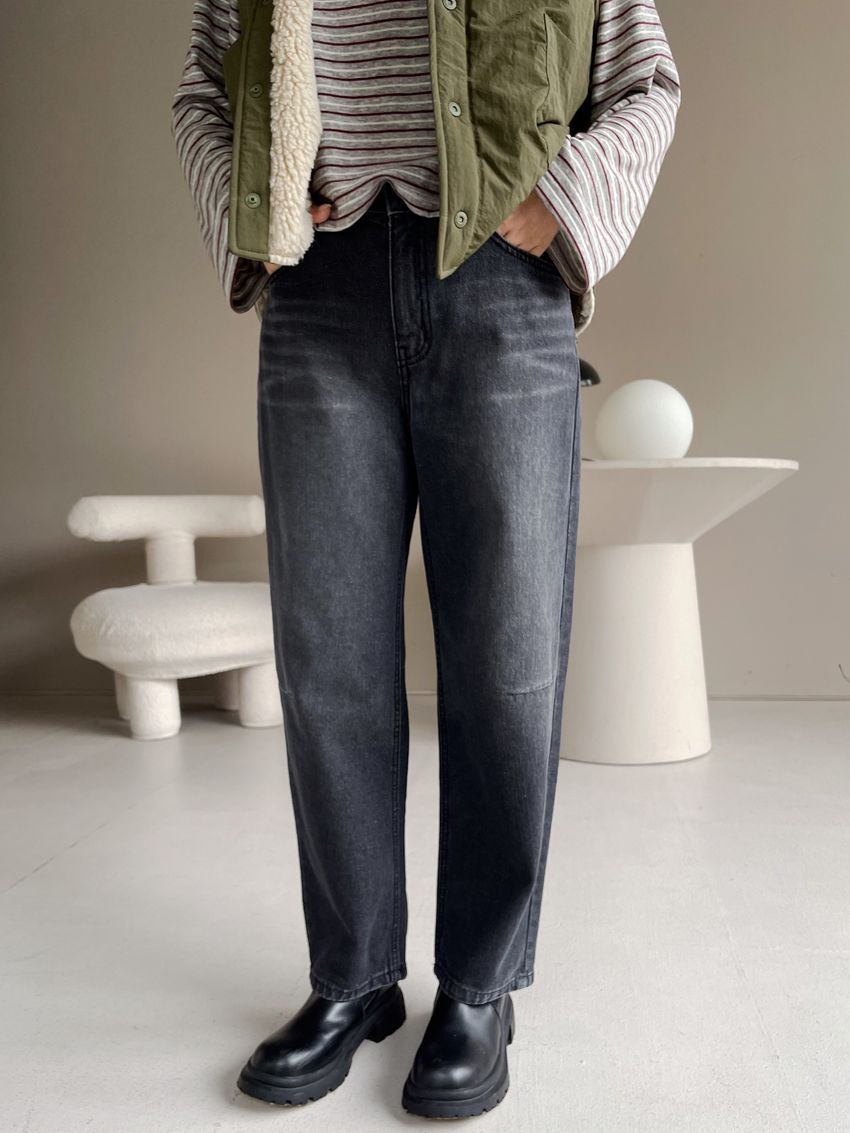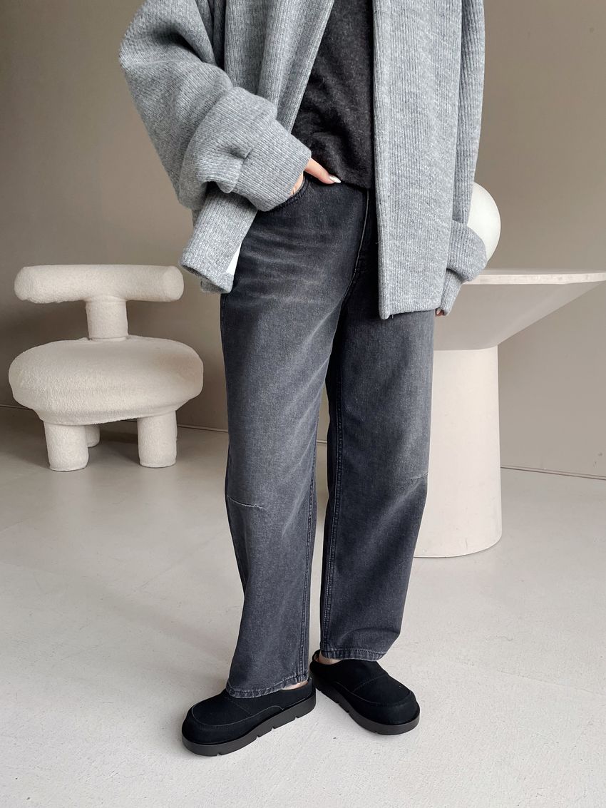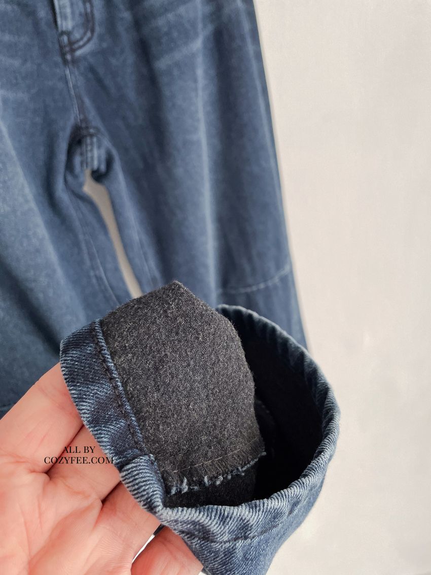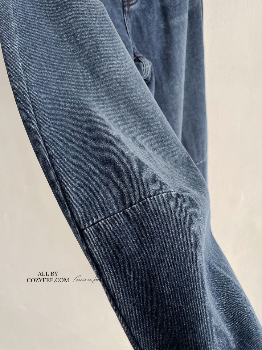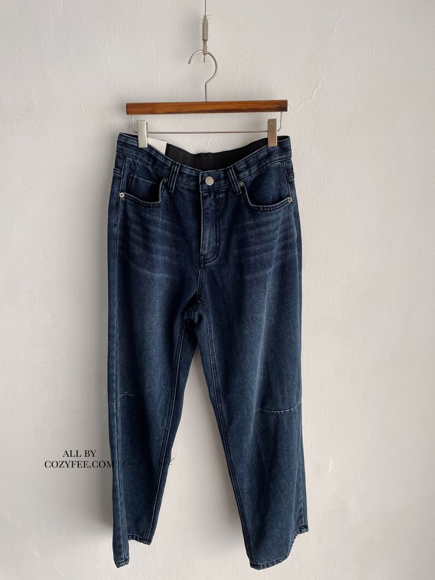 Connie推薦款!膝車線腰內鬆緊單寧褲