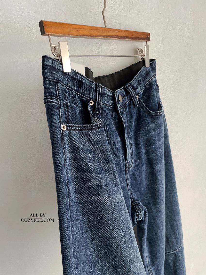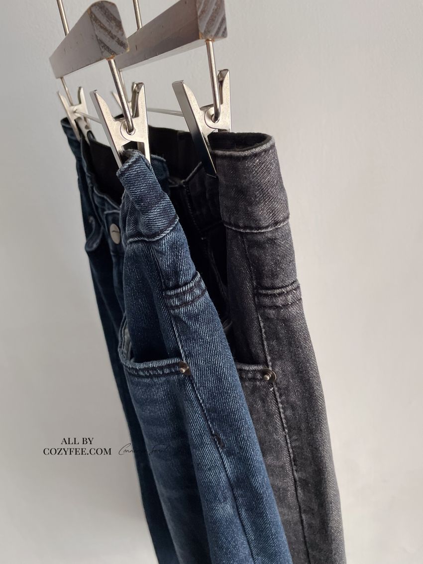 > Connie推薦款!膝車線腰內鬆緊單寧褲