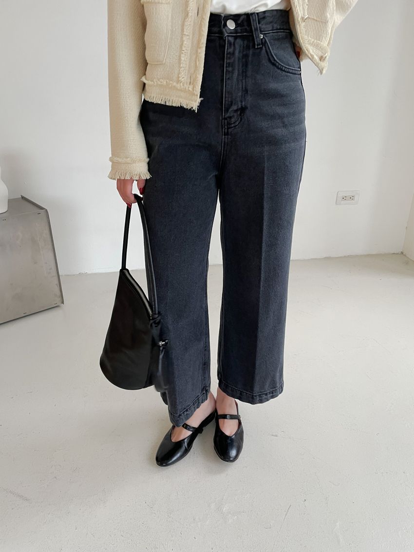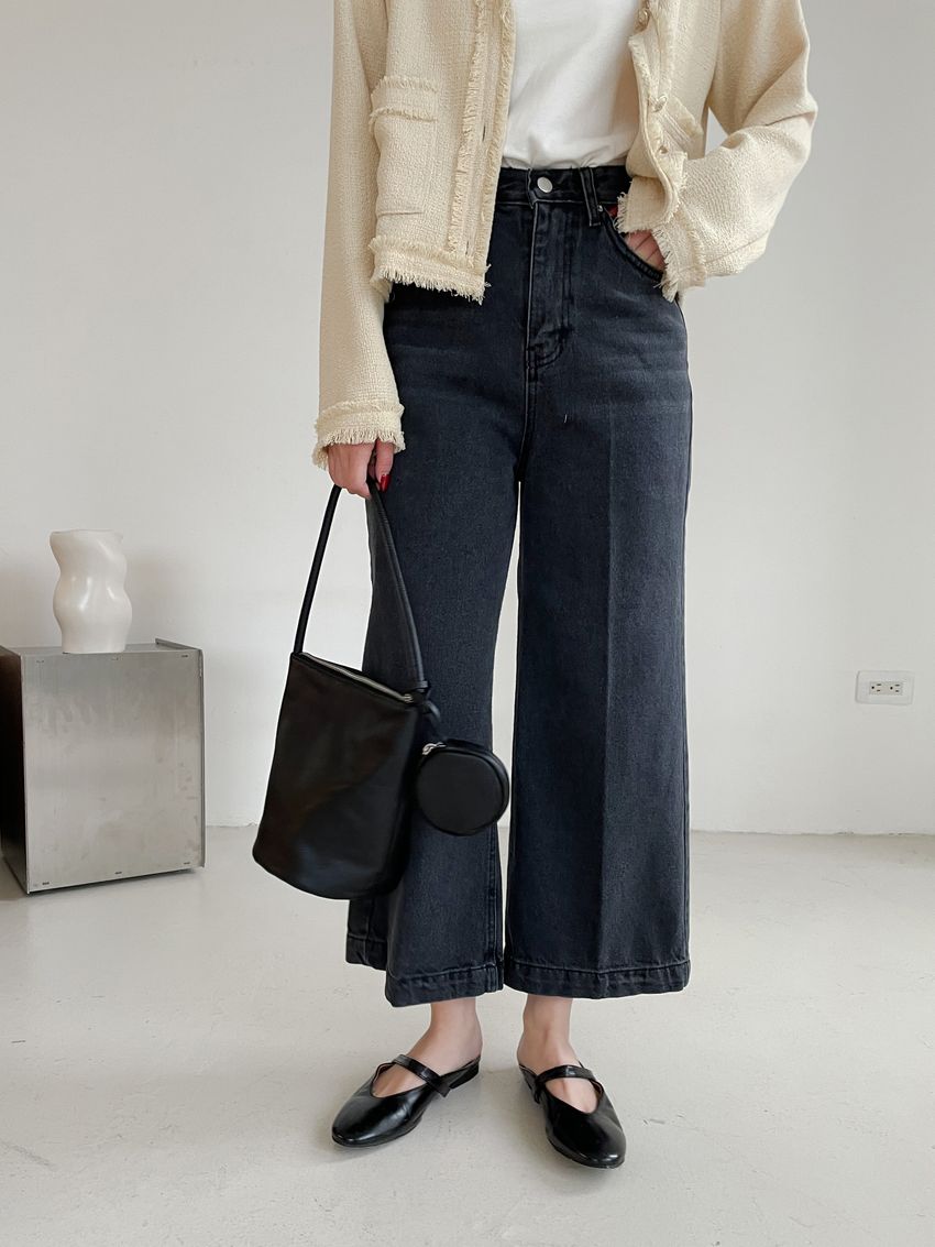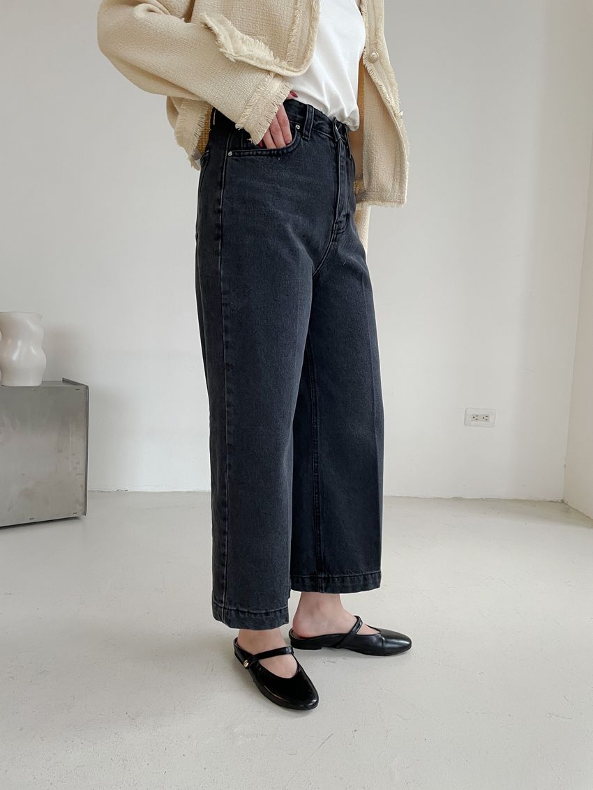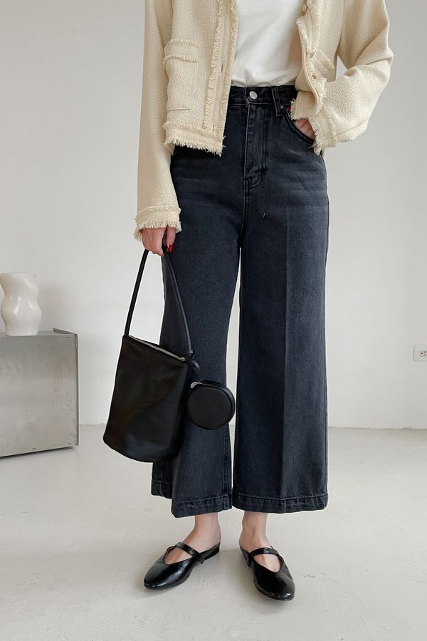 黑灰單寧八分寬褲