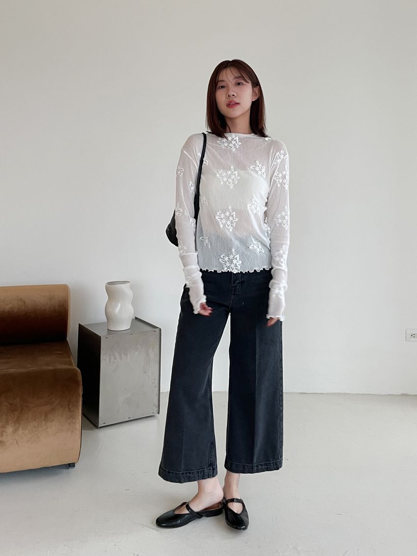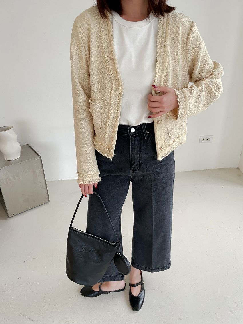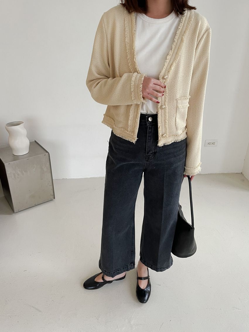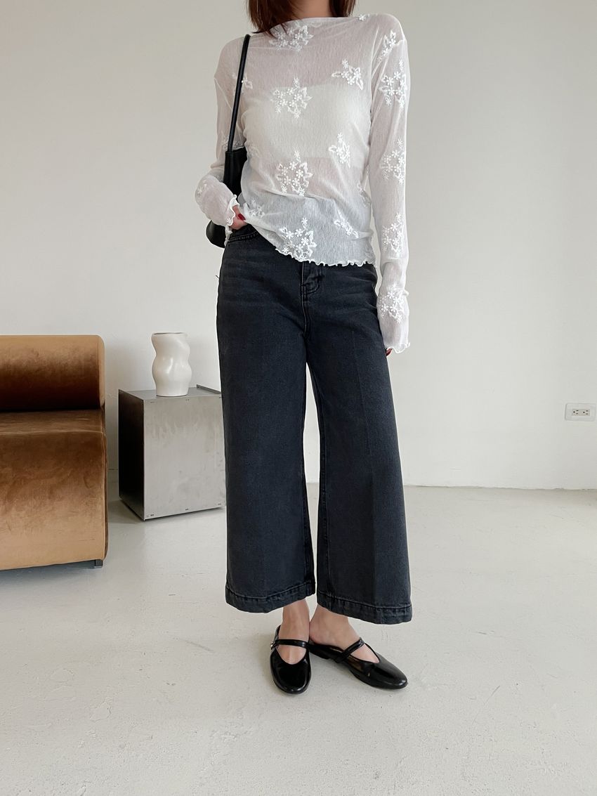 黑灰單寧八分寬褲