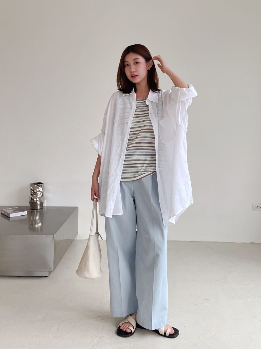 > 琥珀單釦壓摺老爺褲