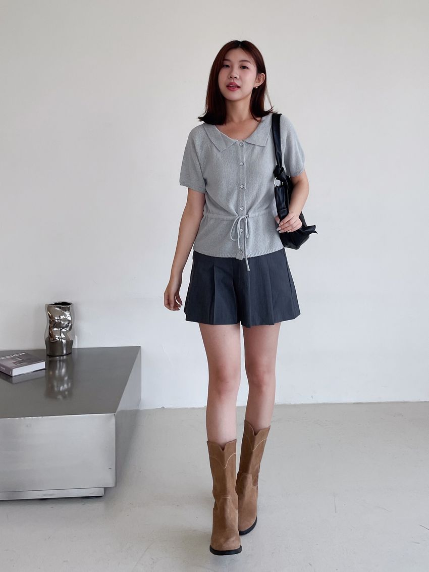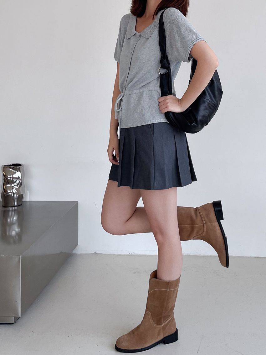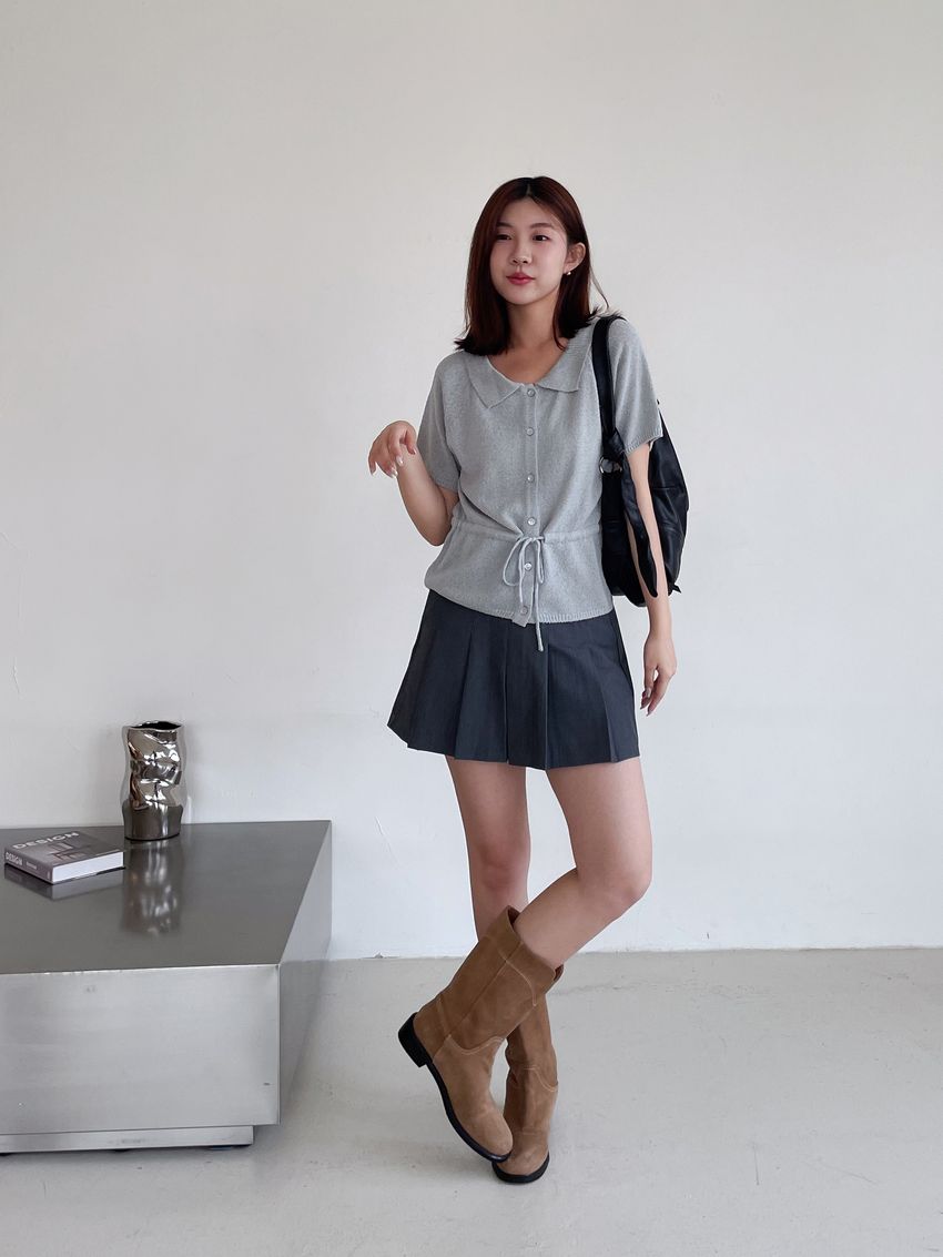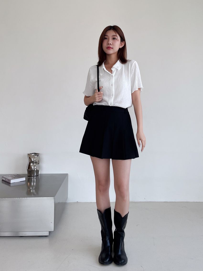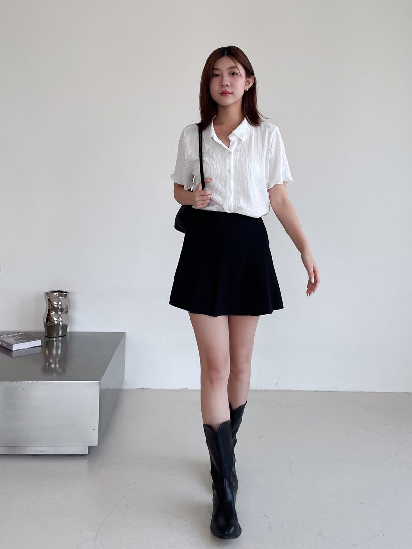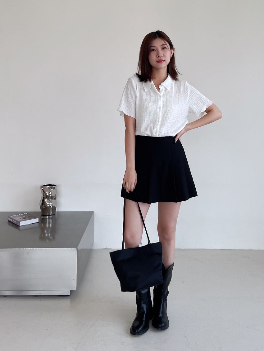 78%poly 18%rayon 4%span側拉鍊 後腰鬆緊兩側有口袋布料有彈性 滿分5分約2分黑色 / 深灰色單一尺寸 建議S號~M號身型適合model / Yen - 159cm / 44kg 腰24 臀34
