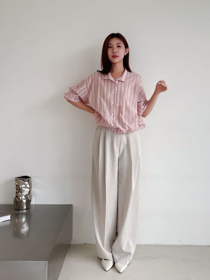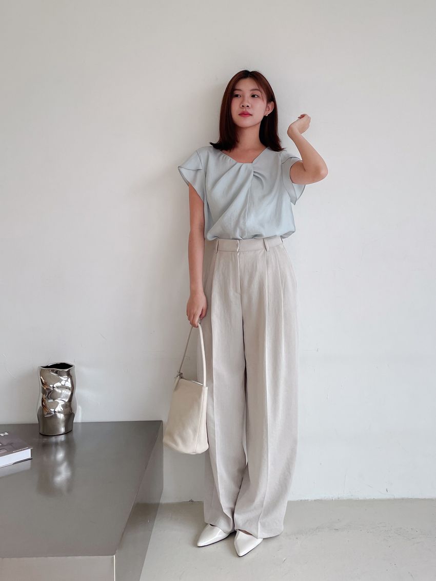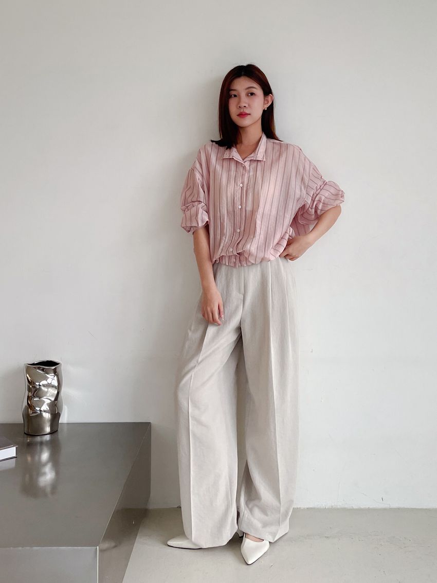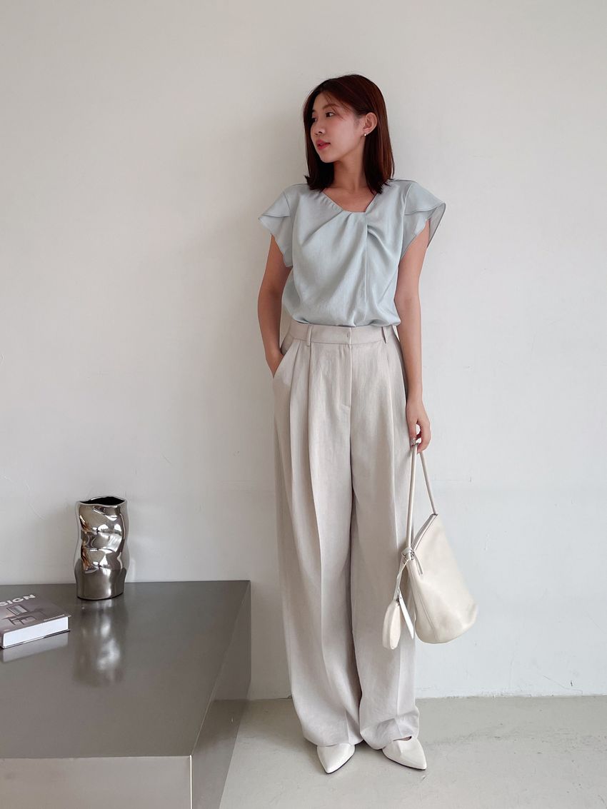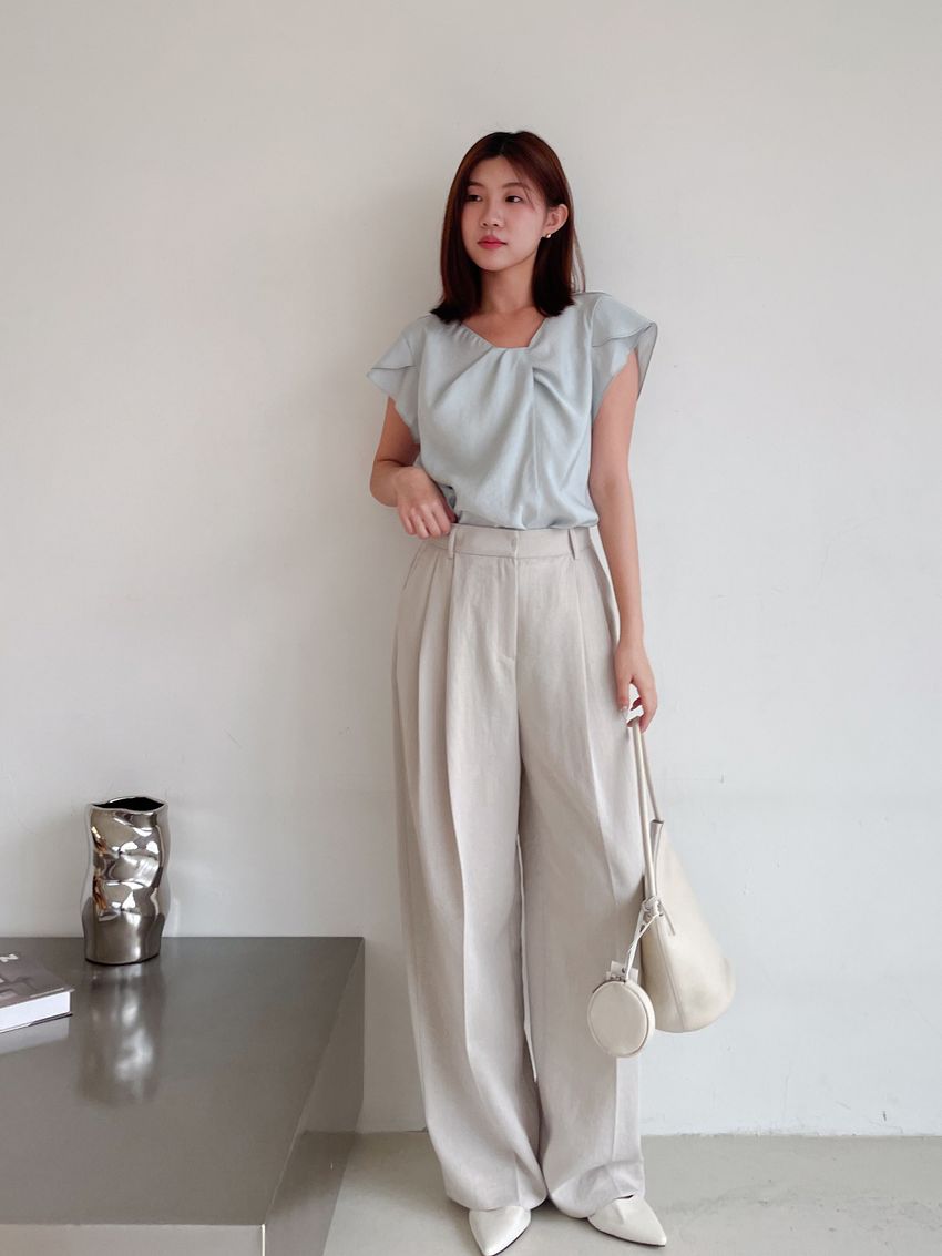 68%rayon 14%nylon 13%poly 5%linen布料有微彈性 滿分5分約1分卡其杏色 / 墨灰色分S M L三個尺寸model / Yen - 159cm / 44kg 腰24 臀34 穿S號
