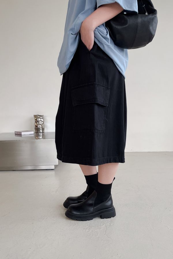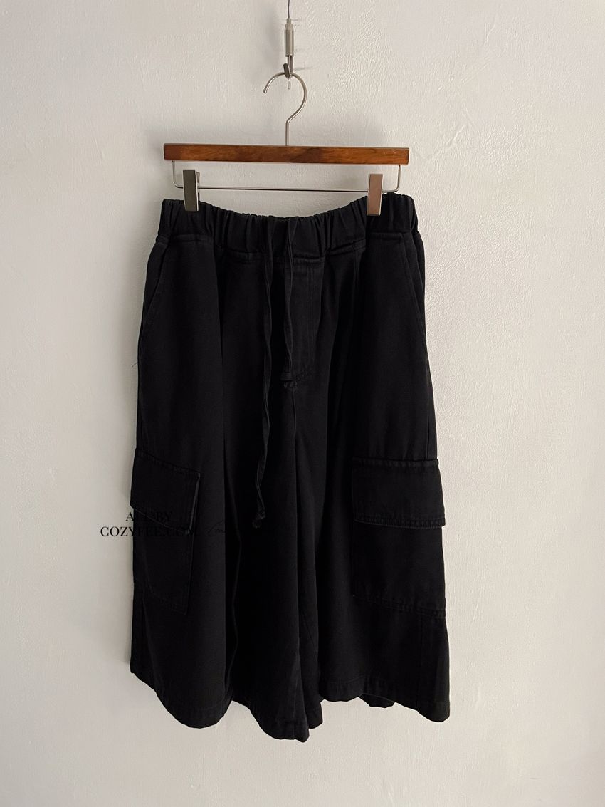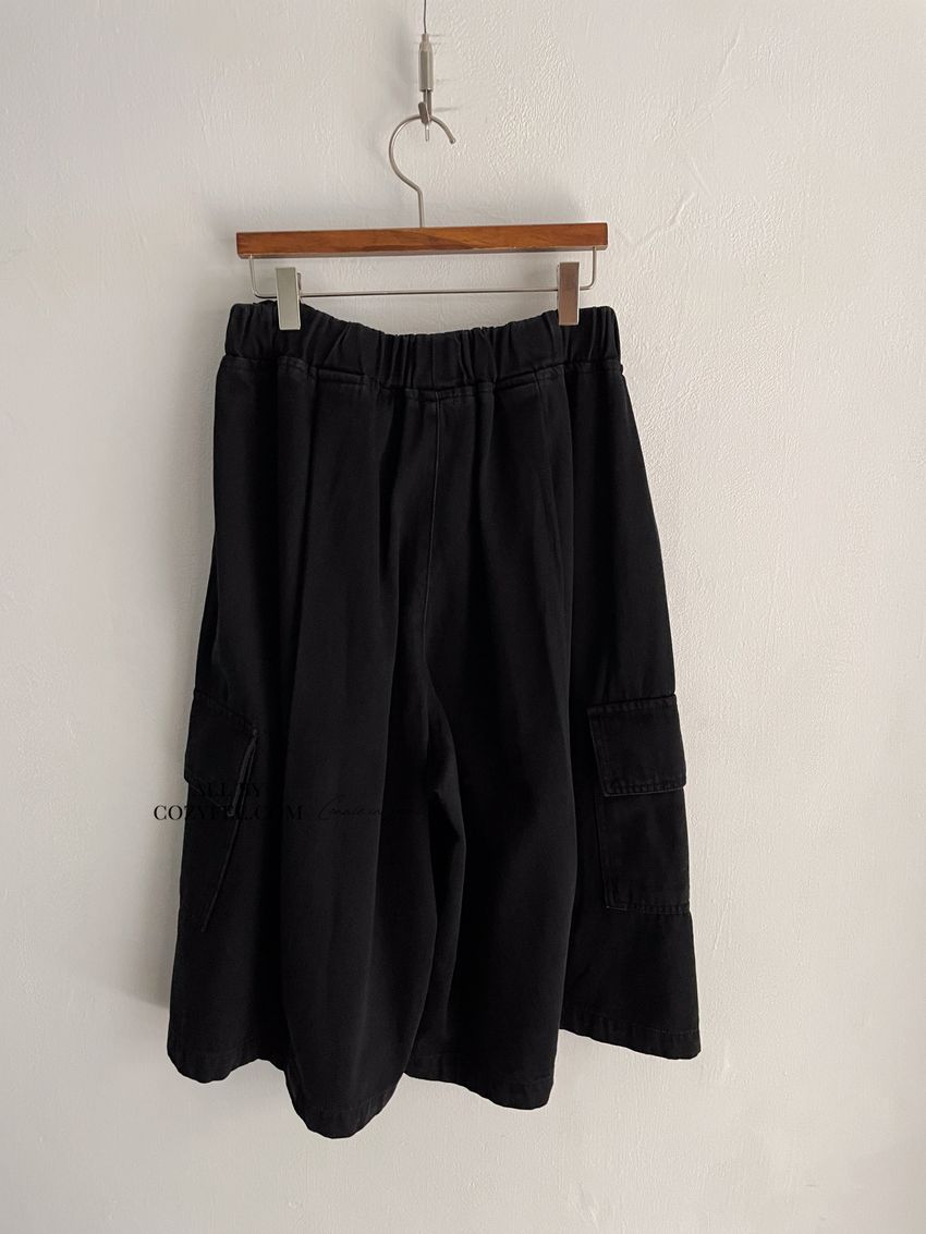> 個性黑墨六分口袋寬褲