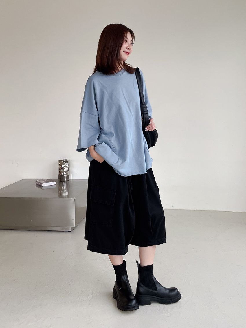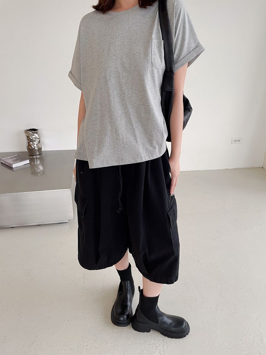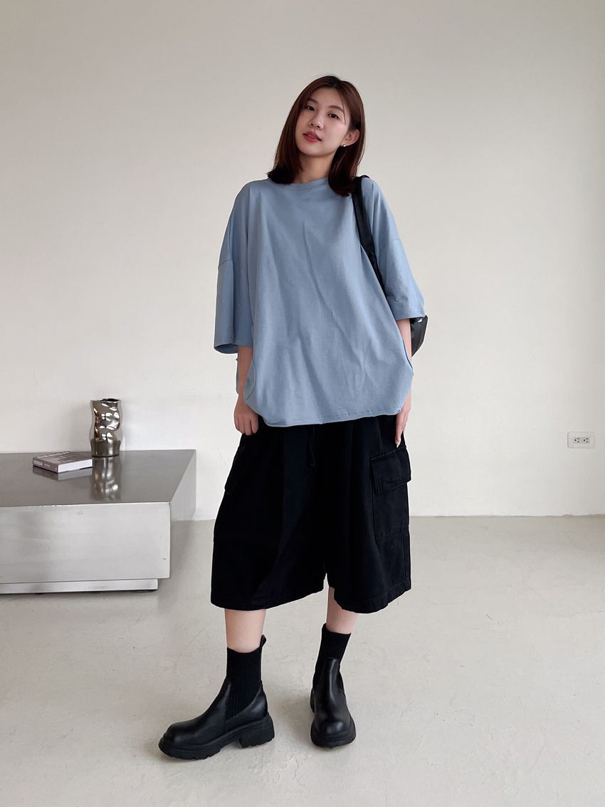 個性黑墨六分口袋寬褲