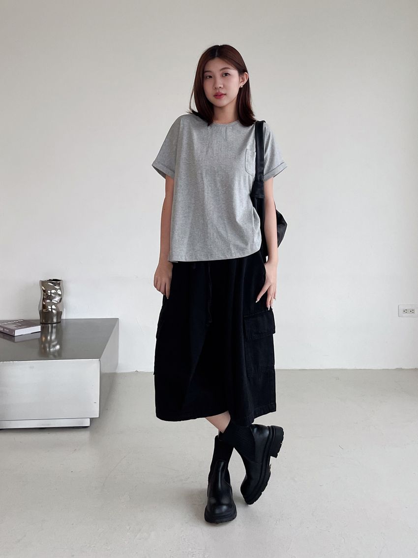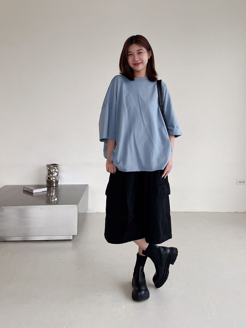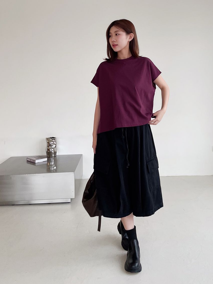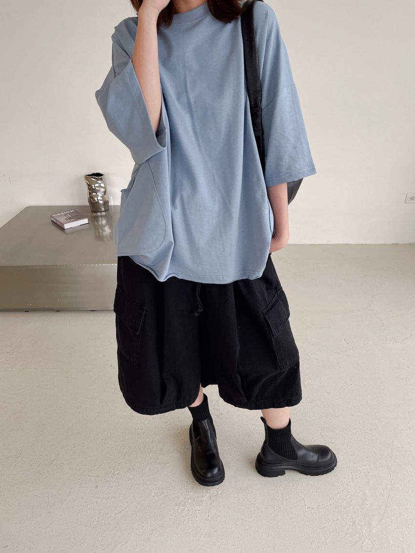 個性黑墨六分口袋寬褲