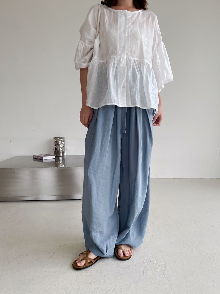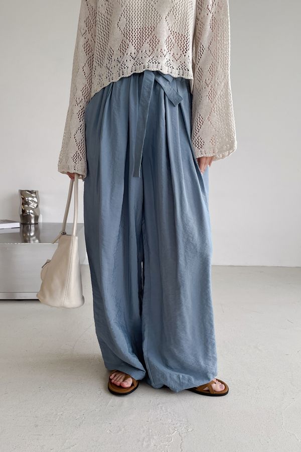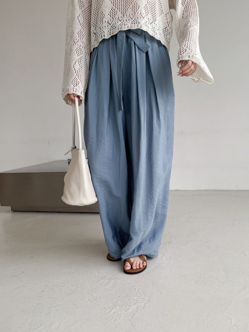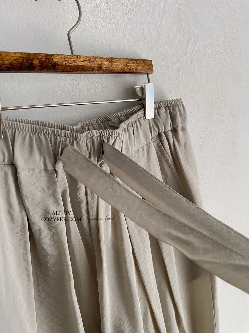 Connie推薦款!光澤軟料綁帶繭型褲(直播款)