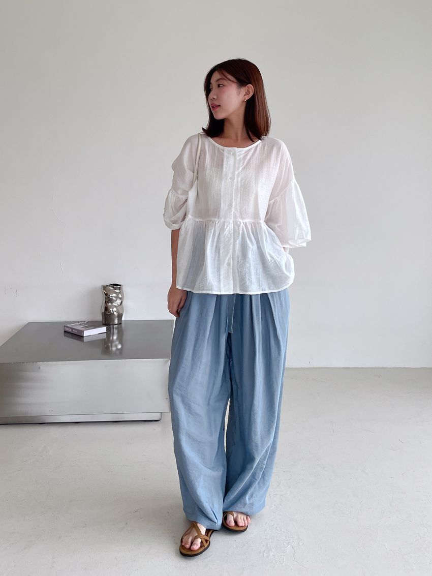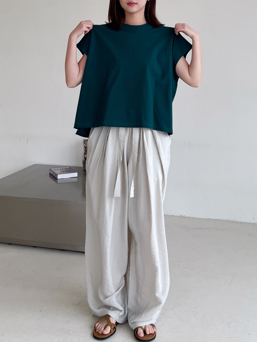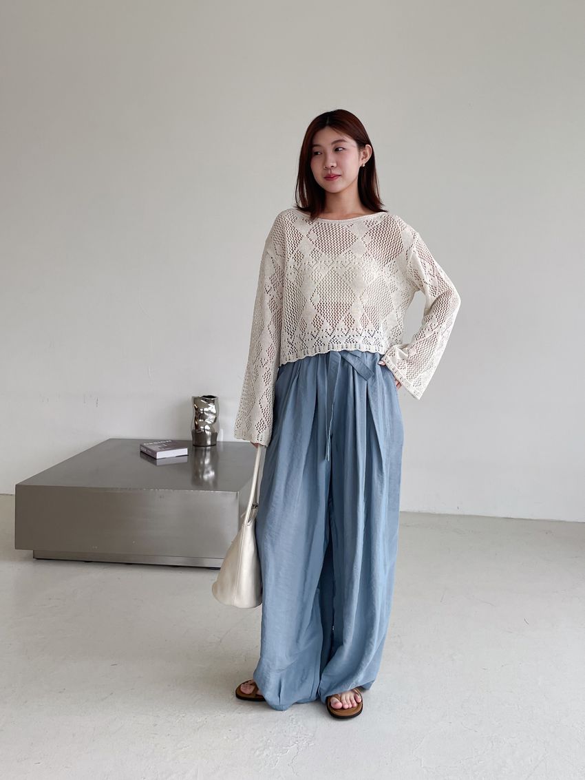 > Connie推薦款!光澤軟料綁帶繭型褲(直播款)
