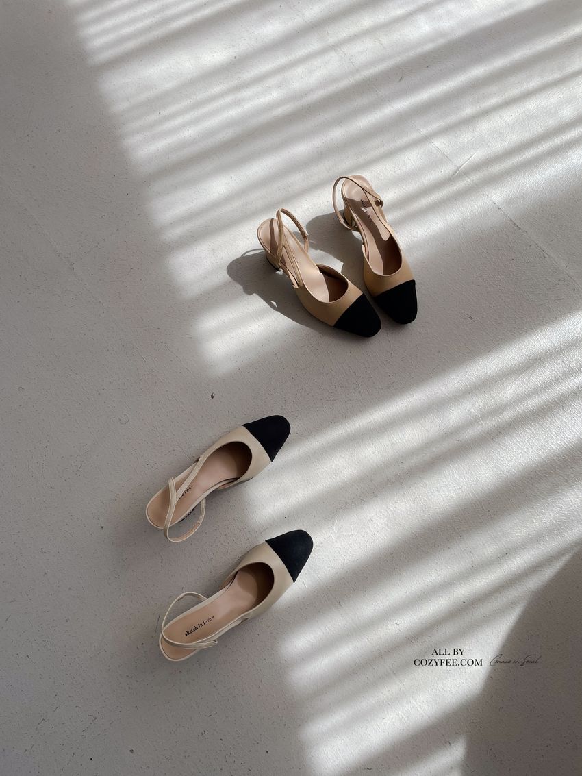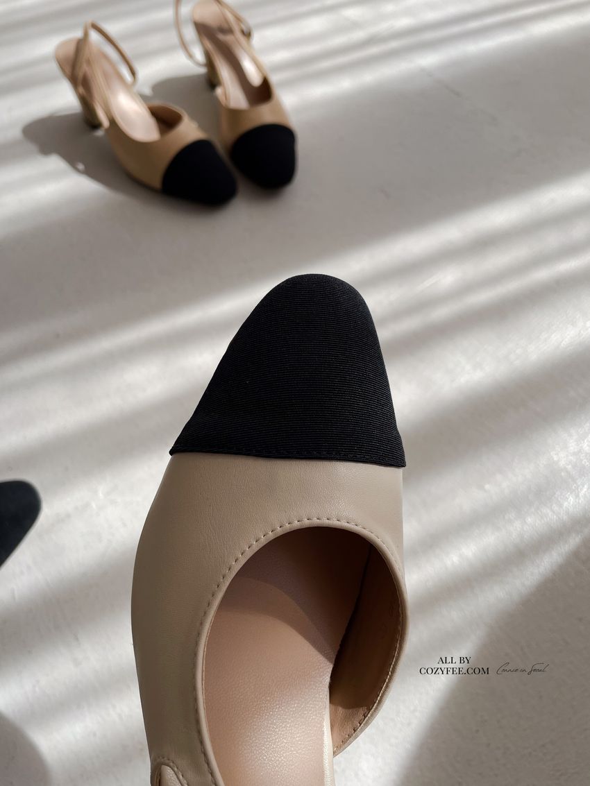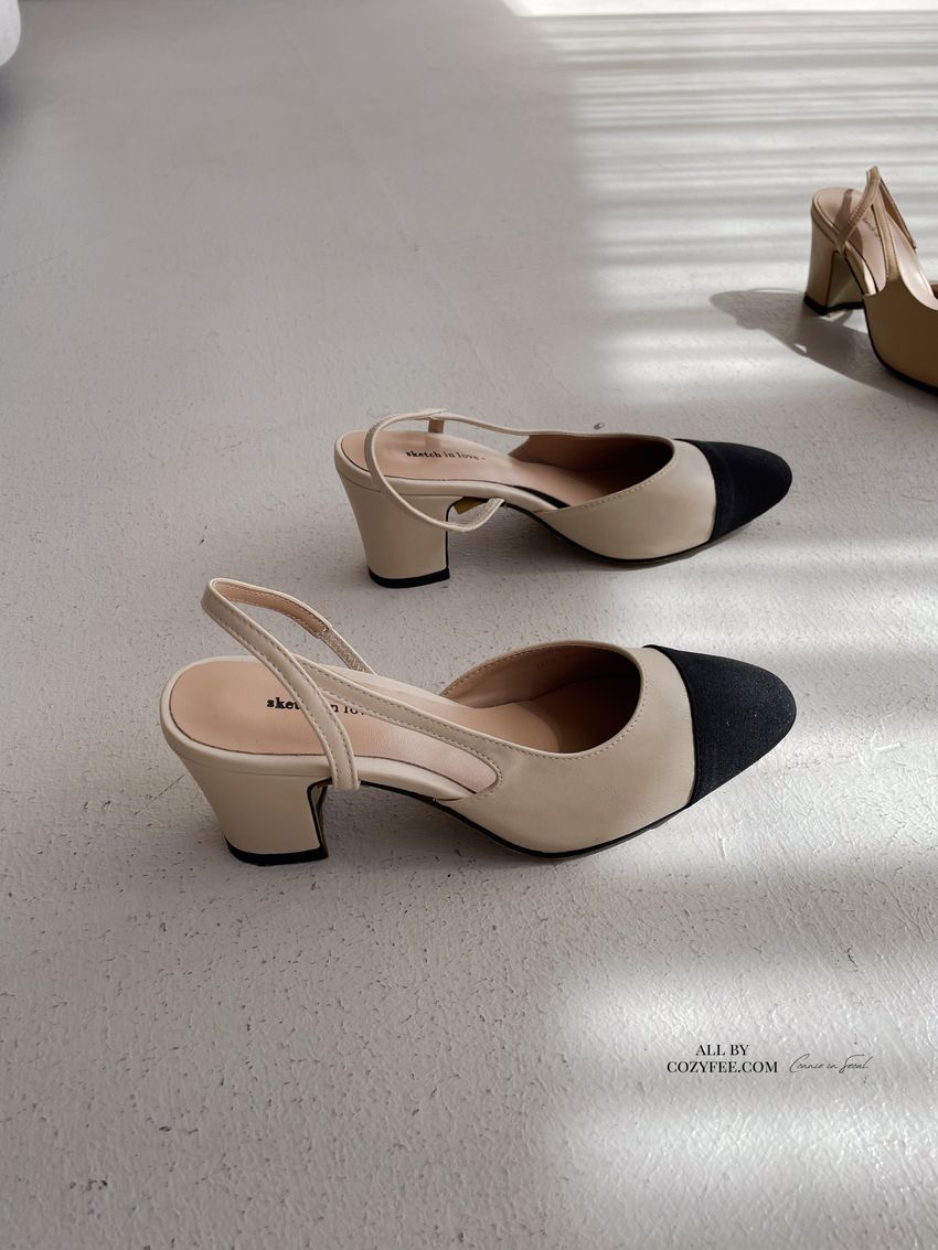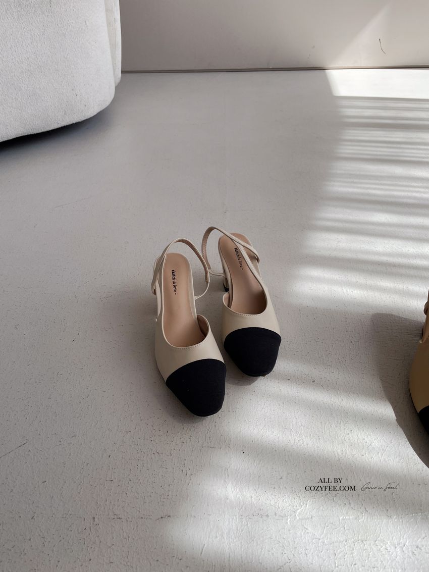 > 拚色後拉帶高跟鞋