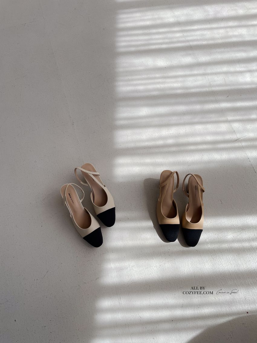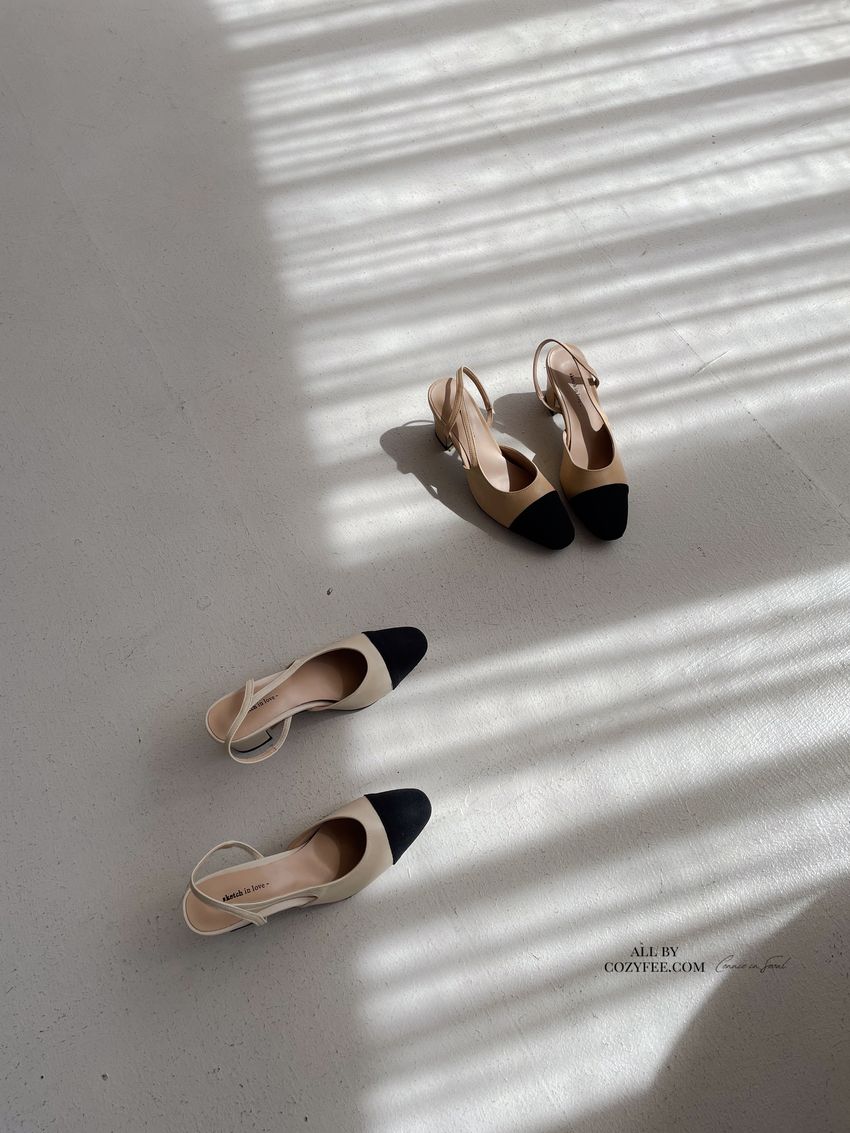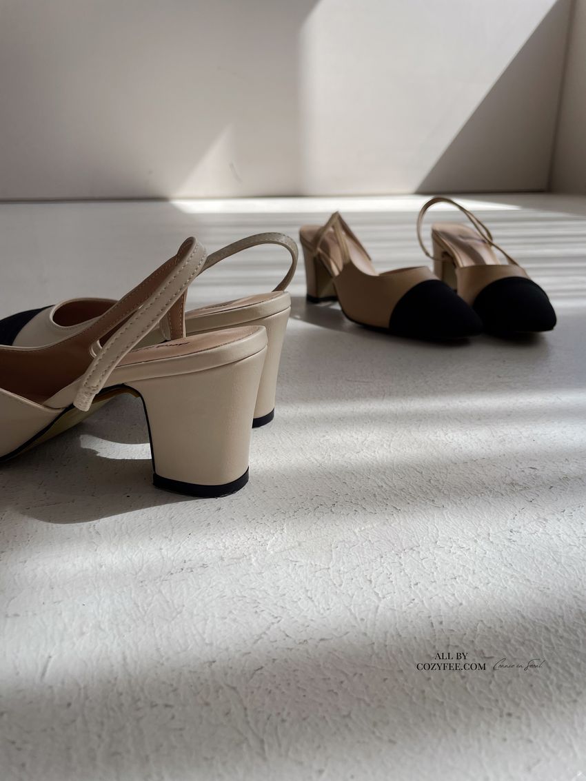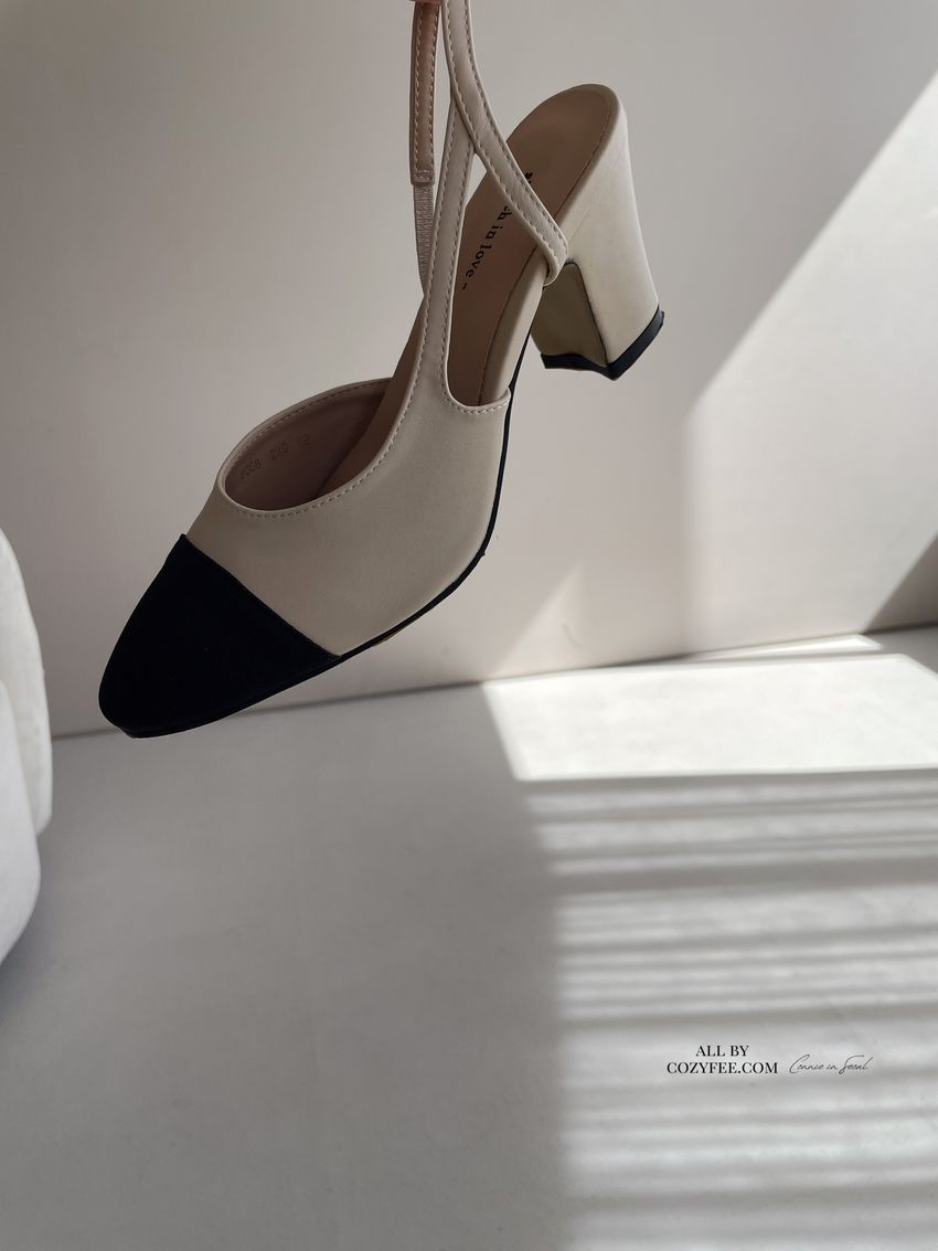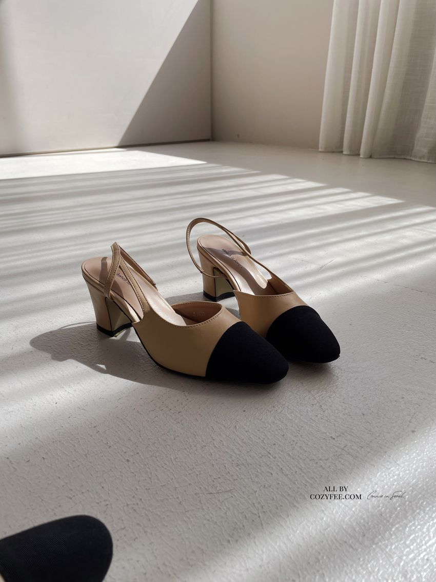 > 拚色後拉帶高跟鞋