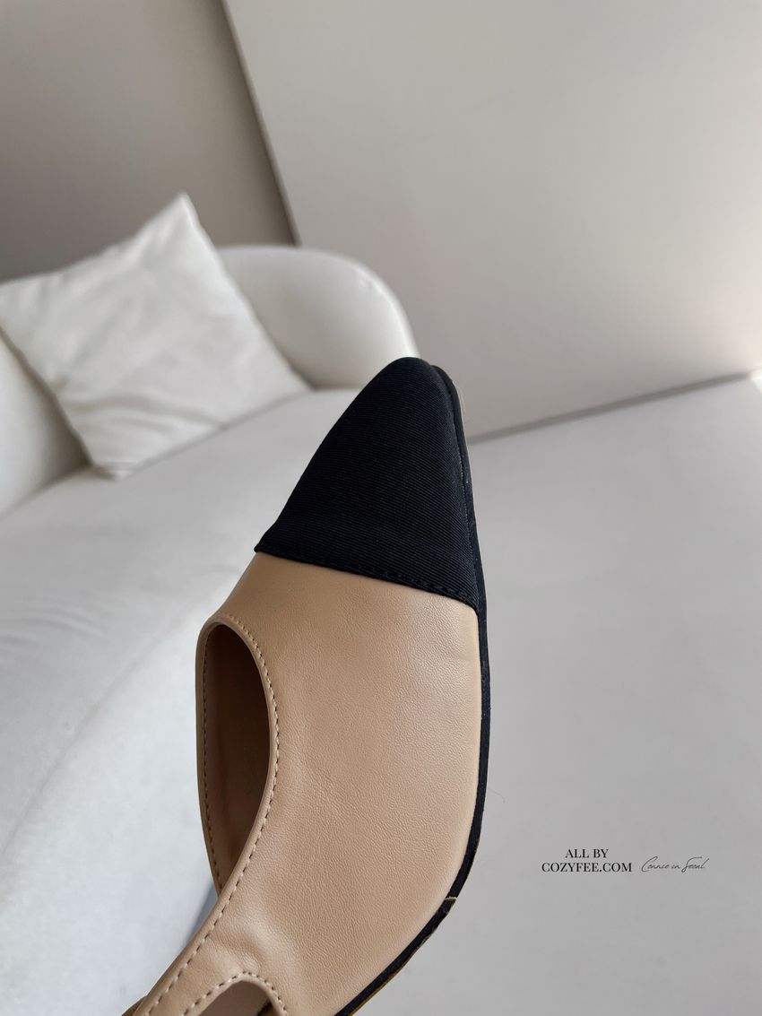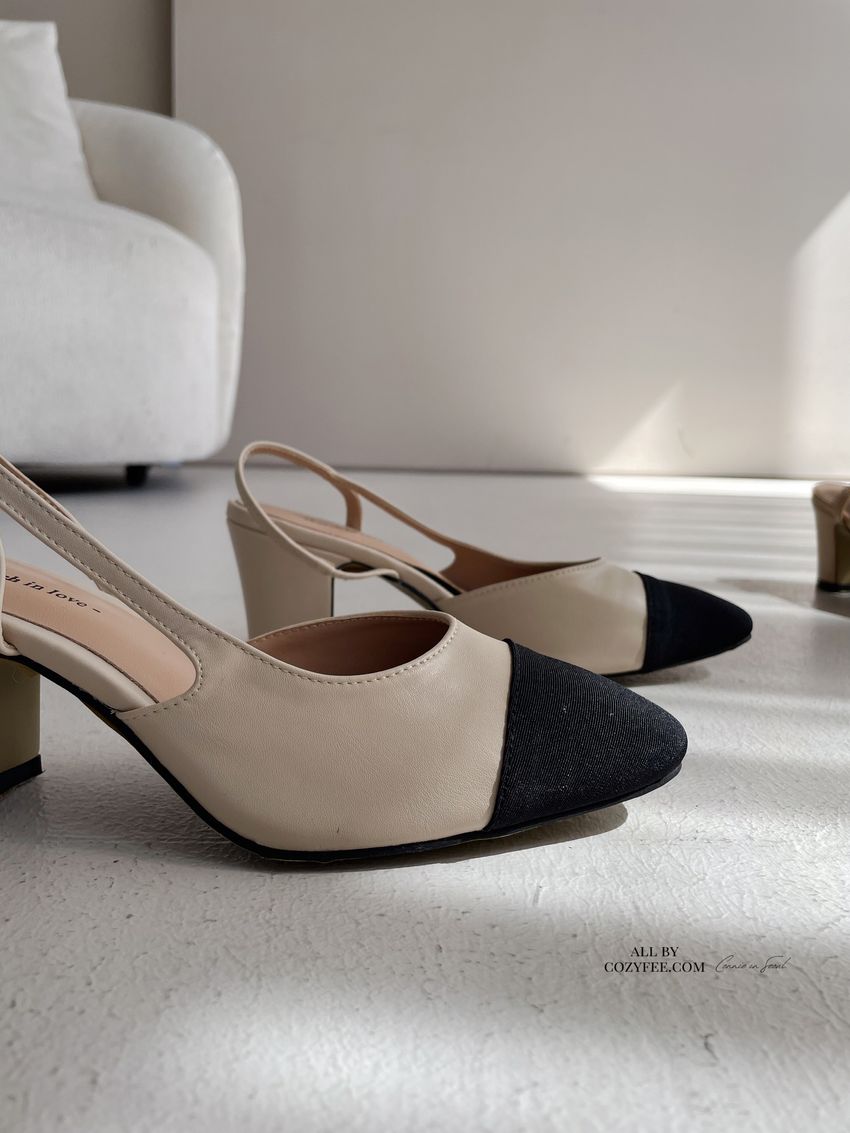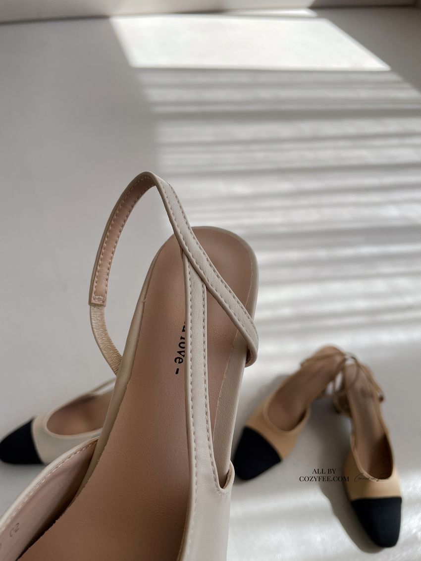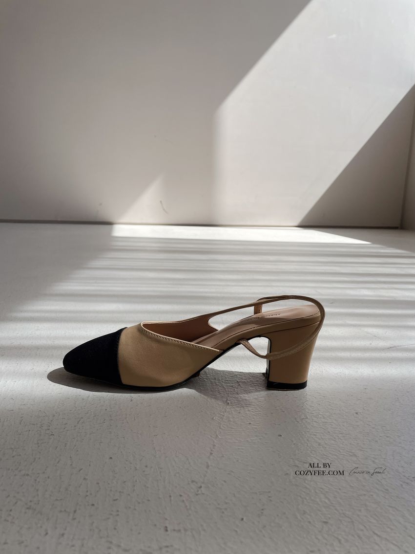 > 拚色後拉帶高跟鞋