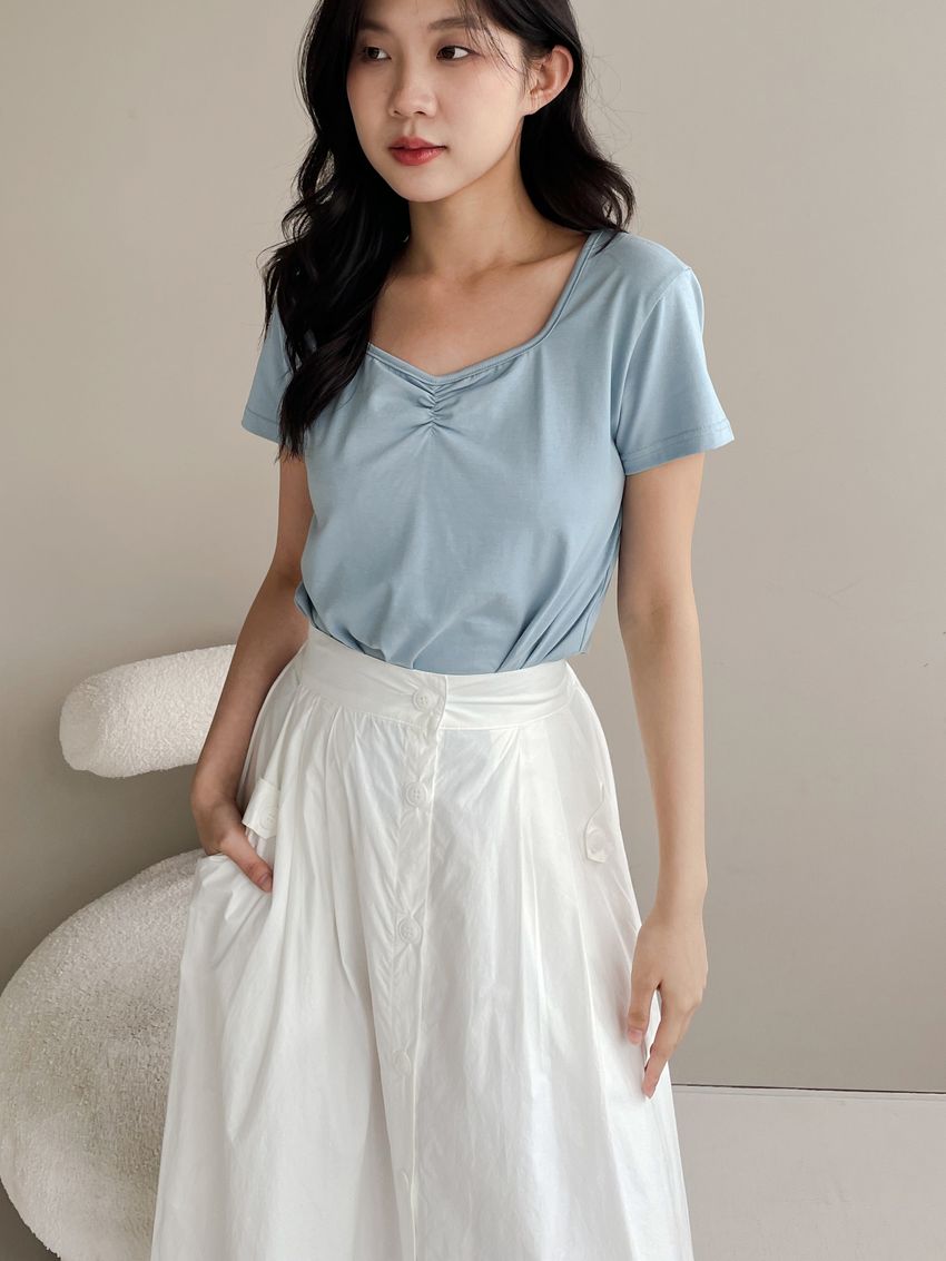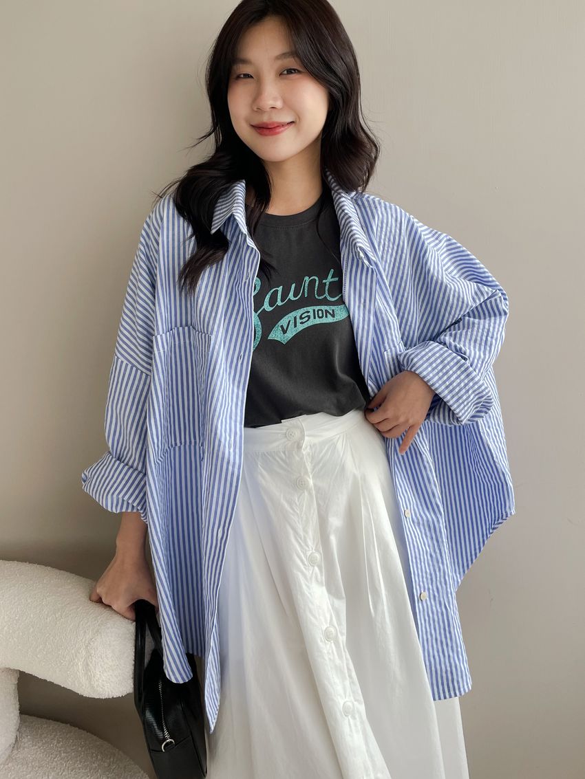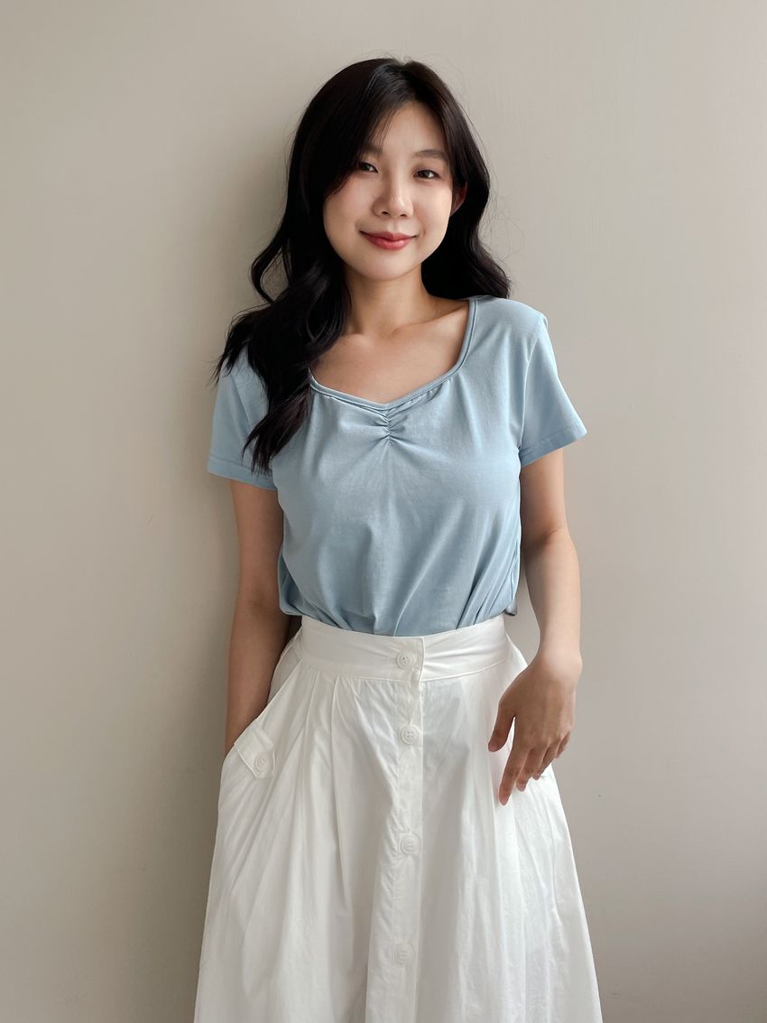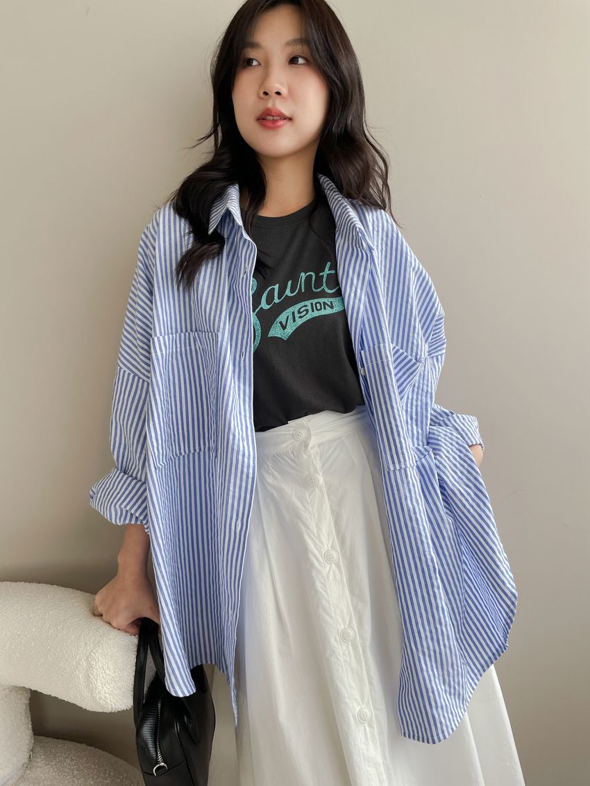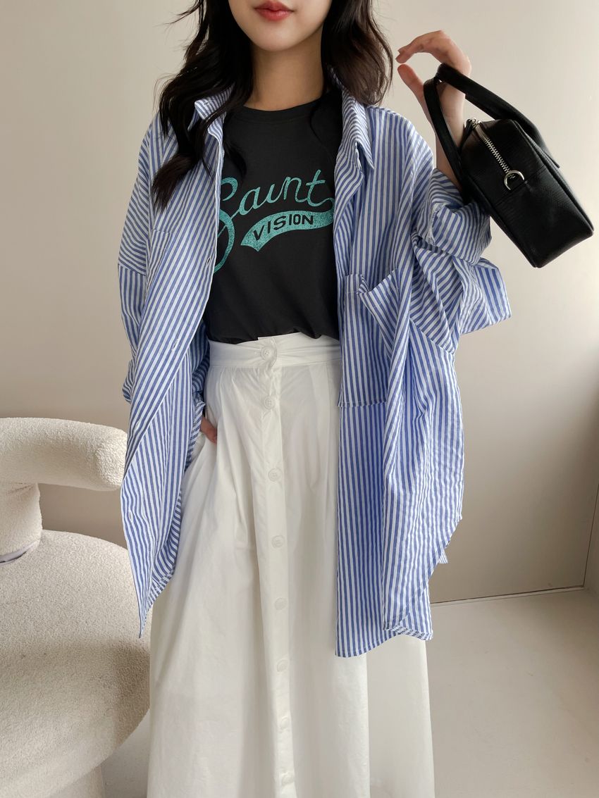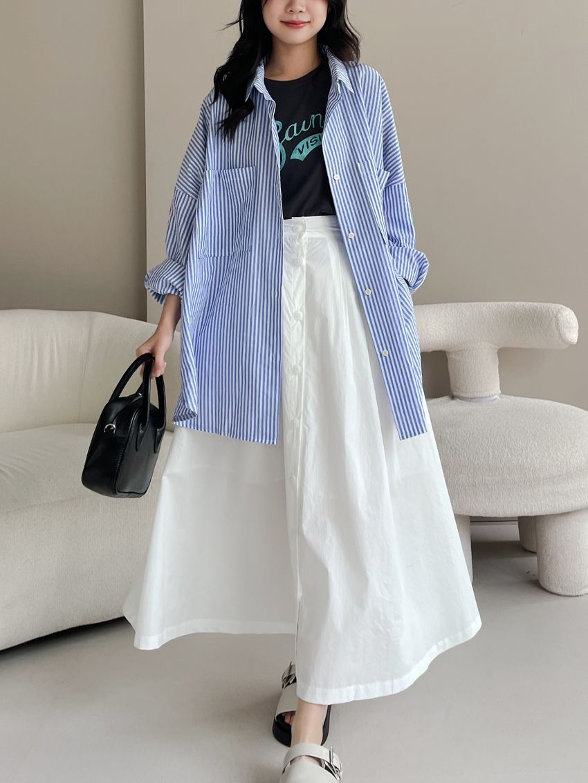 100%cotton裙襬夠圓帶點澎澎感的圓長裙搭配白釦帶出夏天的清爽感薄料棉質 帶有挺度兩側口袋 後腰鬆緊有內裡 前排釦穿脫白色建議搭配淺色或膚色內褲白色 / 水藍色單一尺寸適合S~L號 腰圍29吋以內身形model / Yen - 159cm / 44kg 腰24 臀34