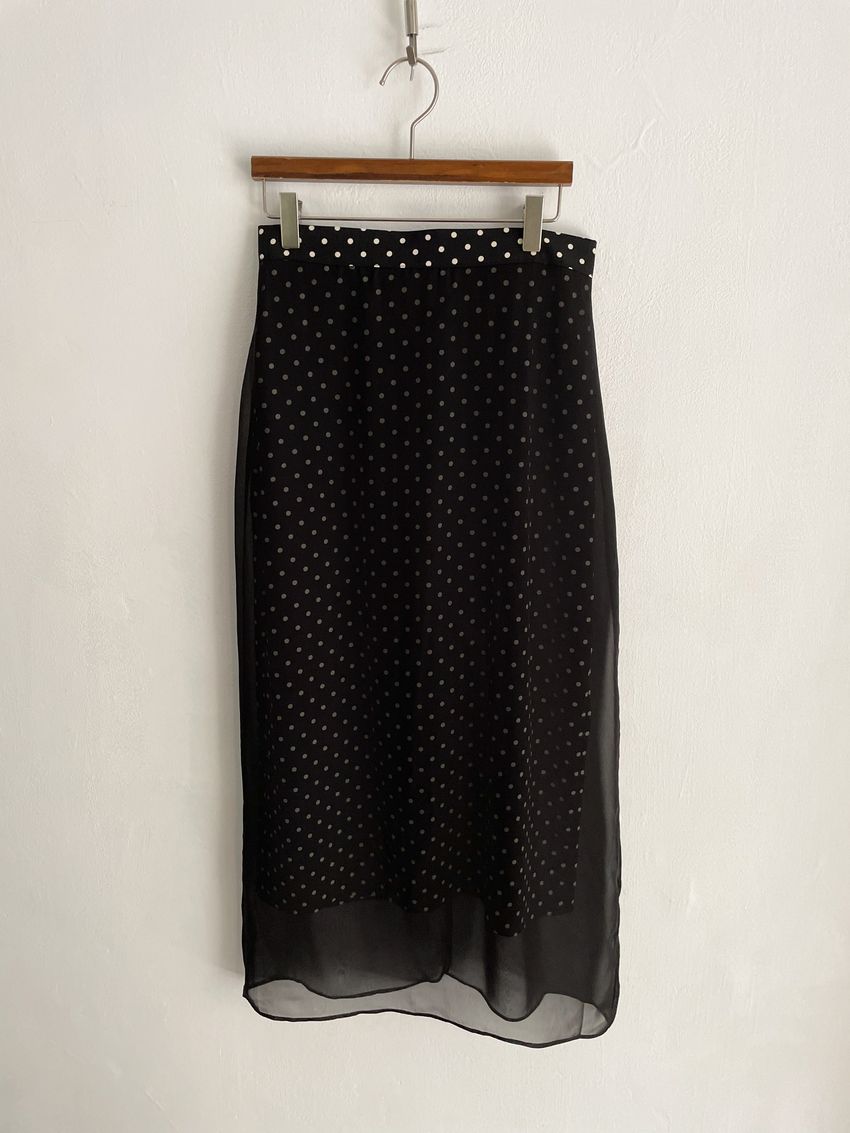 > 雙層雪紡點點直筒窄裙(直播影片)(特)