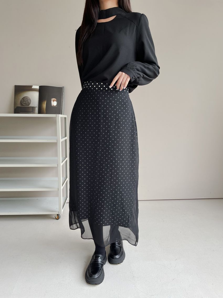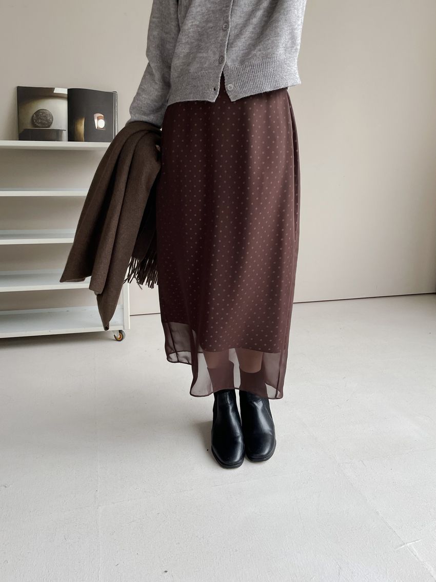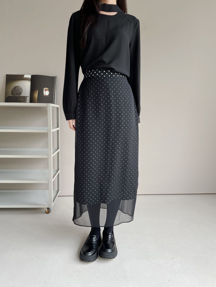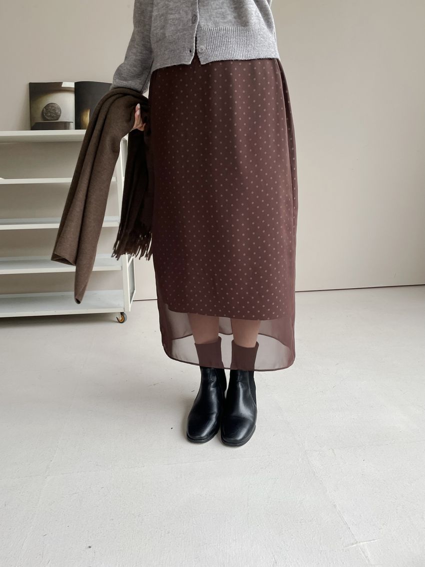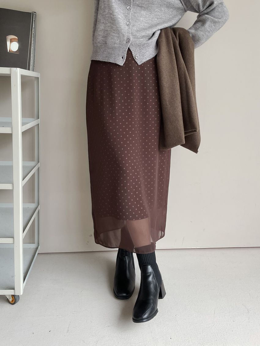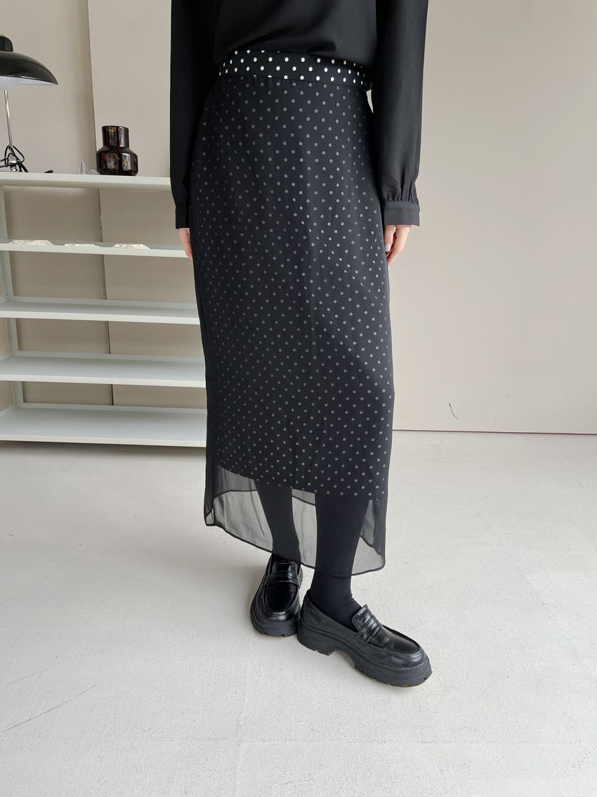 雙層雪紡點點直筒窄裙(直播影片)(特)