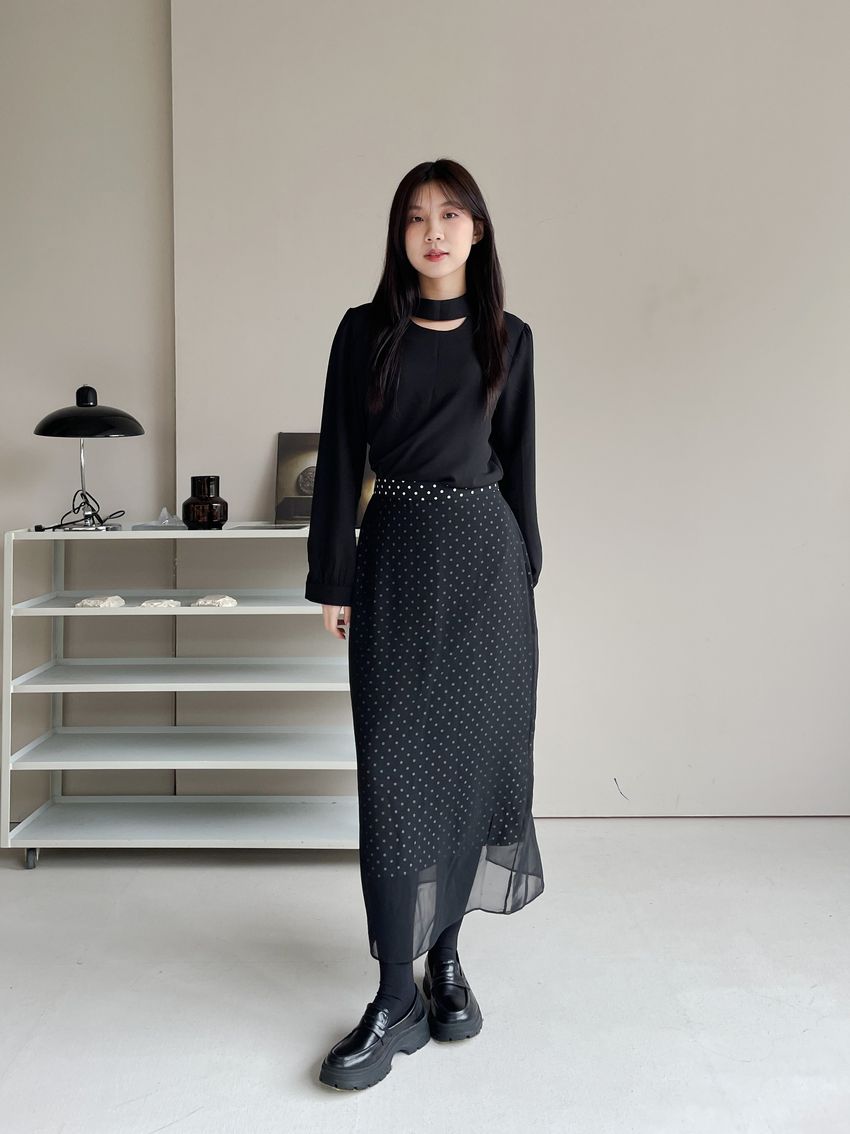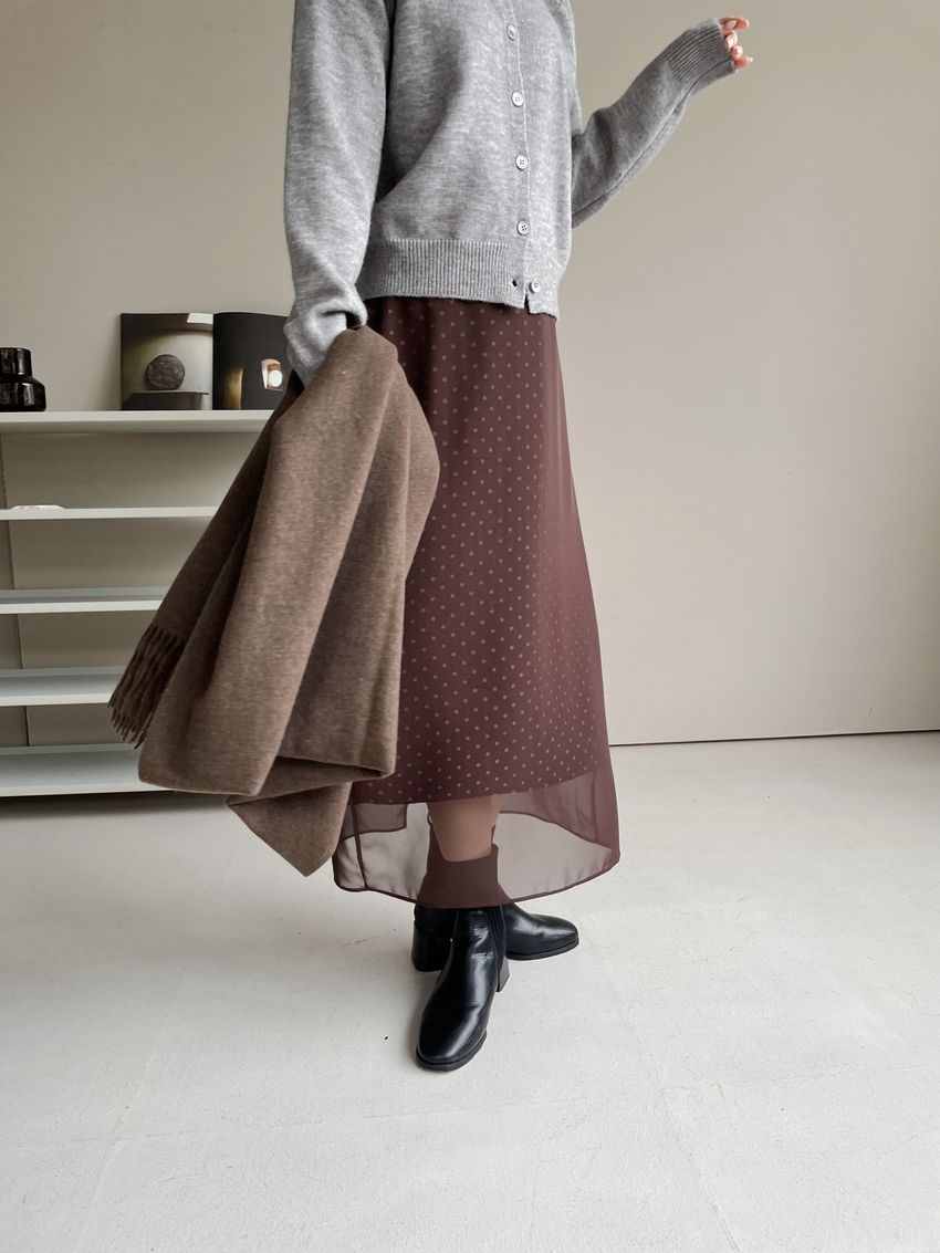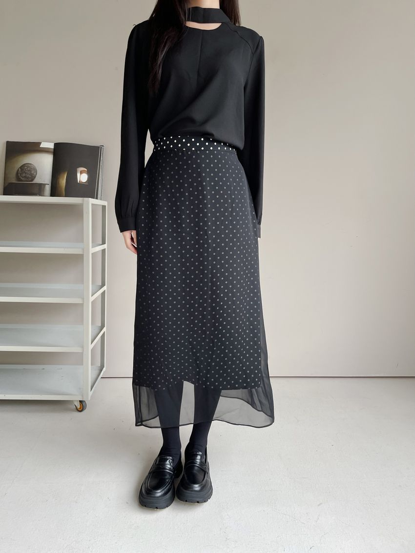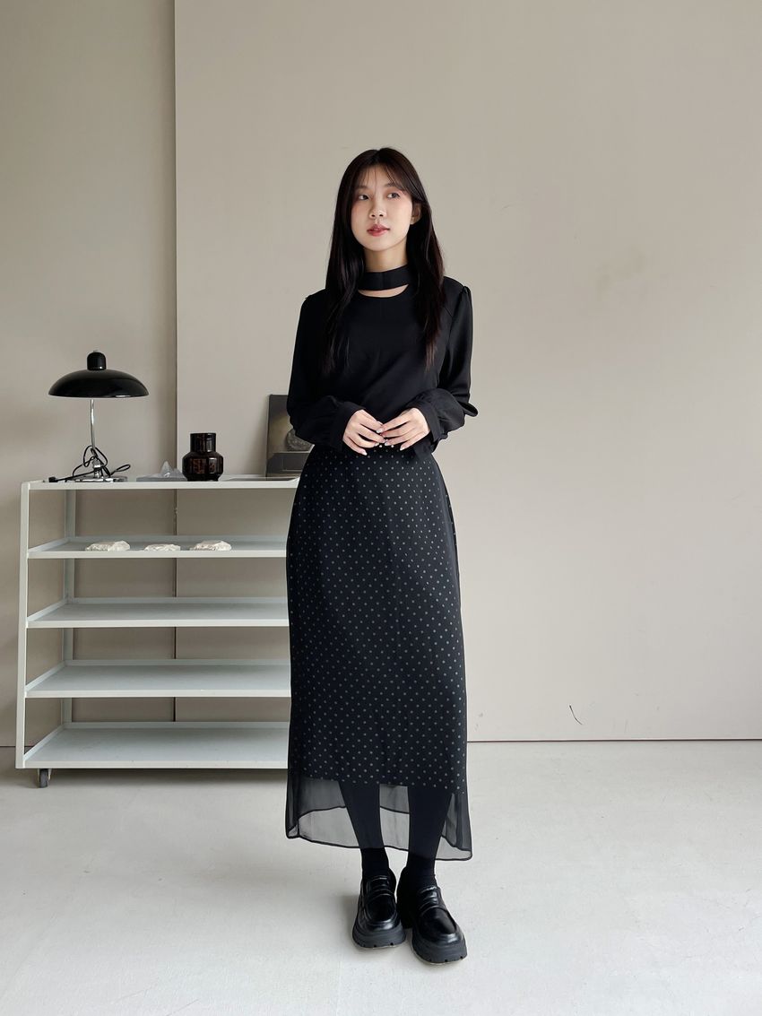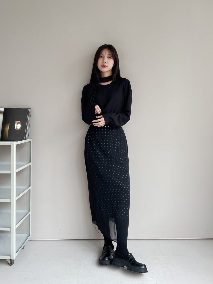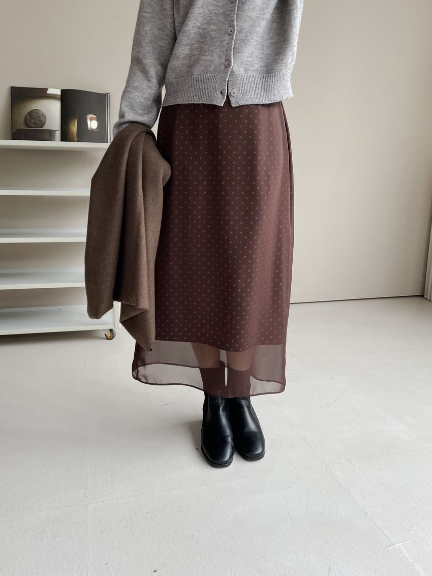 雙層雪紡點點直筒窄裙(直播影片)(特)