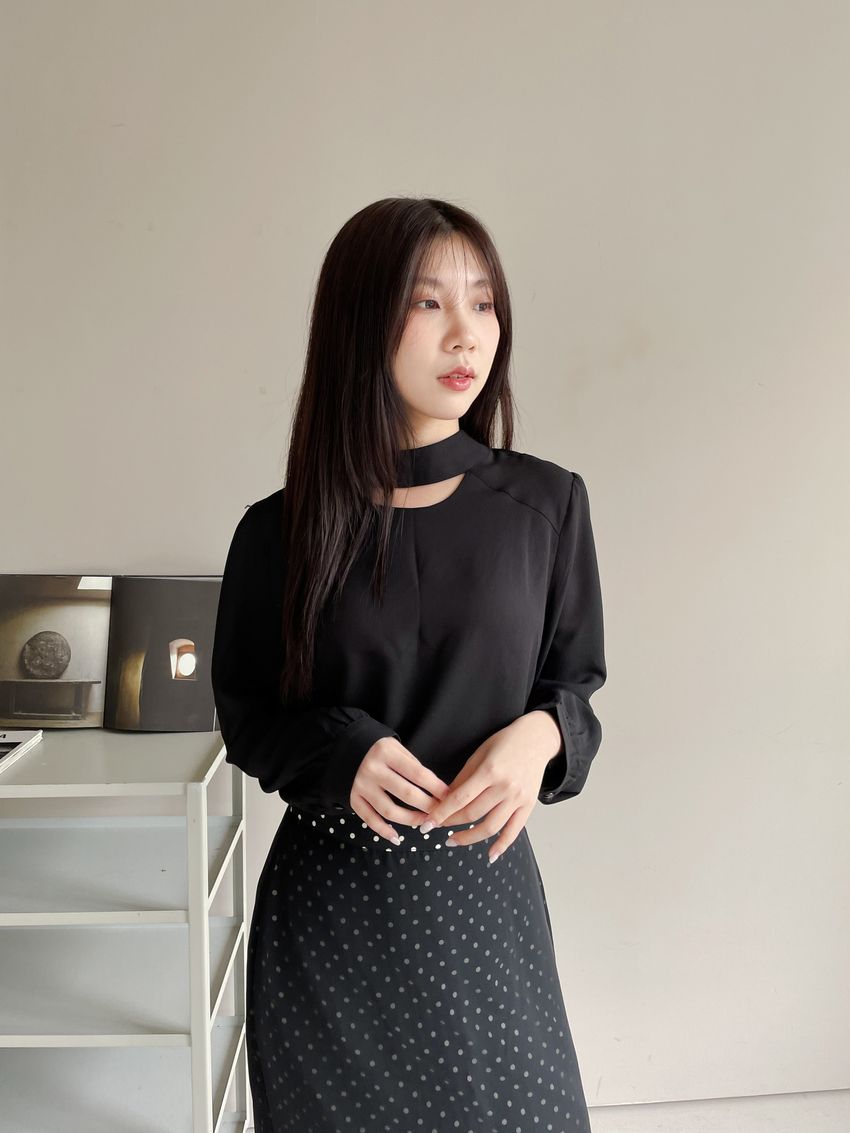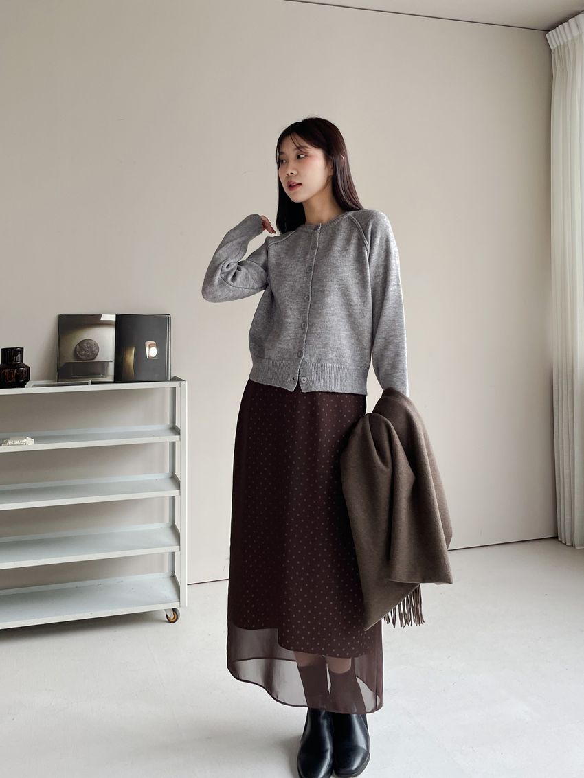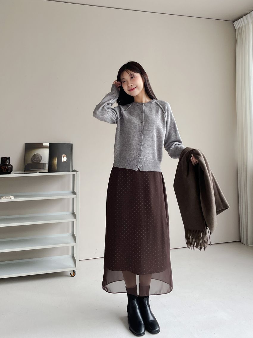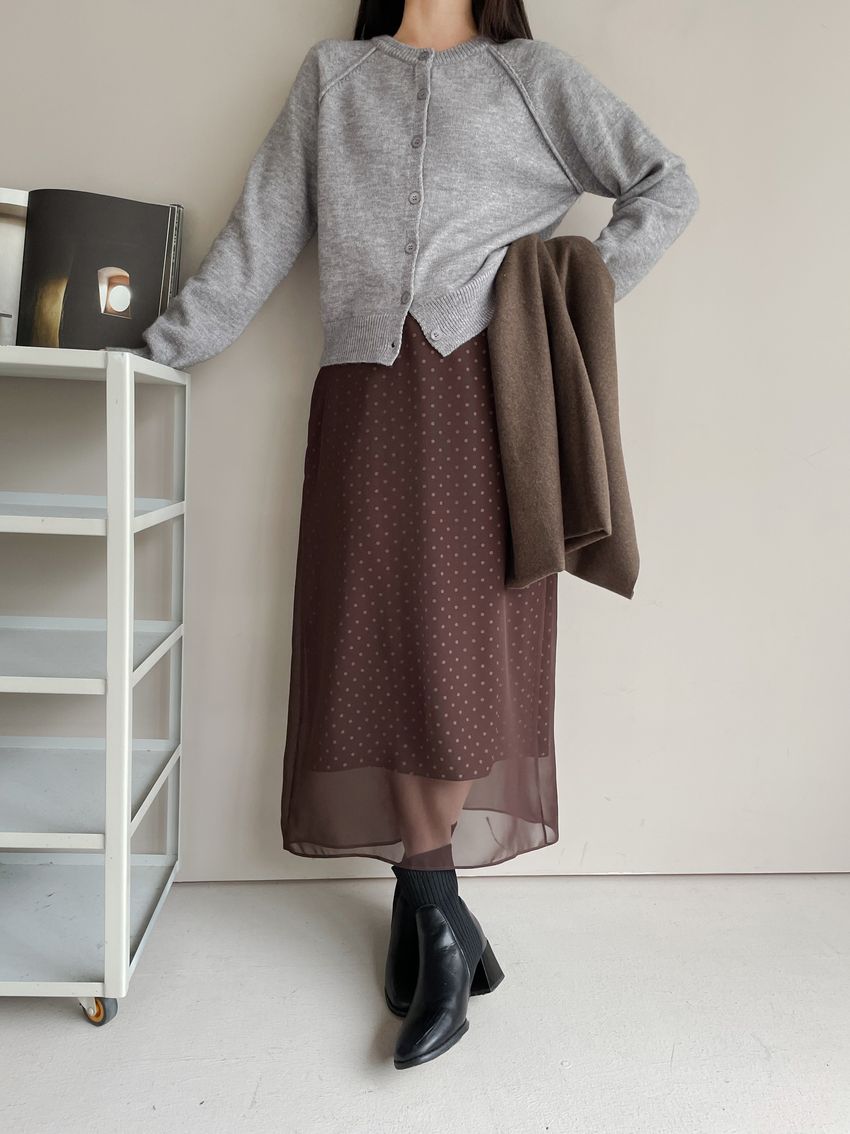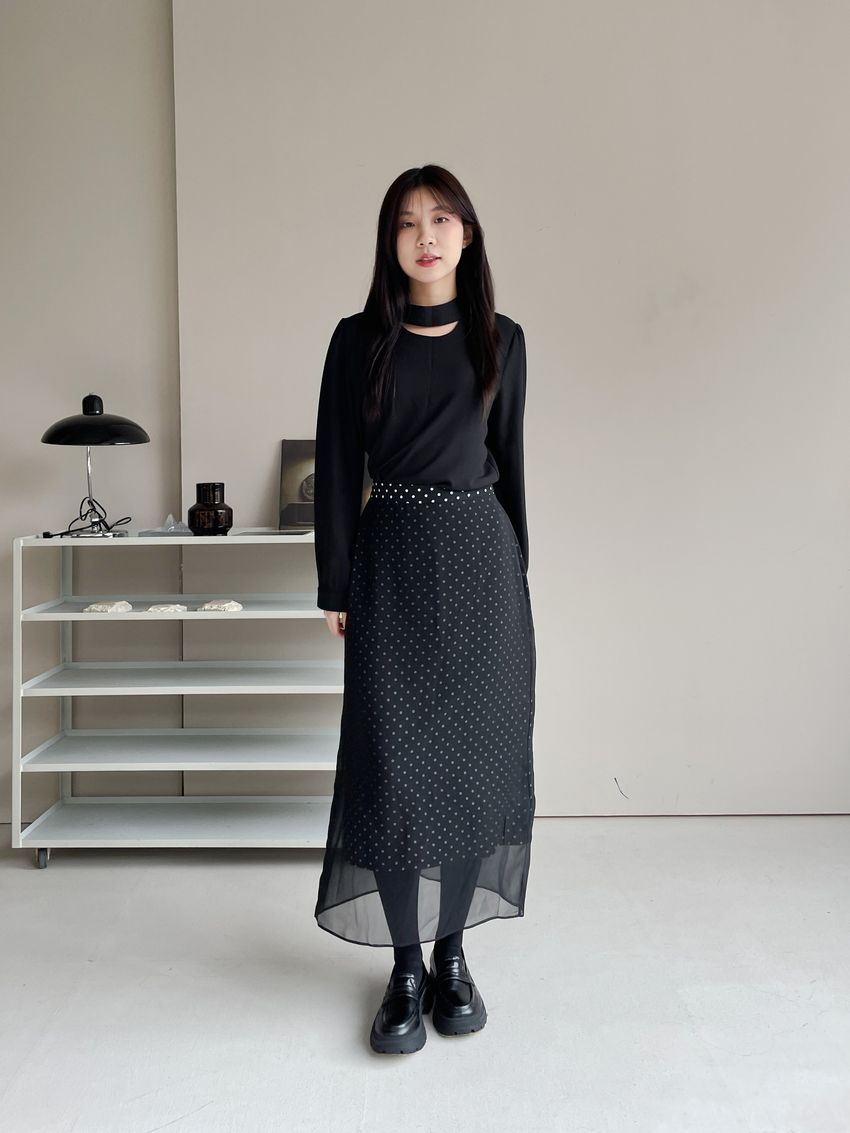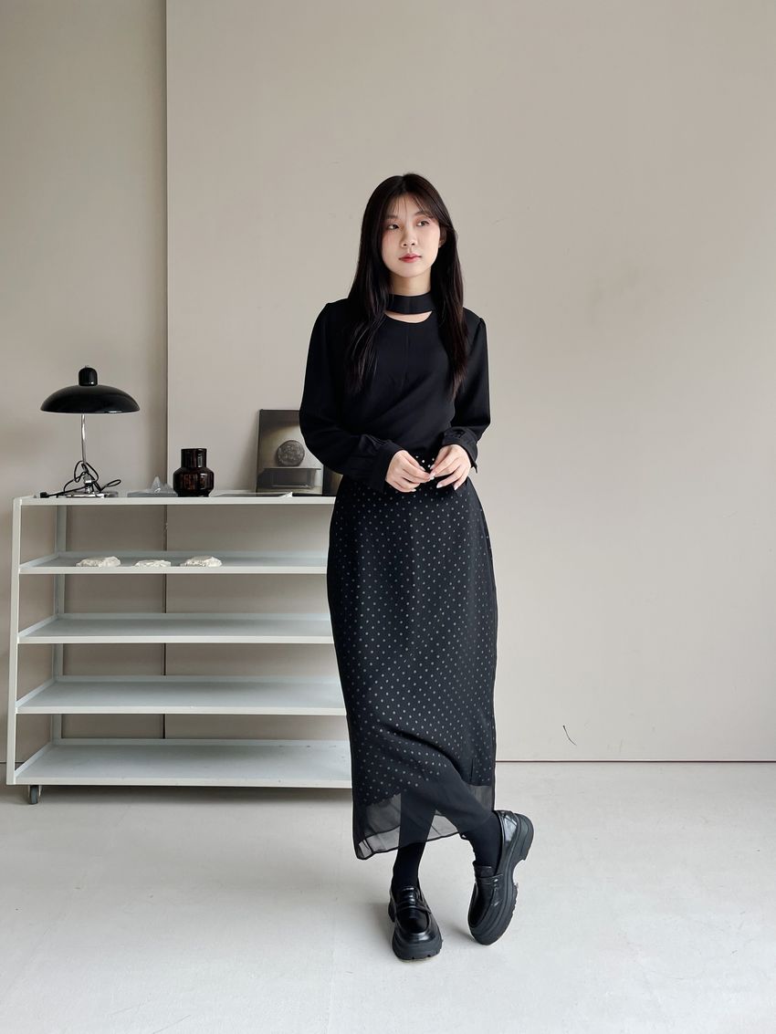 雙層雪紡點點直筒窄裙(直播影片)(特)